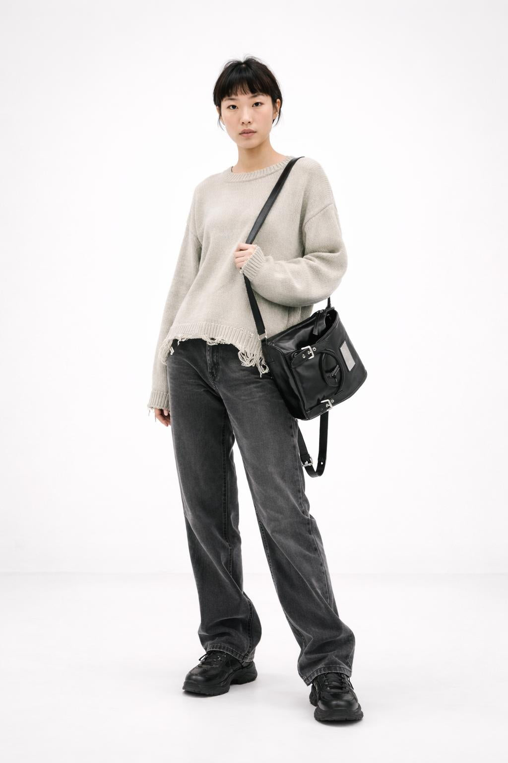 This statement piece from Matin Kim blends functionality with Korean commuter chic. Designed with a structured square silhouette and dual straps, this versatile bag transitions seamlessly between backpack, shoulder bag, and handbag. Features: