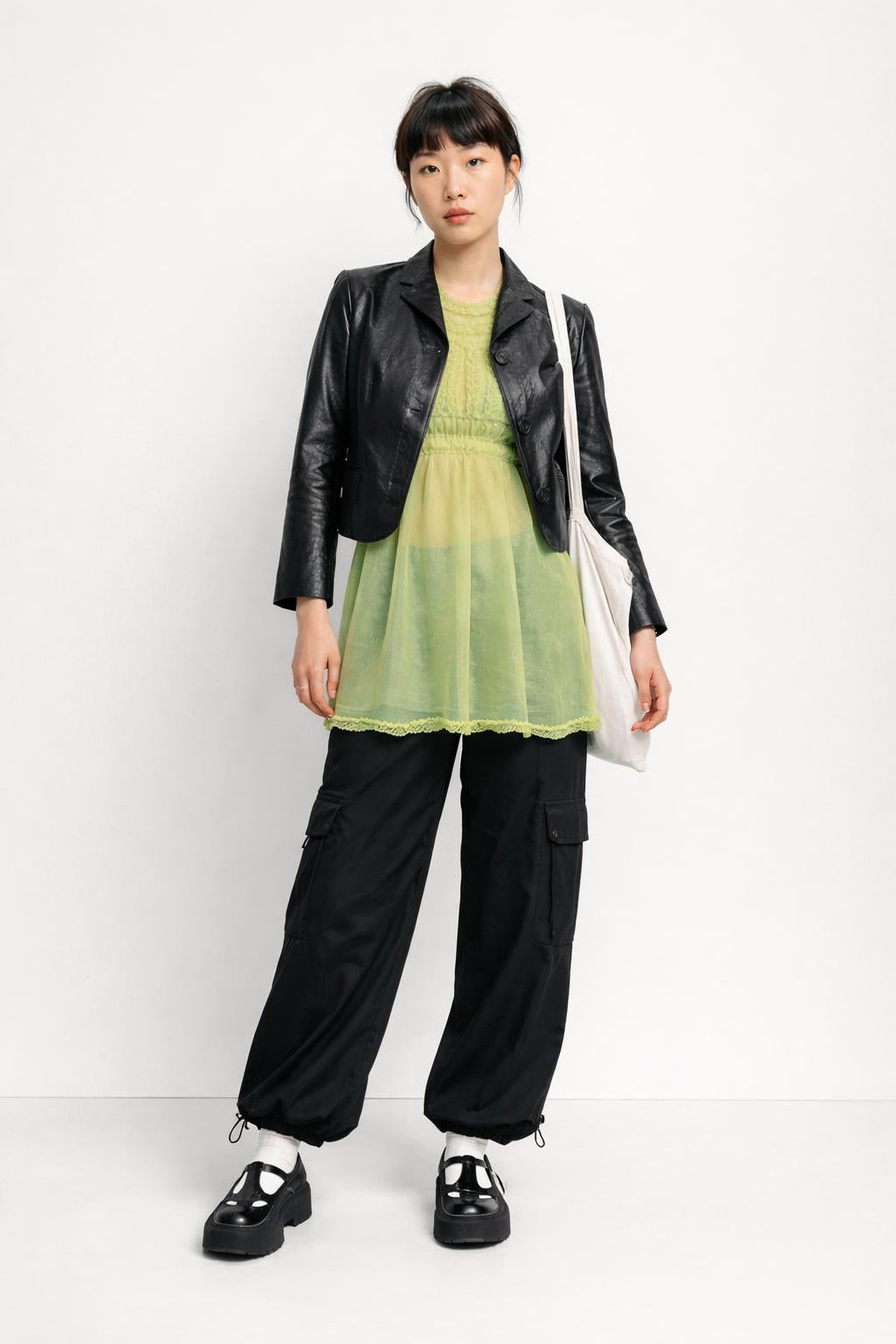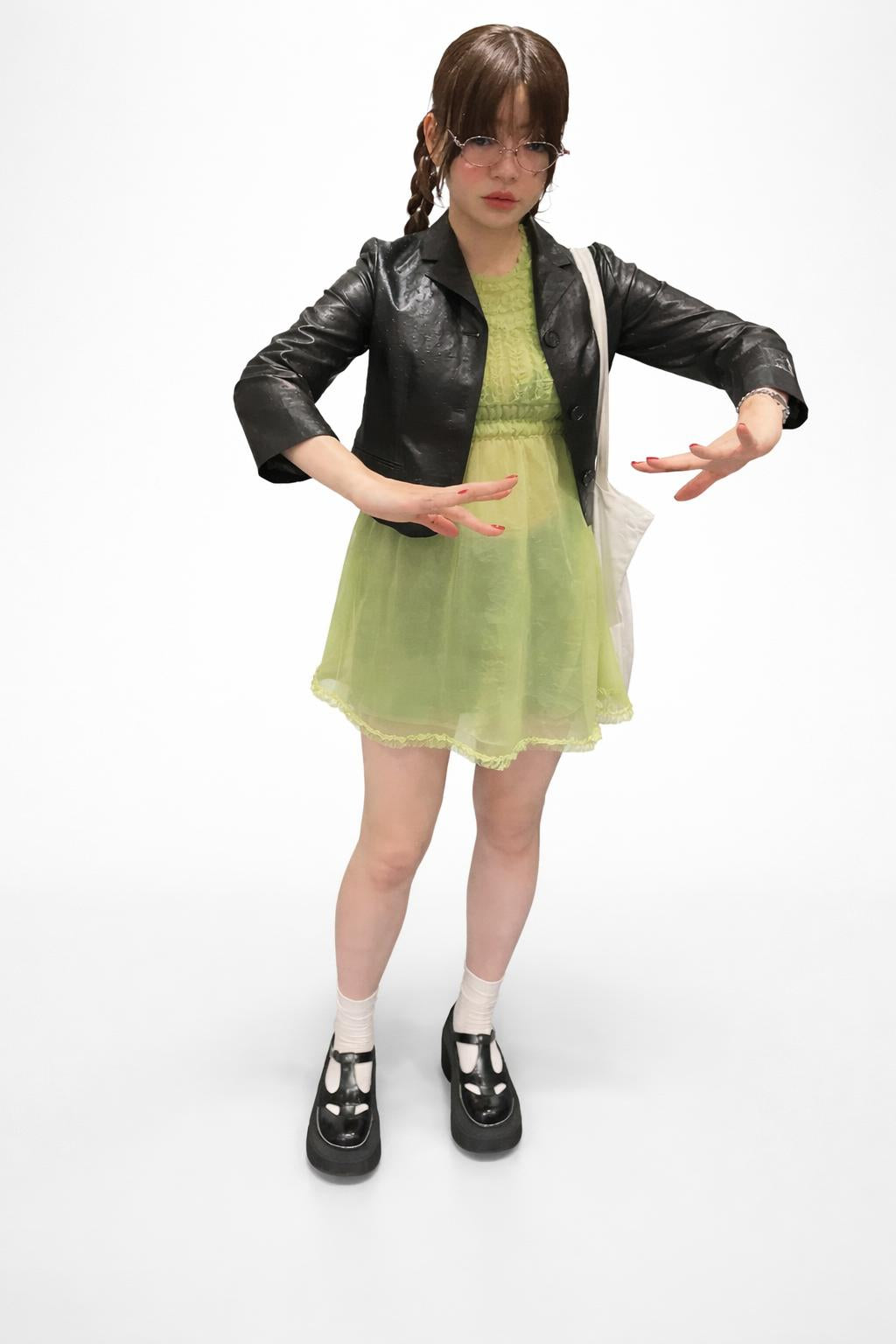 [Freckle] 2025 Summer Lime Lace Waist Dress – Sweet Sleeveless A-Line Tulle Mini Dress