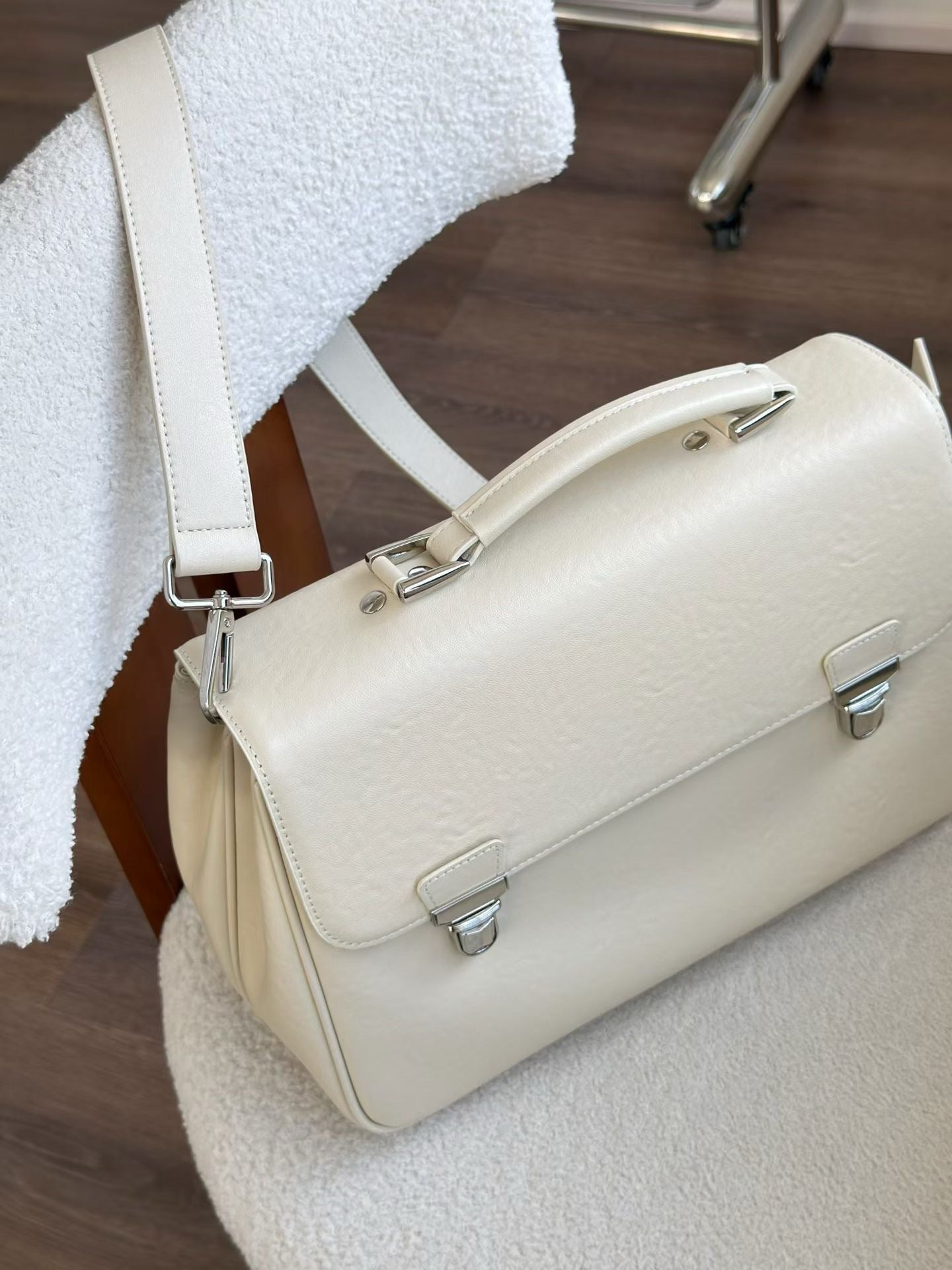 Embrace cool city style with this 2025 Spring Retro Cowhide Briefcase Bag — a large‑capacity companion that blends street‑smart attitude with classic craftsmanship. Made from premium first‑layer cowhide leather with bold contrast stitching, this structured horizontal silhouette features a secure flap‑over closure and a roomy interior complete with a built‑in phone pocket. Whether worn handheld, over the shoulder, or slung crossbody on its single strap, it’s sized to carry your everyday essentials with ease — from your notebook and tablet to wallet, keys, and makeup. Available in sharp Black and clean White, its minimalist yet edgy design suits everything from university days to urban outfits and weekend commutes. A standout choice for those who appreciate understated trend energy and practical vintage charm.
