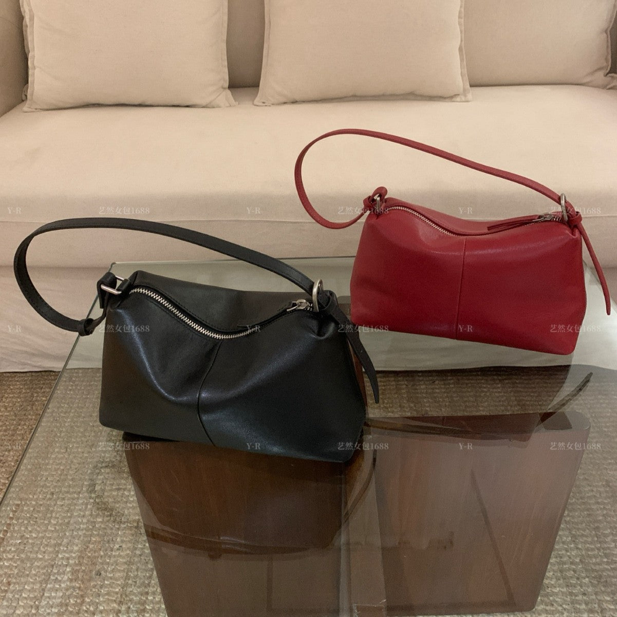 Genuine Leather Dumpling Shoulder Bag – Small Cowhide Tote with Dual Straps