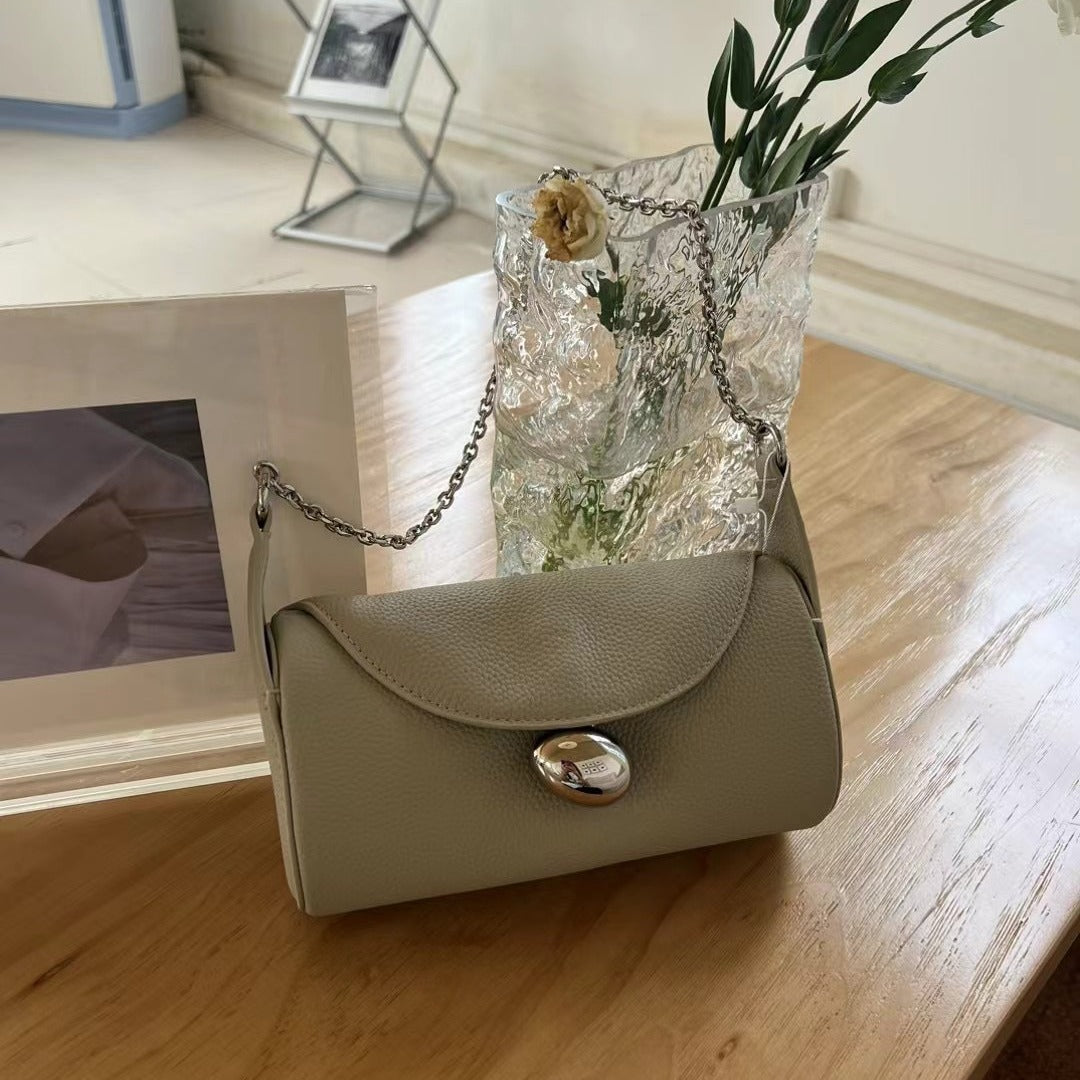 Introducing the Summer Top-Grain Cowhide Boston Bag — a refined mix of casual comfort and vintage European charm. Crafted from premium top-grain cowhide leather, this medium-sized pillow-shaped bag offers both durability and soft texture for everyday use. Its secure zipper closure opens to a well-organised interior with an interlayer zippered pocket, making it easy to keep essentials like your phone, wallet, keys, and small accessories neatly sorted. Designed with a single shoulder strap, this versatile bag transitions effortlessly from shoulder carry to chic crossbody style, pairing beautifully with daily looks from streetwear to smart casual ensembles. Available in classic shades of Black, Gray, and White, its understated palette and minimalist details make it a timeless staple in any wardrobe.