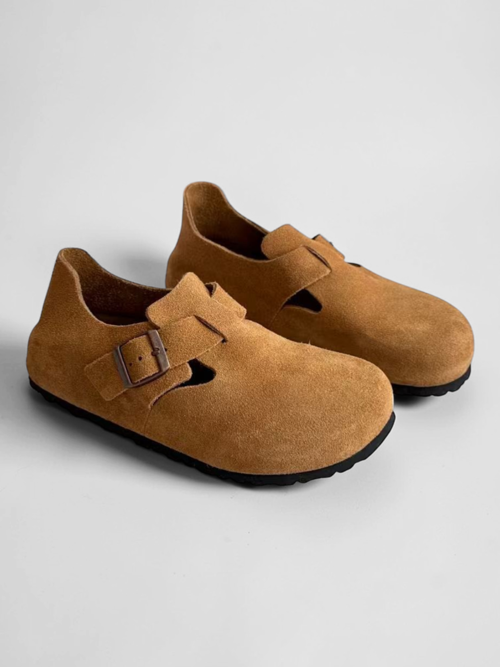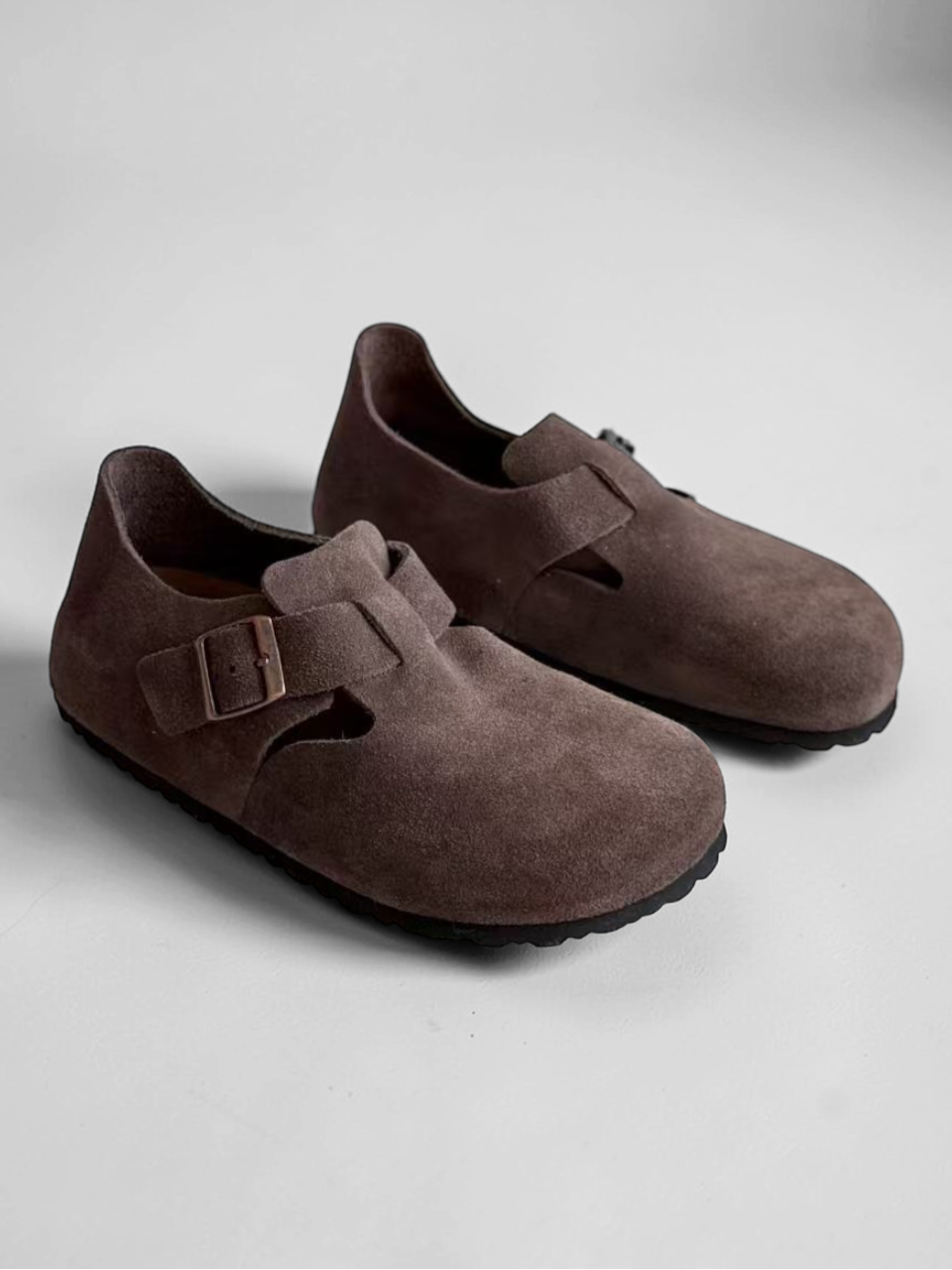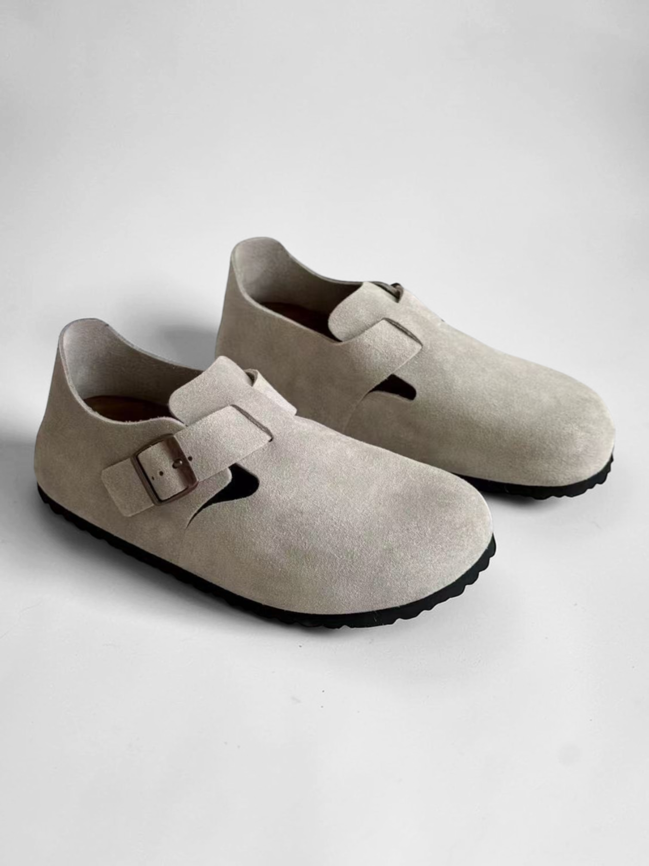 Designed for everyday ease, these leather cork footbed mules combine minimalist style with relaxed comfort. Crafted from smooth top-grain cowhide, the structured upper provides durability while maintaining a soft, flexible feel for daily wear.