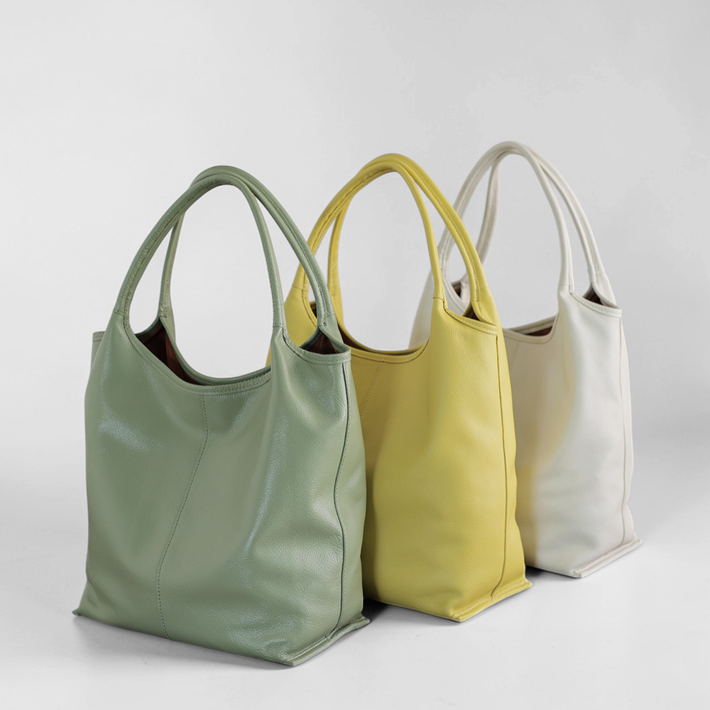 Genuine Cowhide Leather Bucket Tote – Lightweight Korean Shopping & Everyday Bag