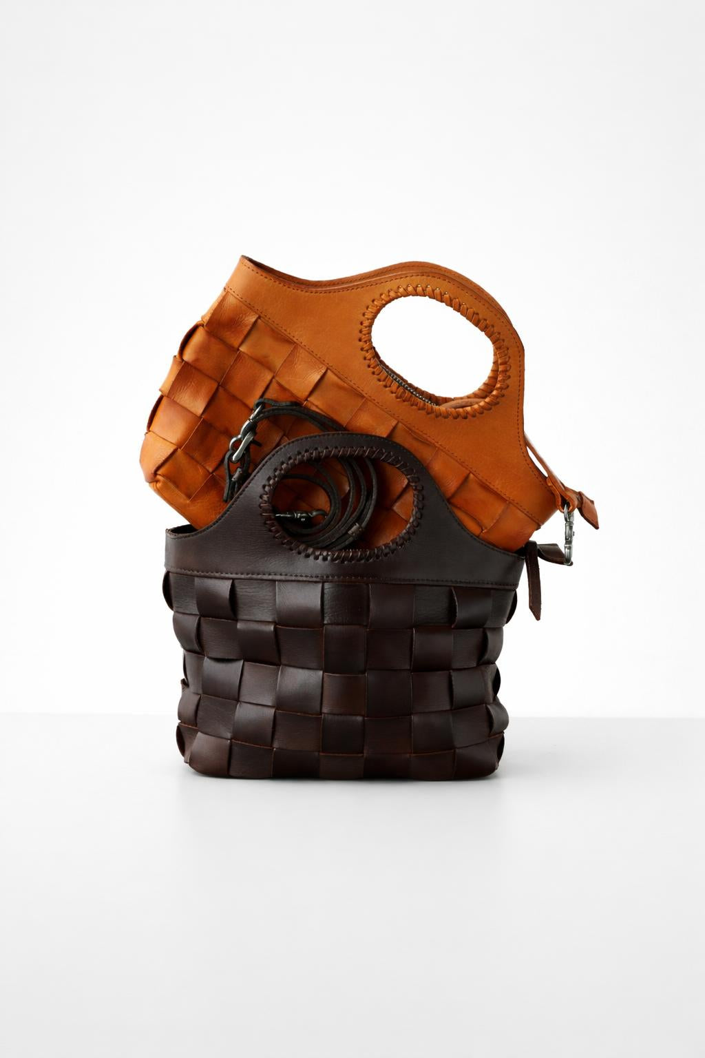 Crafted from premium first-layer cowhide and finished with intricate hand-woven detailing, this Woven Leather Basket Bag blends timeless craftsmanship with minimalist urban flair. This medium-sized tote boasts a structured horizontal silhouette with a soft yet durable feel, making it an ideal choice for everyday use. Designed for versatility, it can be worn handheld, over the shoulder, or crossbody thanks to its adjustable strap (up to 115 cm). The secure zip closure opens to a practical interior lined in soft polyester-cotton, complete with one insert pocket and one zippered compartment to keep essentials organised. Despite its compact appearance, the bag comfortably fits a phone, iPad, umbrella, power bank, and daily makeup items. Available in rich brown or coffee tones, this commuter-friendly piece is a standout addition to any wardrobe - perfect for those who appreciate understated Korean-inspired design with a touch of slow-fashion elegance.
