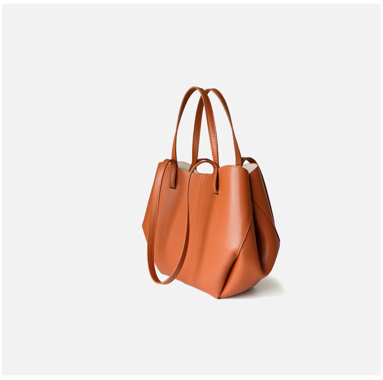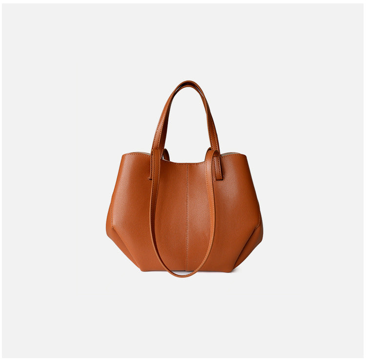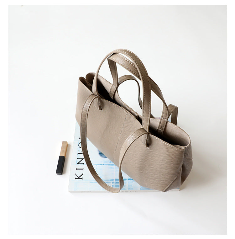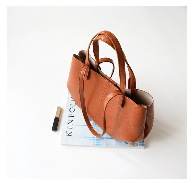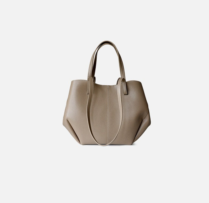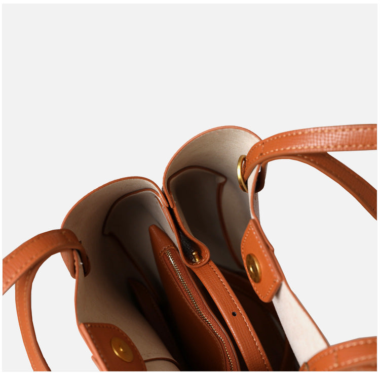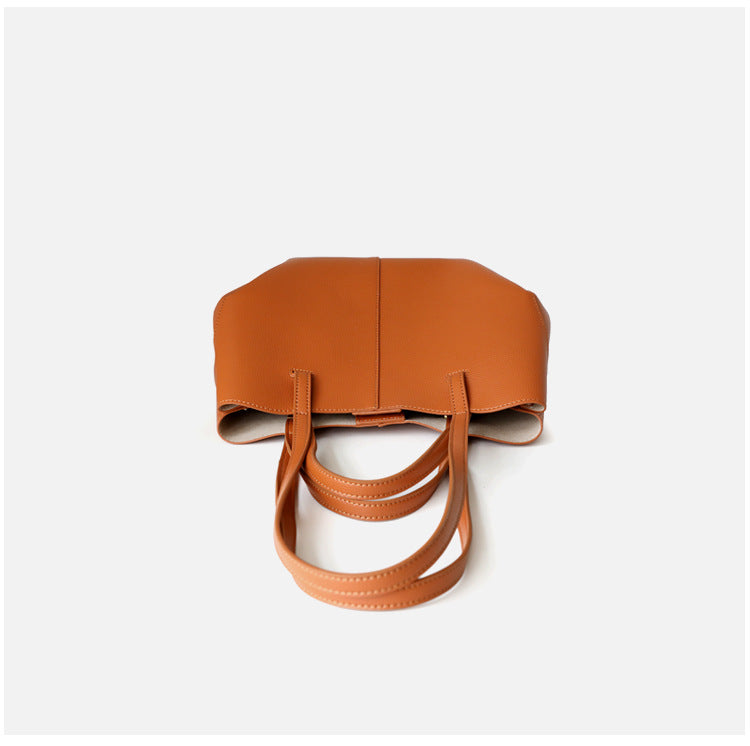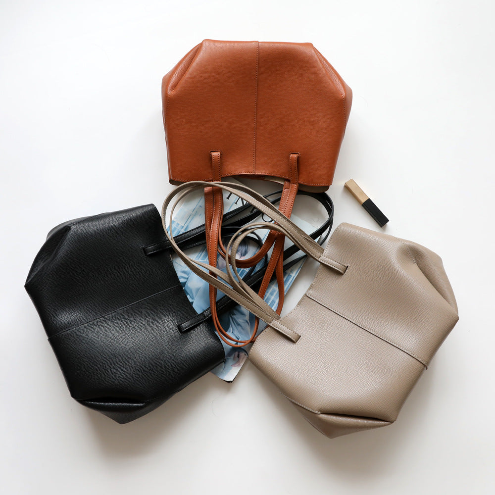 Korean Style Leather Bucket Tote – Minimalist Large Handbag