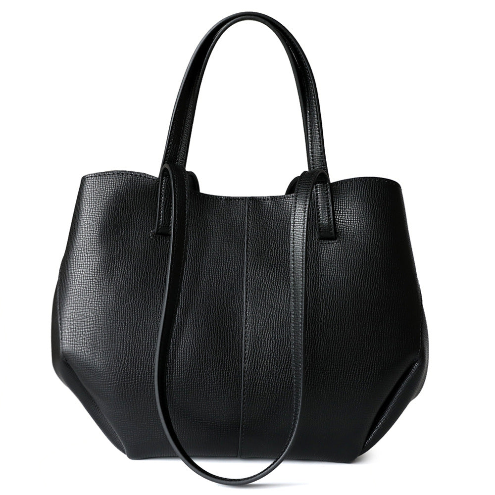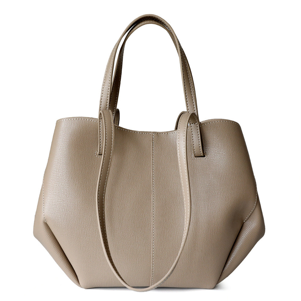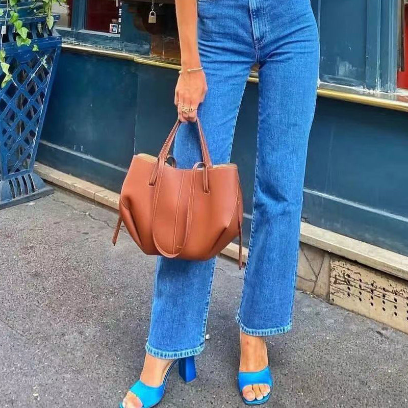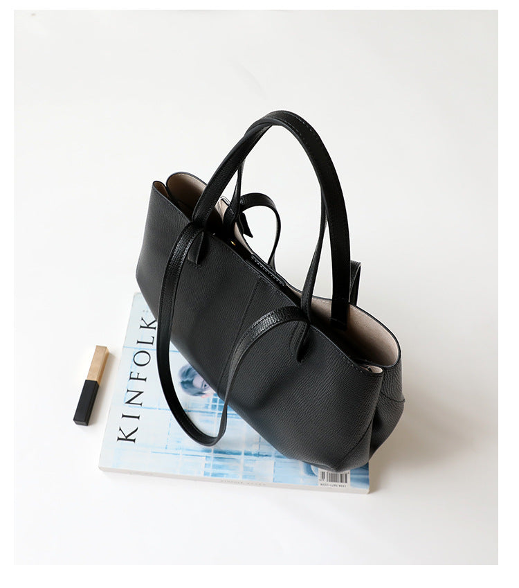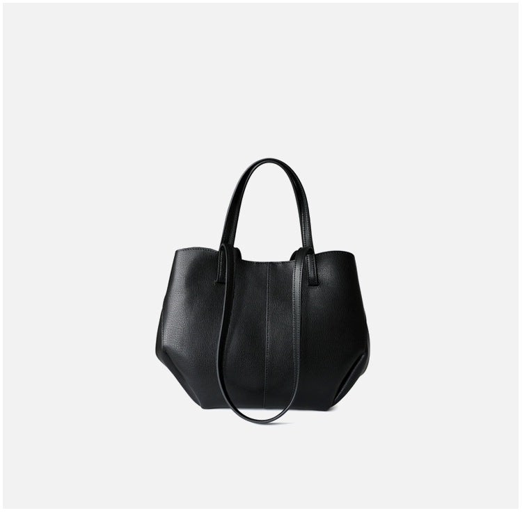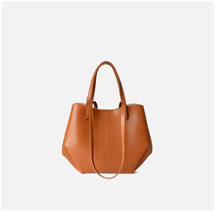 Korean Style Leather Bucket Tote – Minimalist Large Handbag