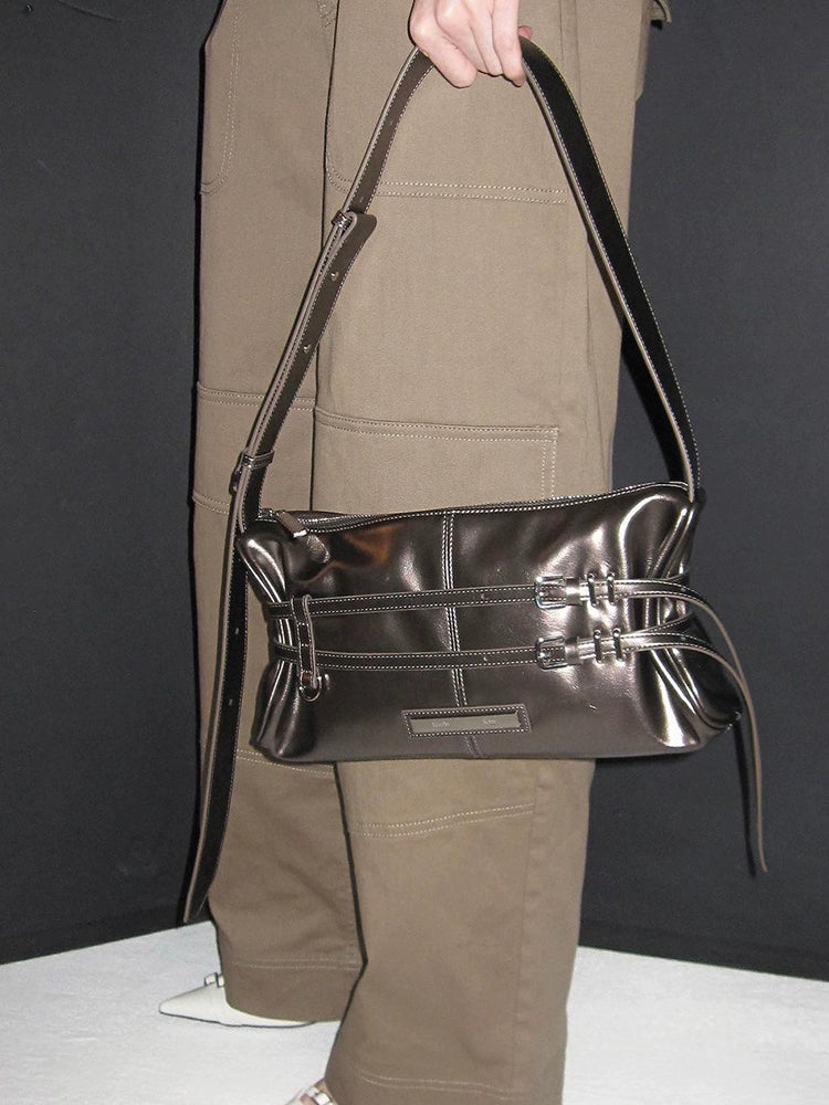A sleek and versatile everyday companion, this horizontal square-shaped drawstring shoulder bag with Korean minimalist aesthetics with functional design. Crafted from soft PU leather with a synthetic leather lining.