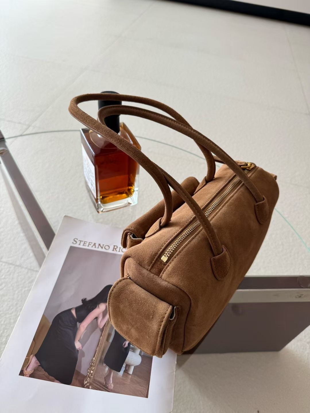 Matte Cowhide Bowling Bag – Large Genuine Leather Handheld & Under-Arm Tote