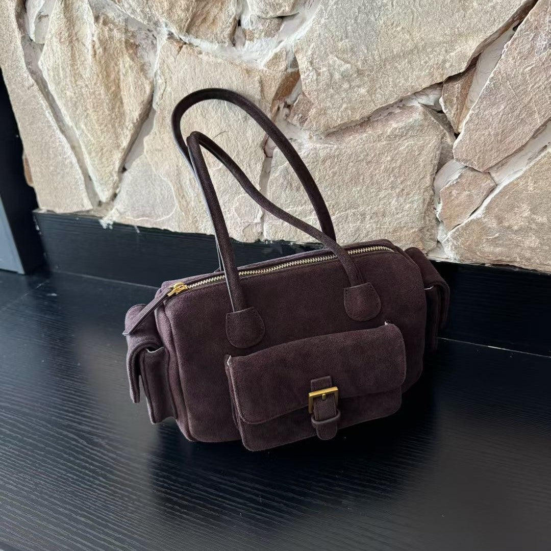 Designed for versatile carry, this bag’s handheld and under-arm silhouette pairs beautifully with urban casual, commuter, or weekend looks. Subtle stitching details enhance the street-trend aesthetic, while rich tones in Brown and Burgundy add depth and sophistication to any outfit. Whether you’re headed to brunch, errands, or city strolls, this genuine leather bowling bag brings elevated simplicity to everyday matching.
