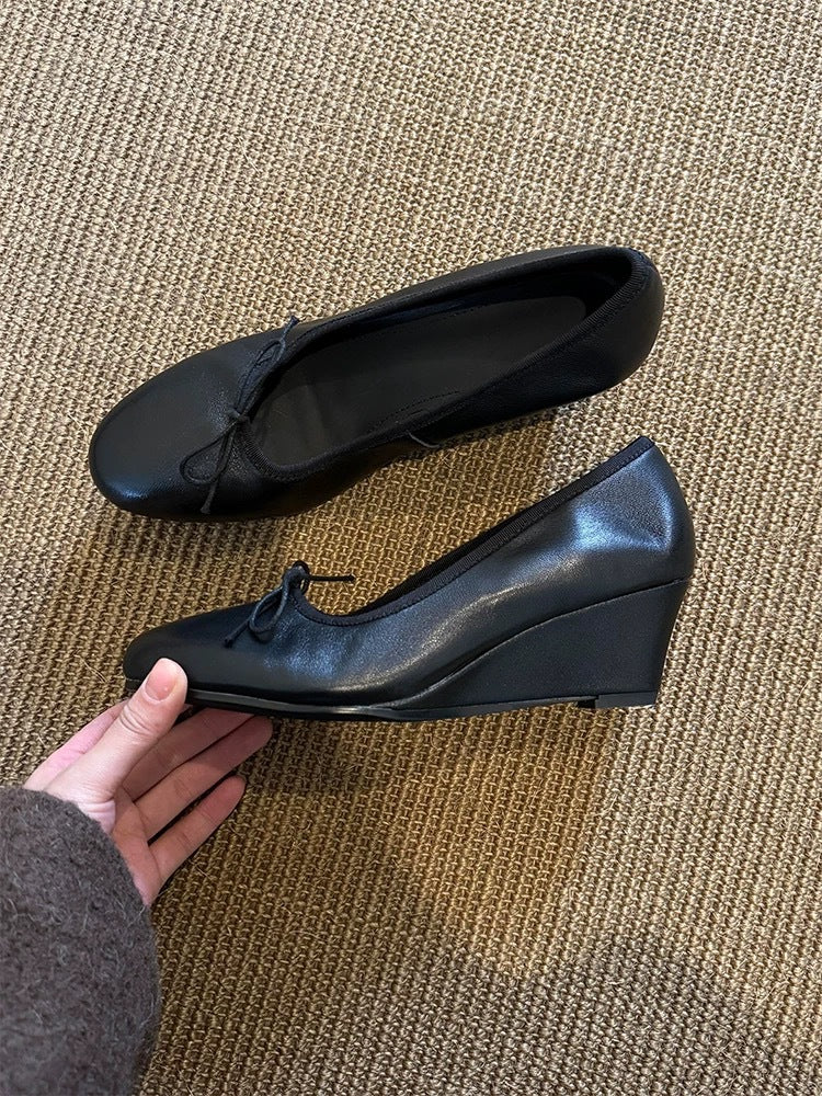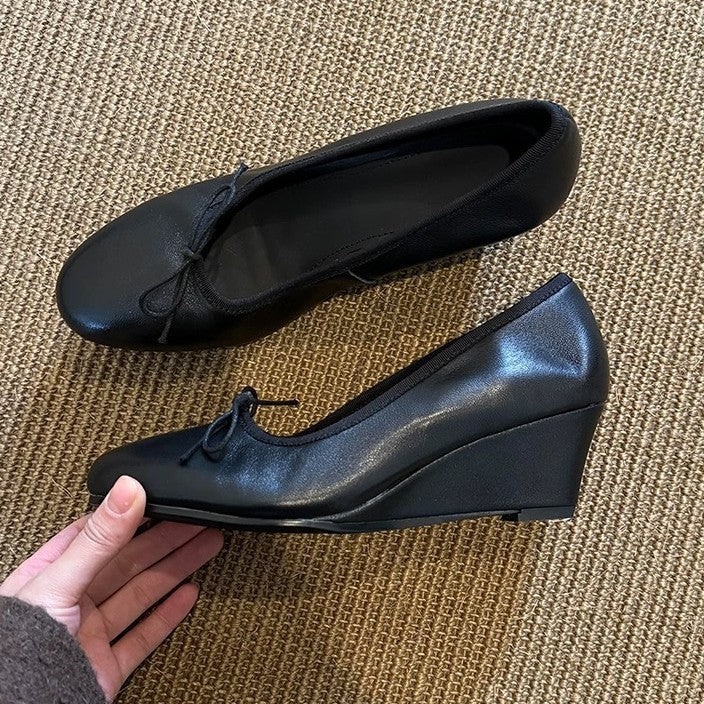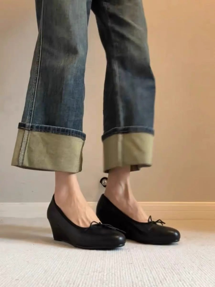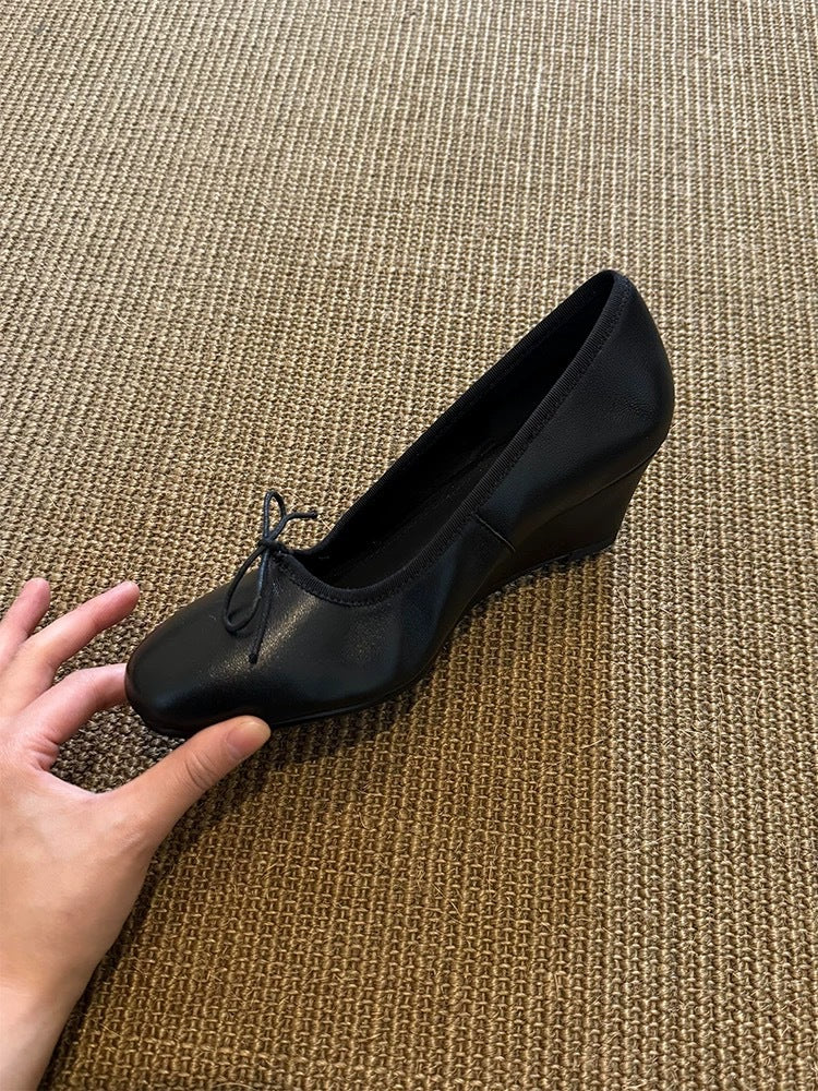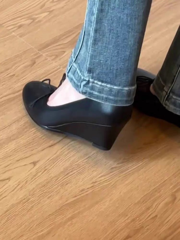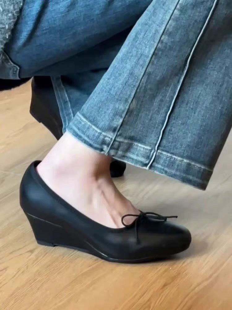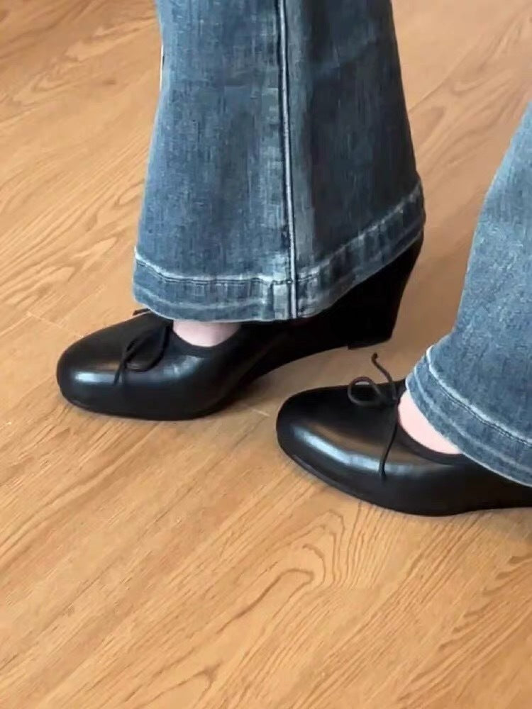 Bow Mary Jane Wedge Shoes – French Round Toe