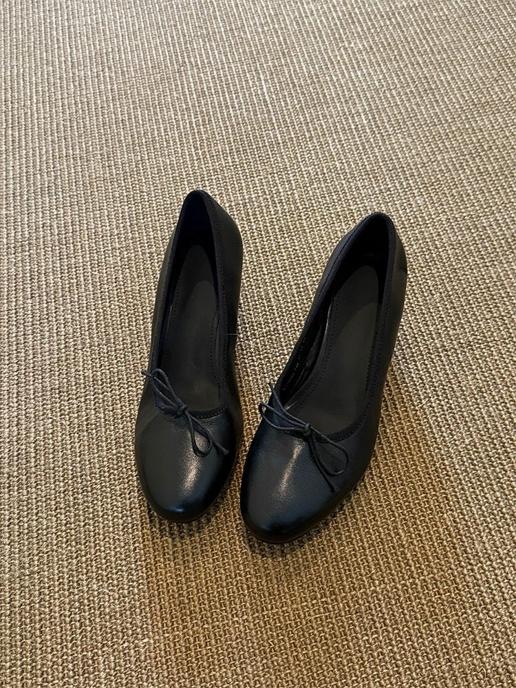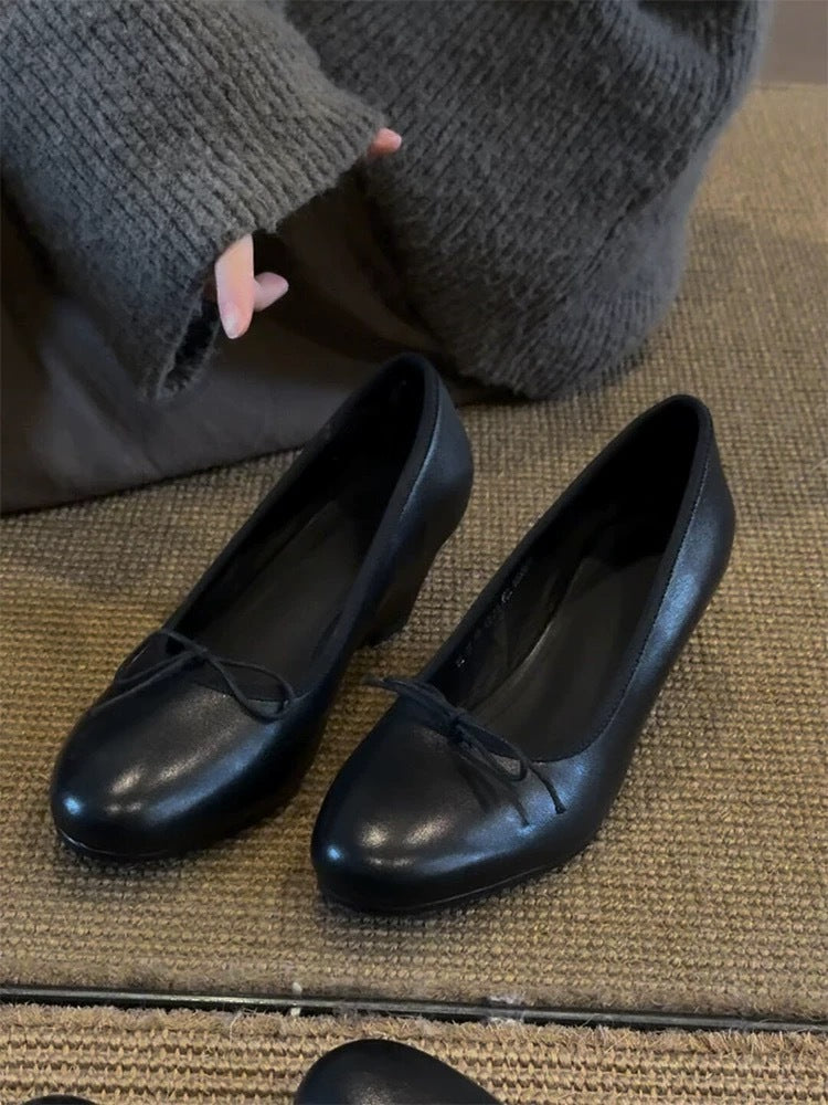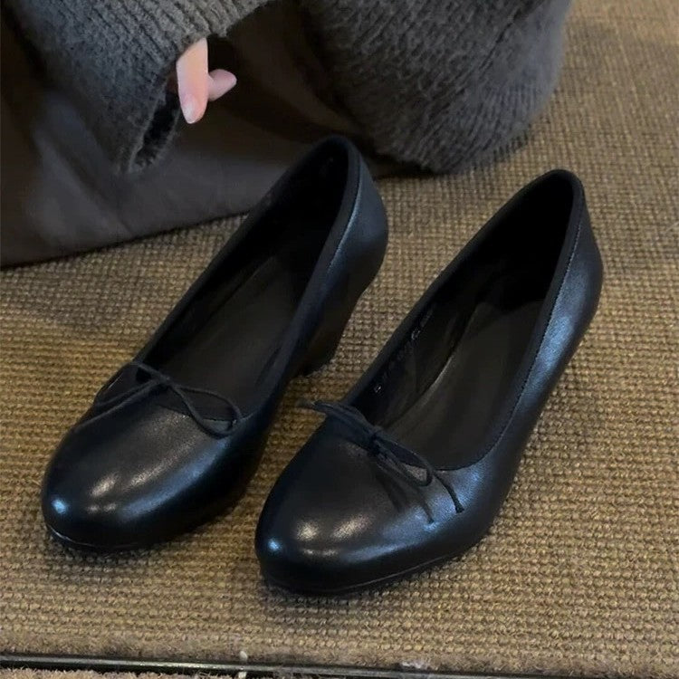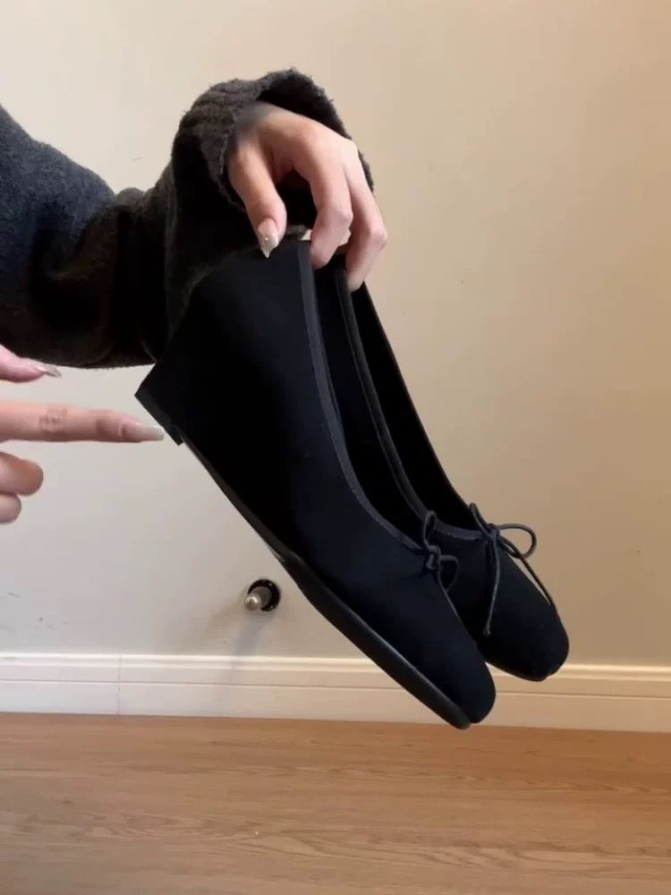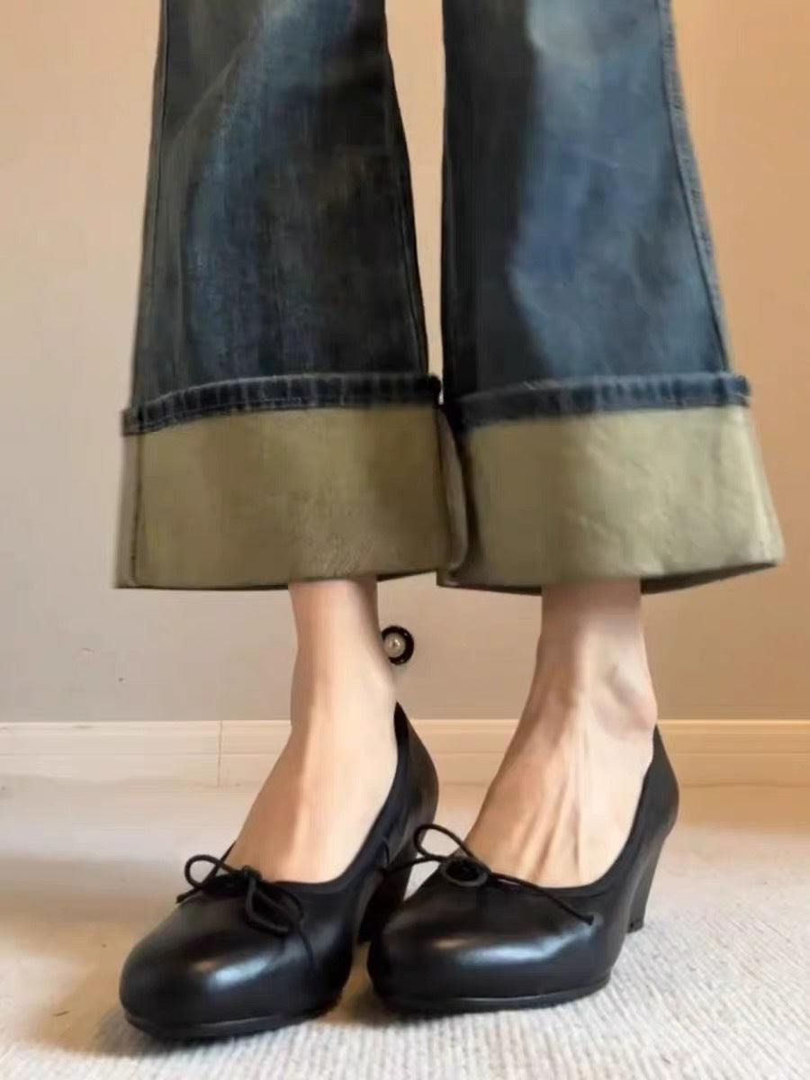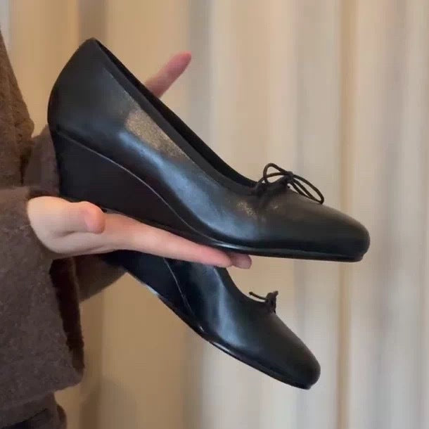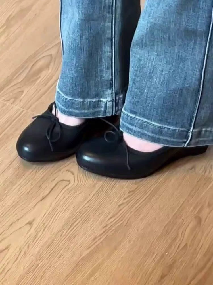 Bow Mary Jane Wedge Shoes – French Round Toe
