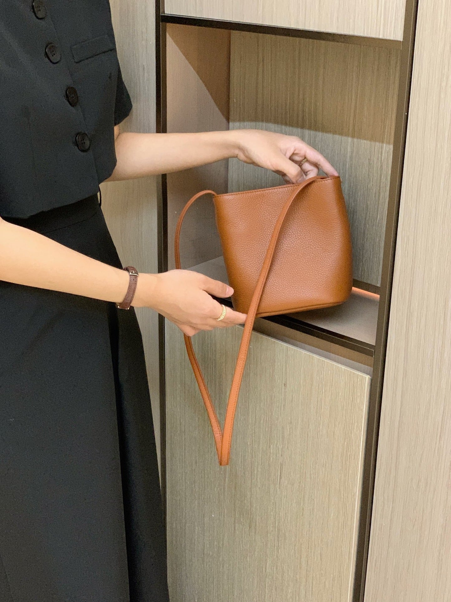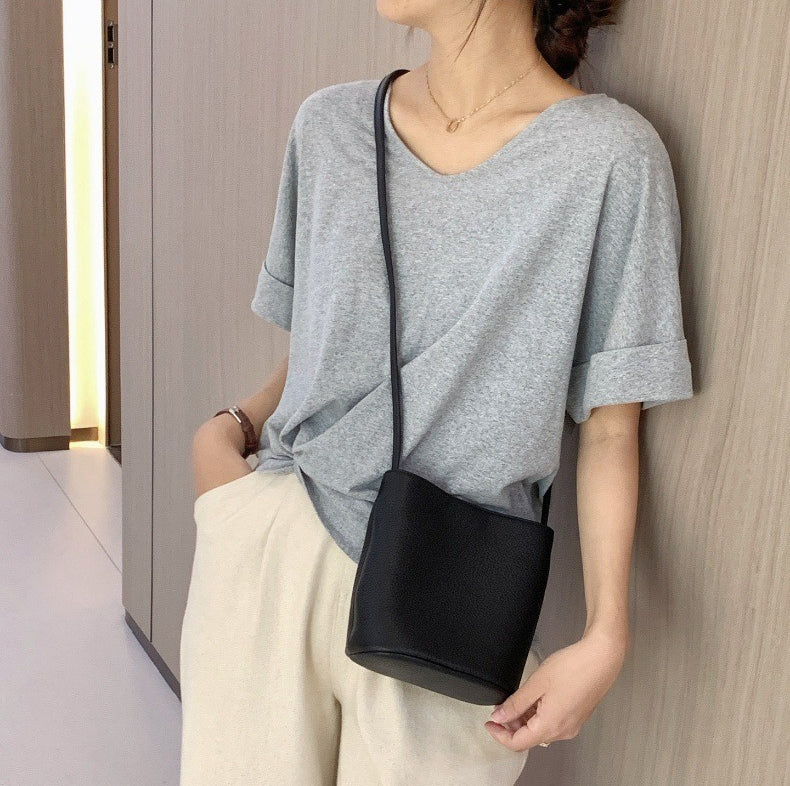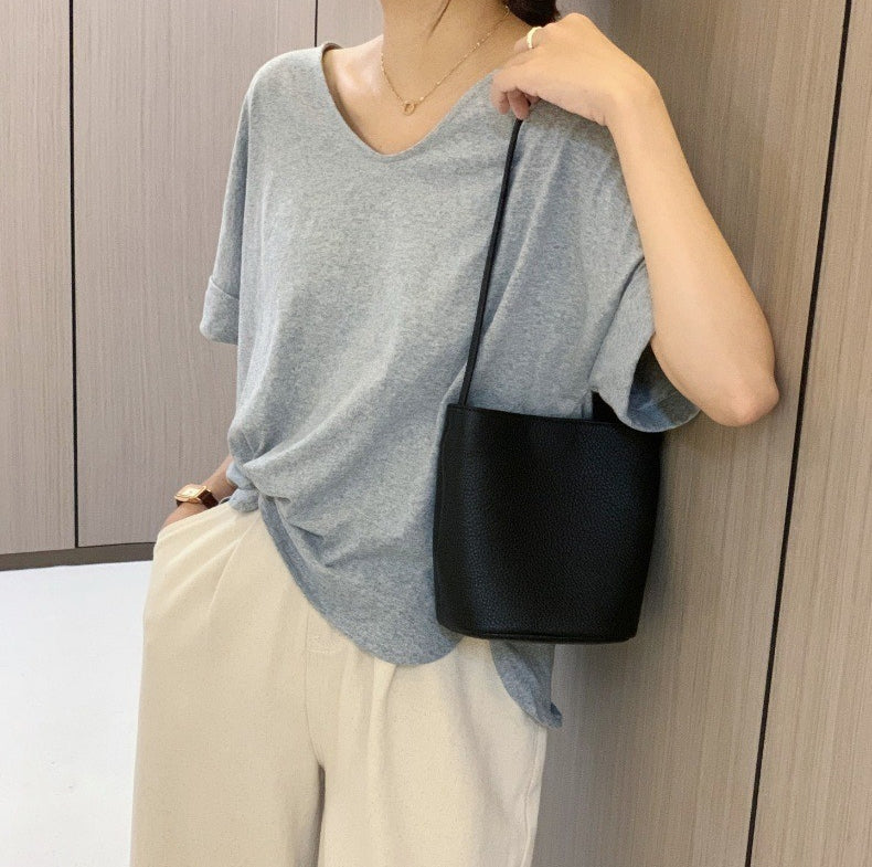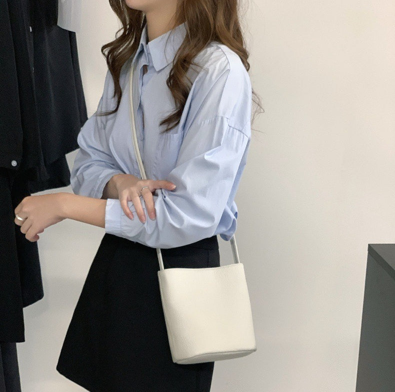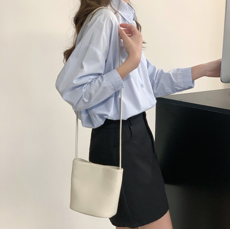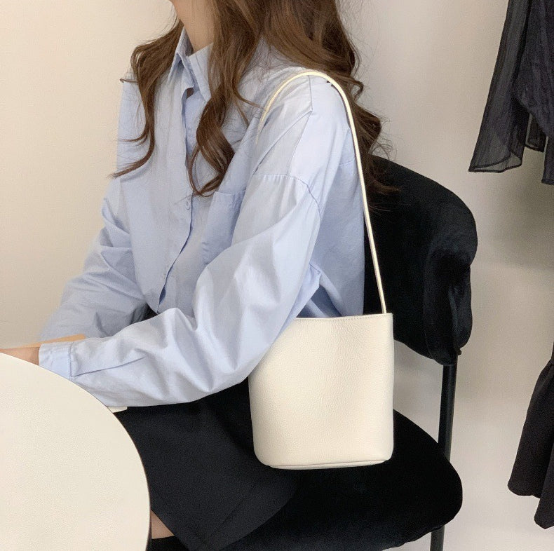 Casual PU Bucket Bag – Minimalist Large Shoulder & Crossbody Tote