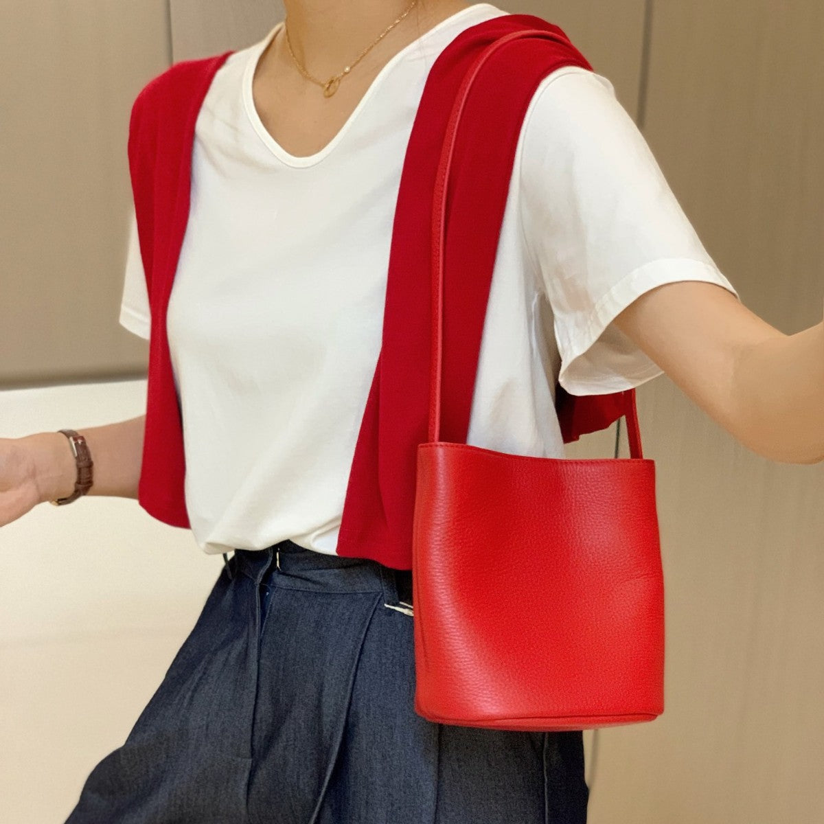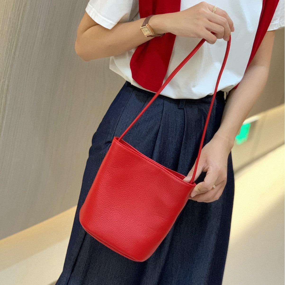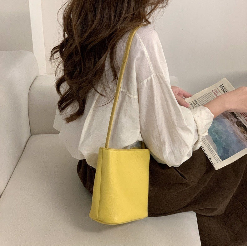 Introducing your new everyday essential: a Spring casual bucket shoulder bag designed for effortless style and versatility. Crafted with soft, textured material and clean stitching details, this spacious bucket silhouette balances street trend energy with minimalist chic. The smooth top zipper keeps belongings secure, while the single long shoulder strap allows for comfortable carry as a shoulder or crossbody bag. Inside, a convenient phone pocket keeps daily essentials organised. Available in classic colours — Yellow, White, Red, Black, and Brown — this bag complements everything from casual streetwear to chic commuter looks. Whether you’re running errands, heading to brunch, or exploring the city, this piece blends functionality and fashion with a relaxed vibe.