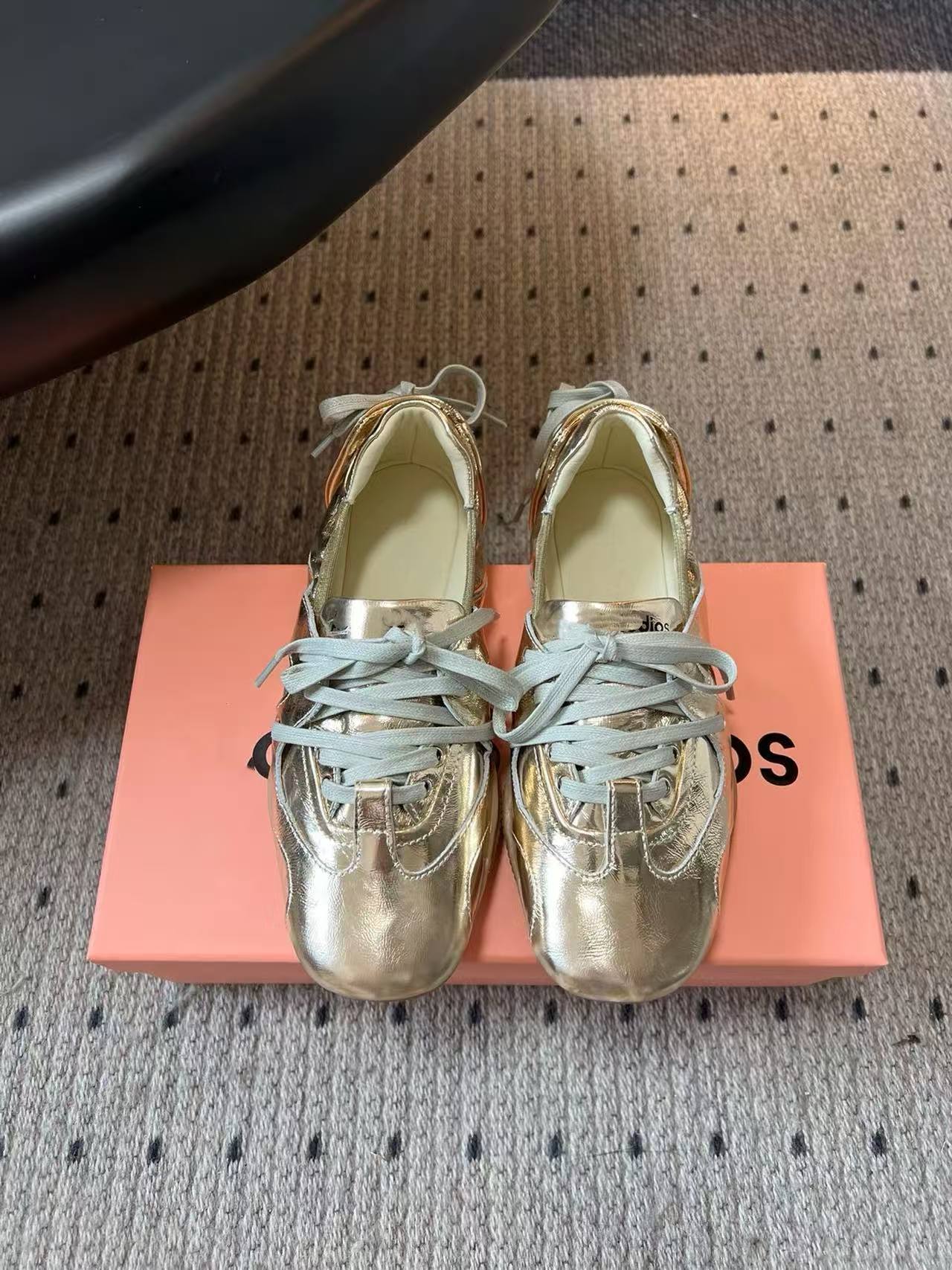 A unique blend of ballet-inspired elegance and casual sneaker comfort. These denim and leather ballet sneakers feature a soft rounded silhouette with lace-up detailing, creating a relaxed yet stylish look perfect for everyday wear.