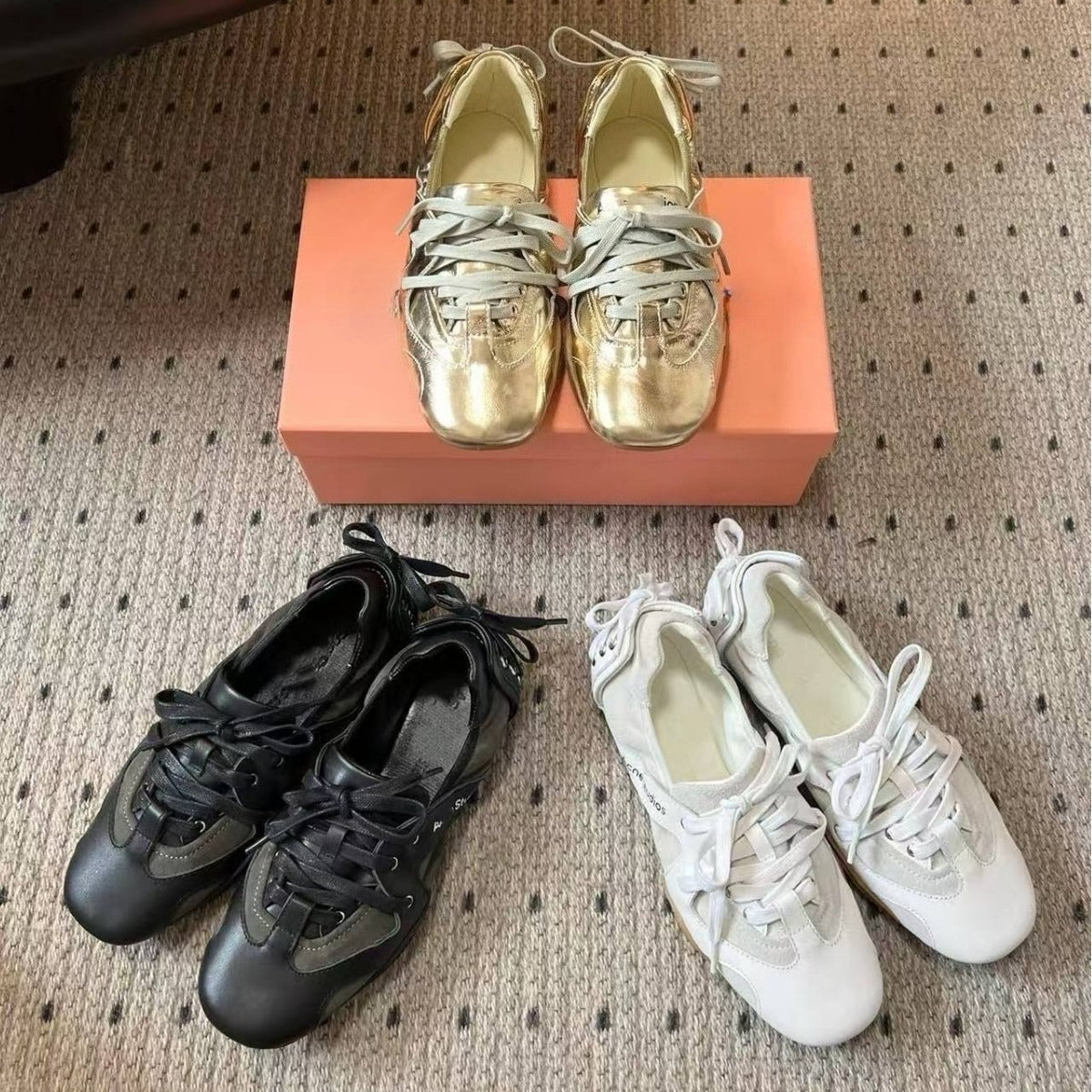 Denim & Leather Ballet Sneakers – Retro Lace-Up Flats