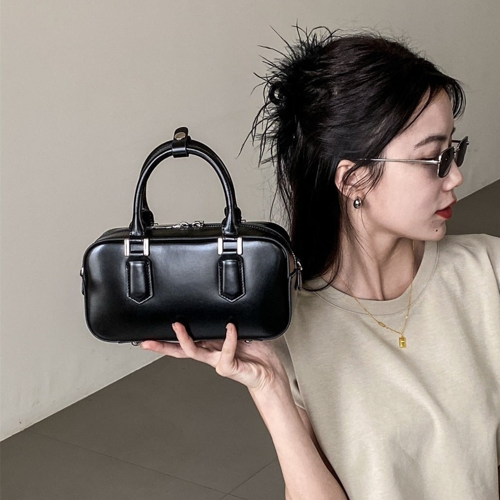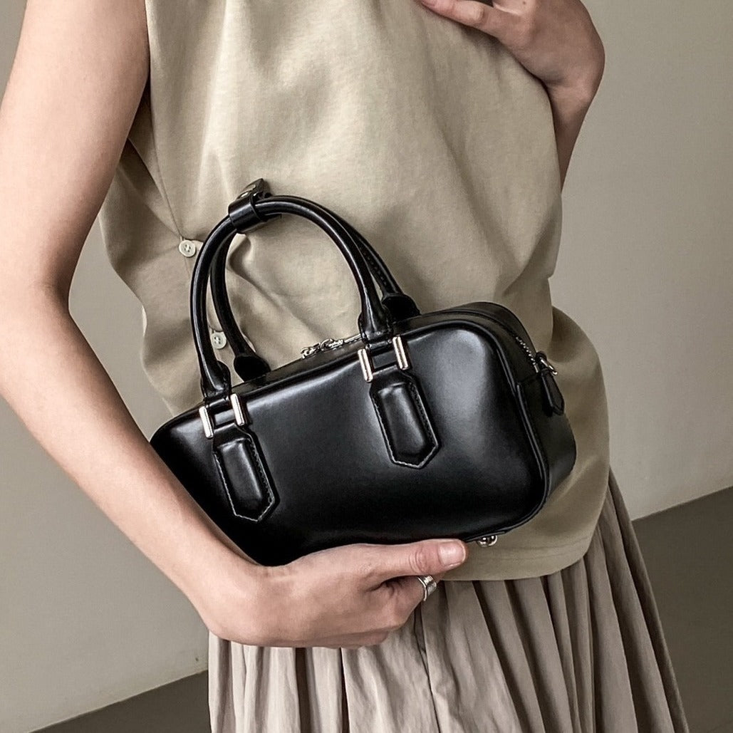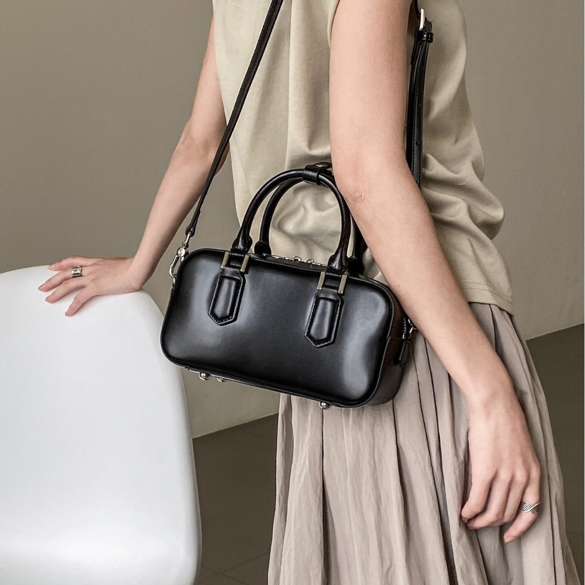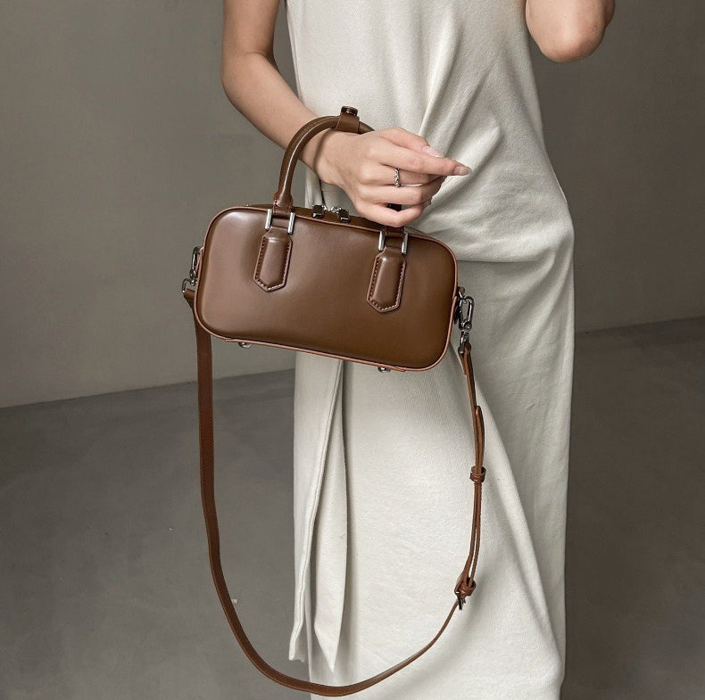 Genuine Leather Boston Bag – Small Square Commuter Shoulder
