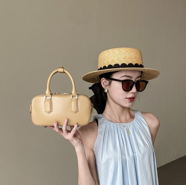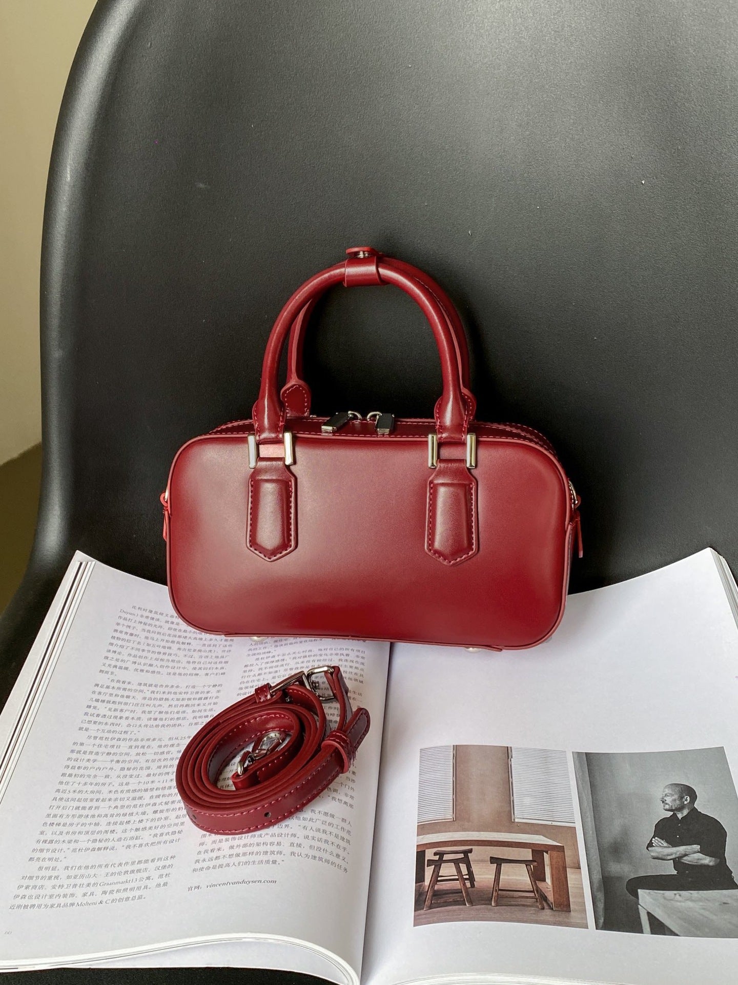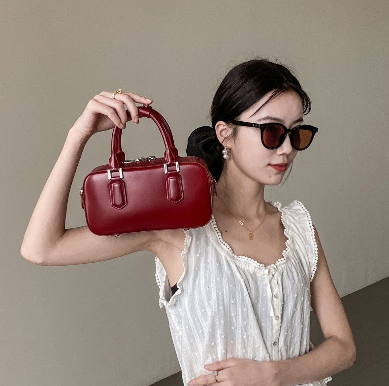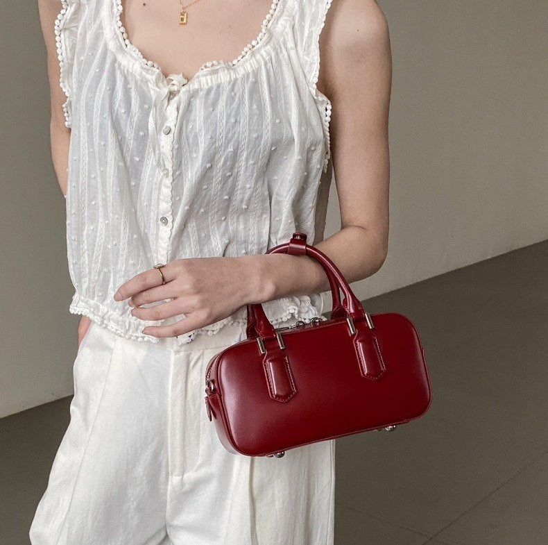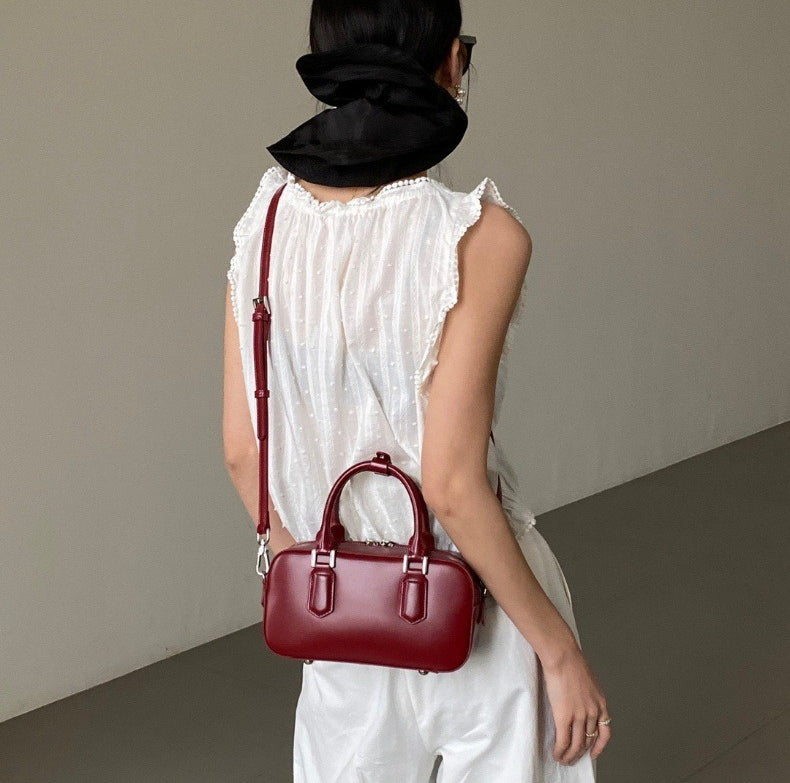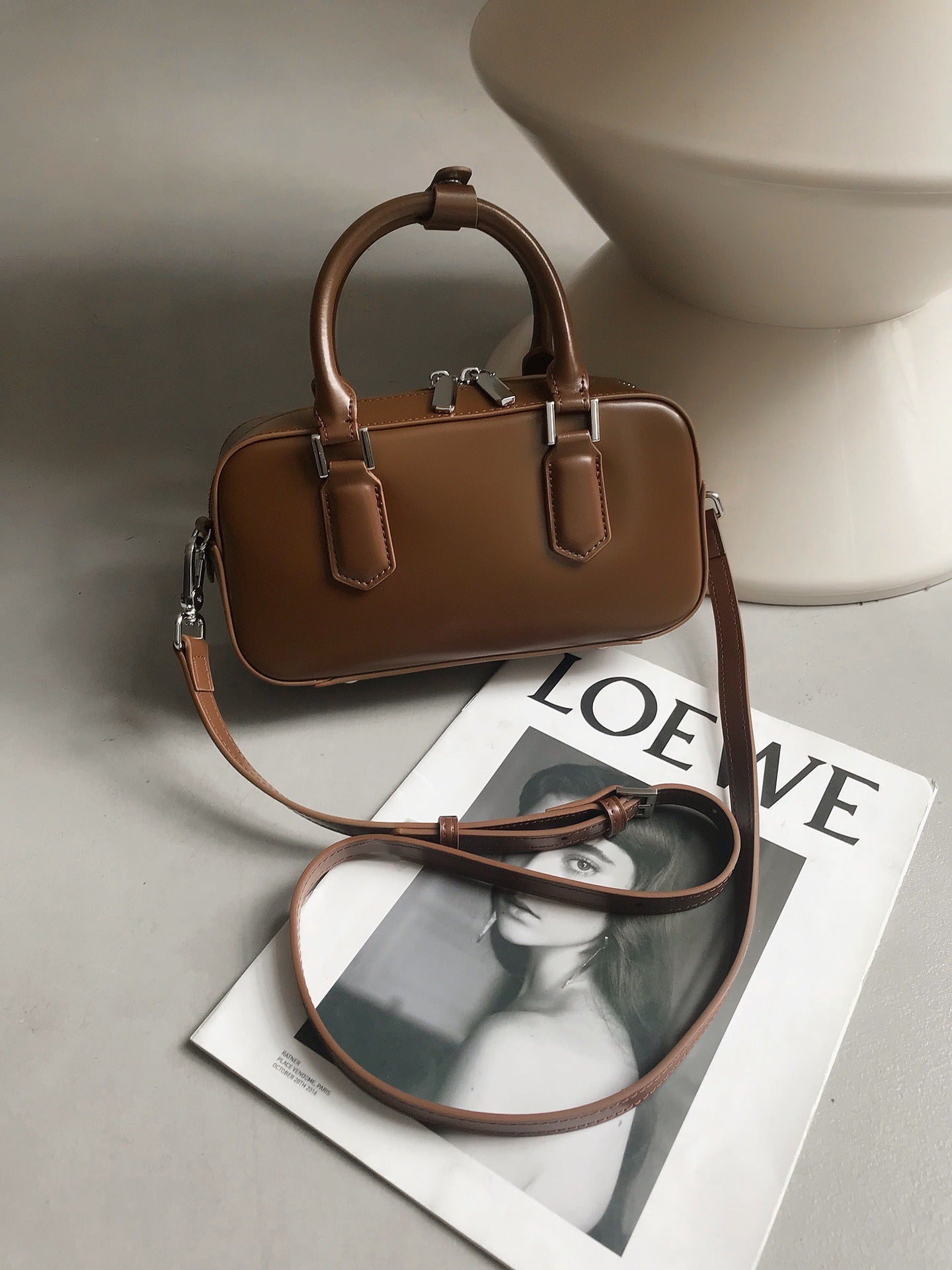 Genuine Leather Boston Bag – Small Square Commuter Shoulder