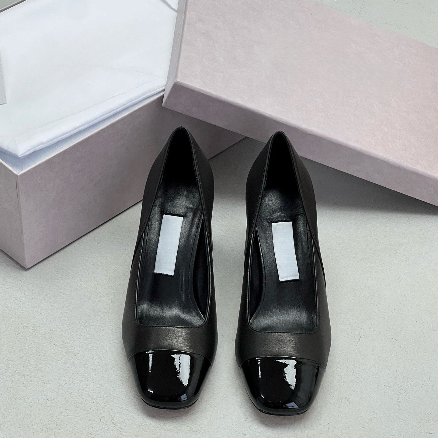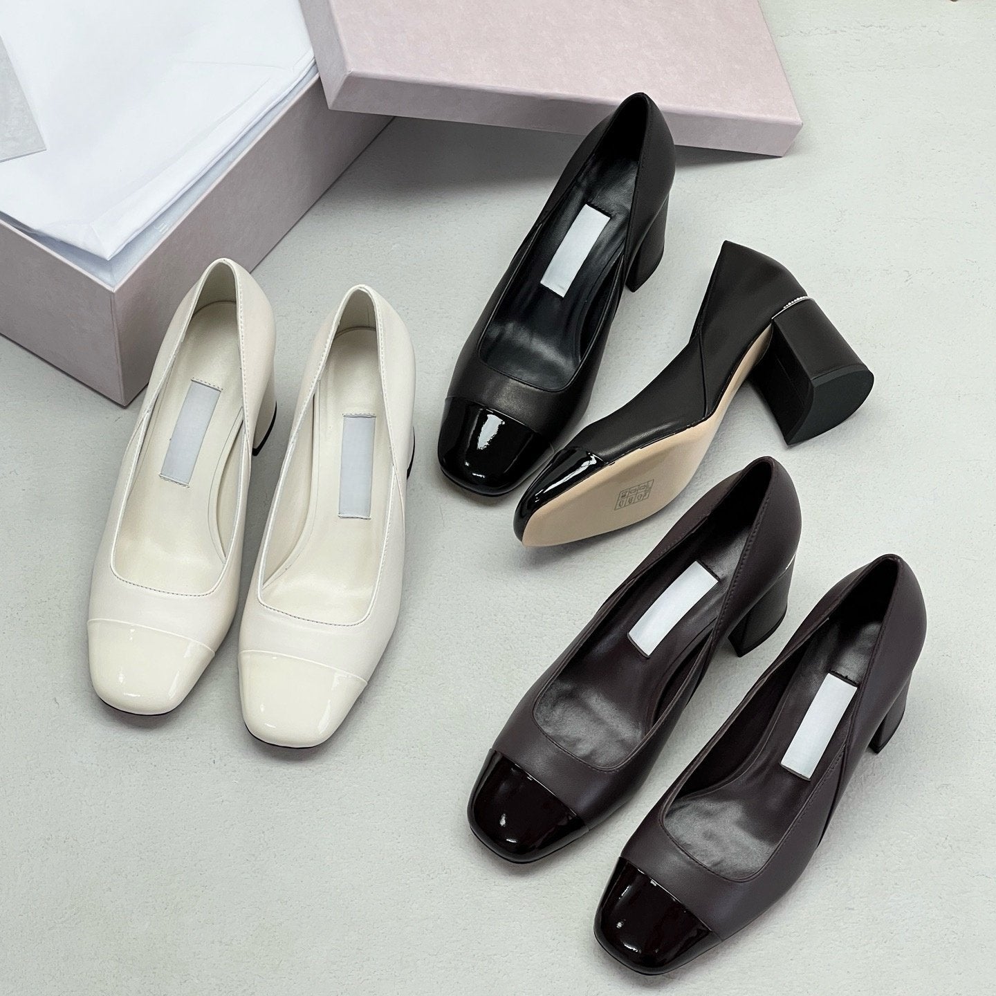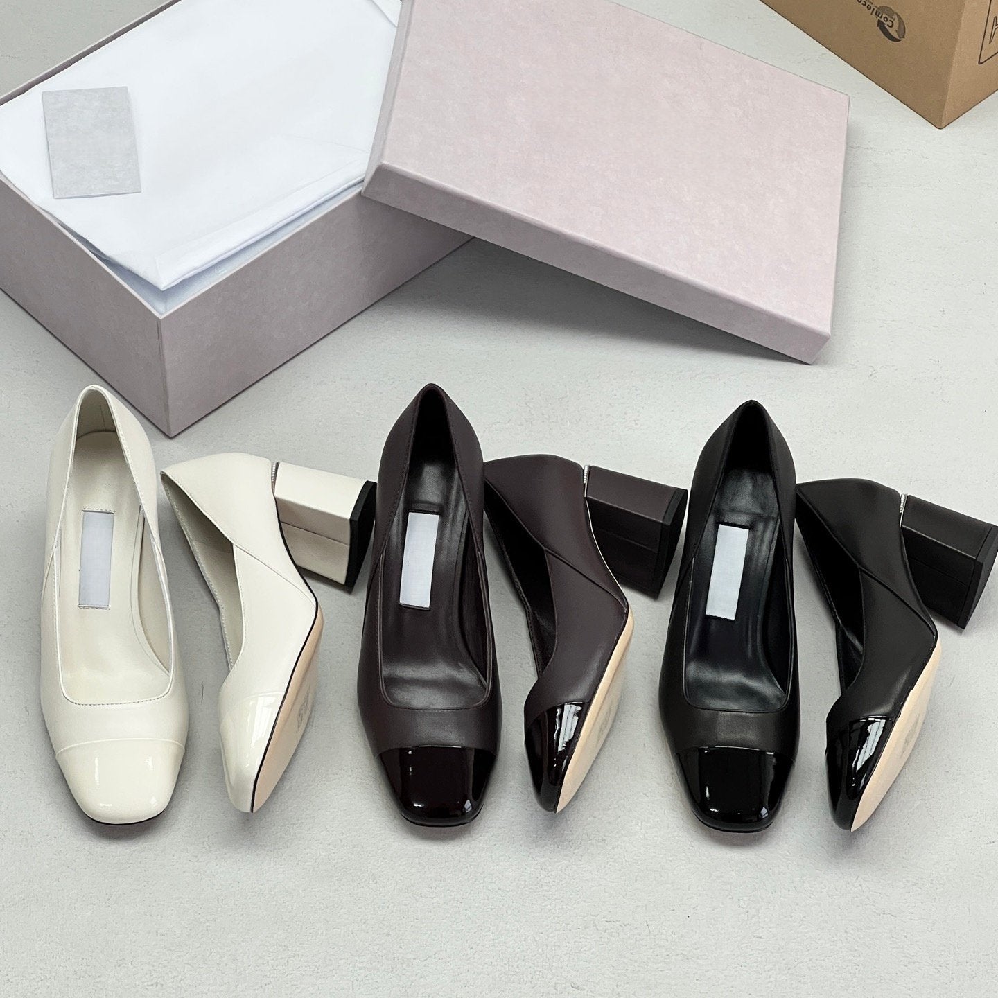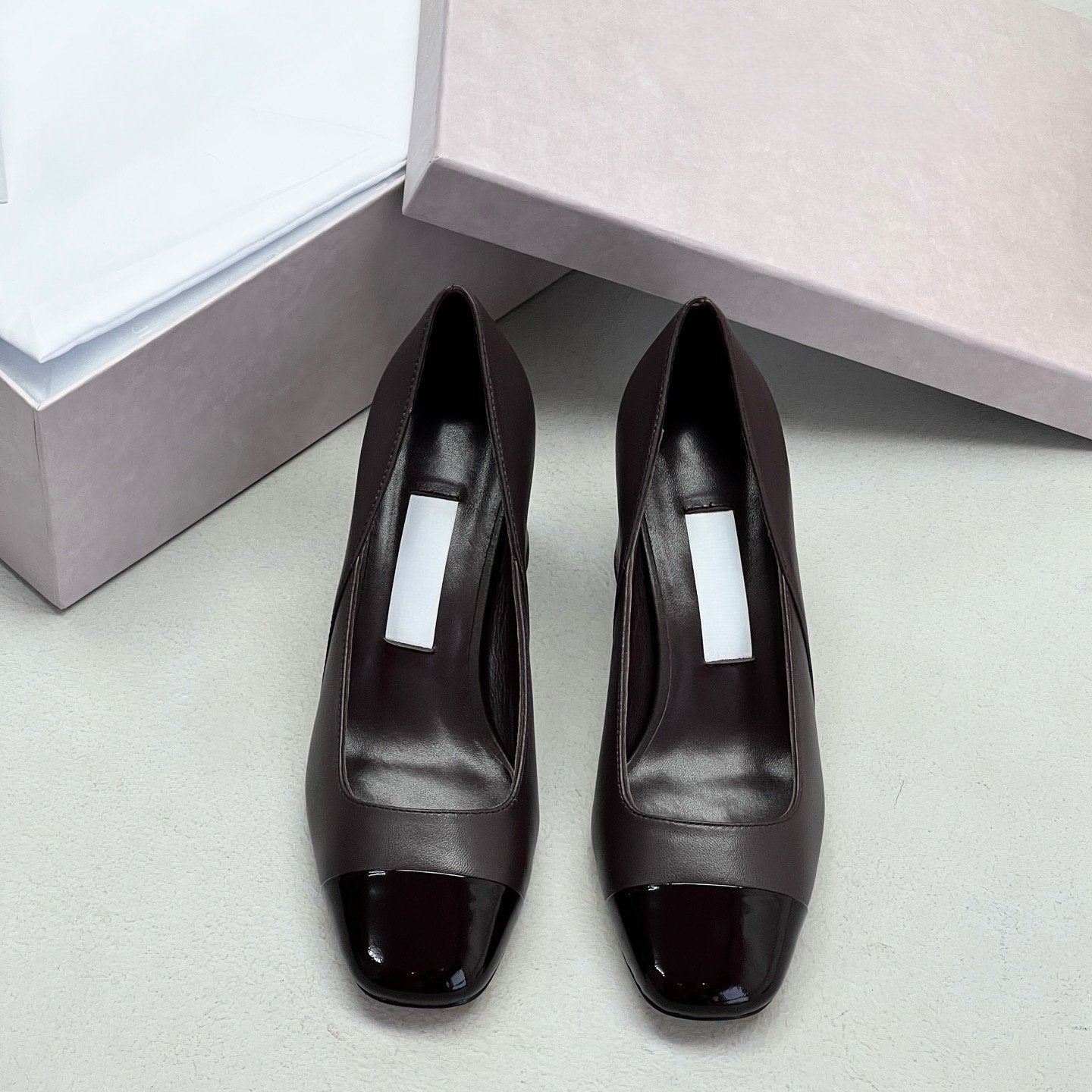 Genuine Leather Colour-Block Block-Heel Pumps – Minimalist Women’s High Heels