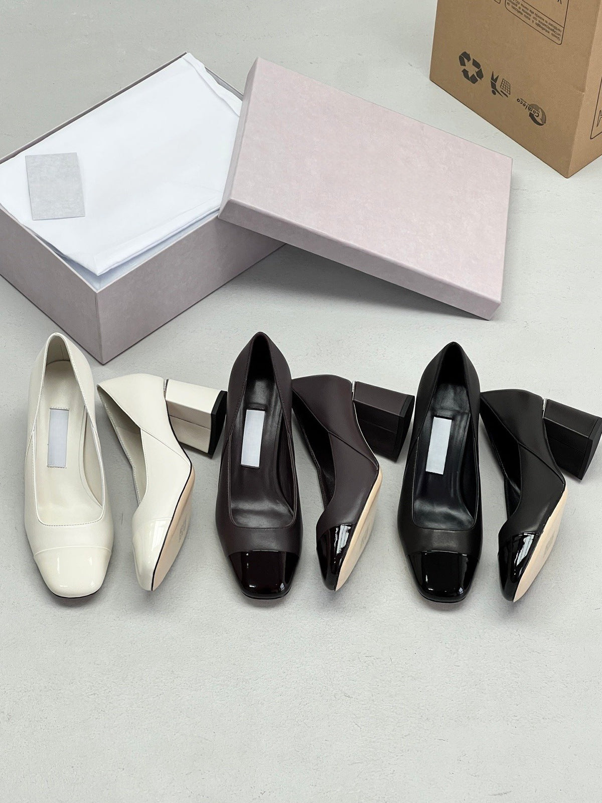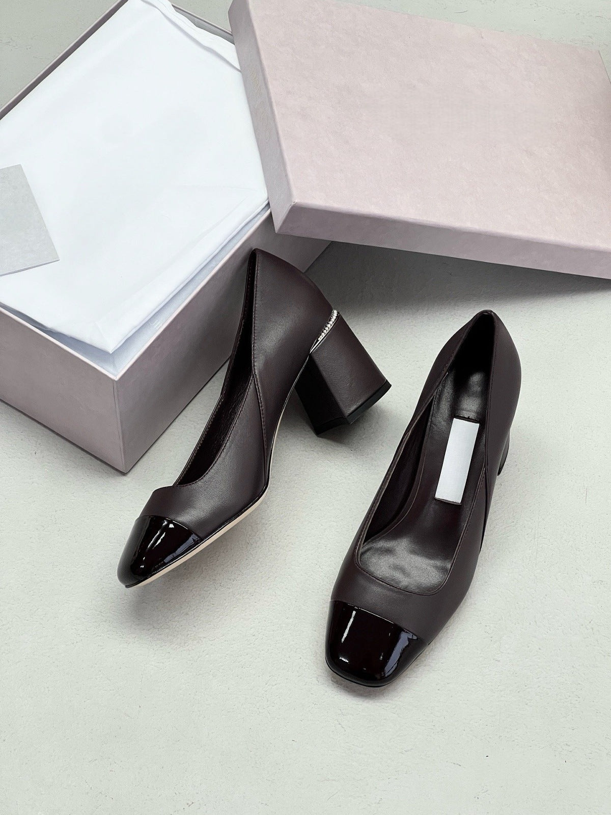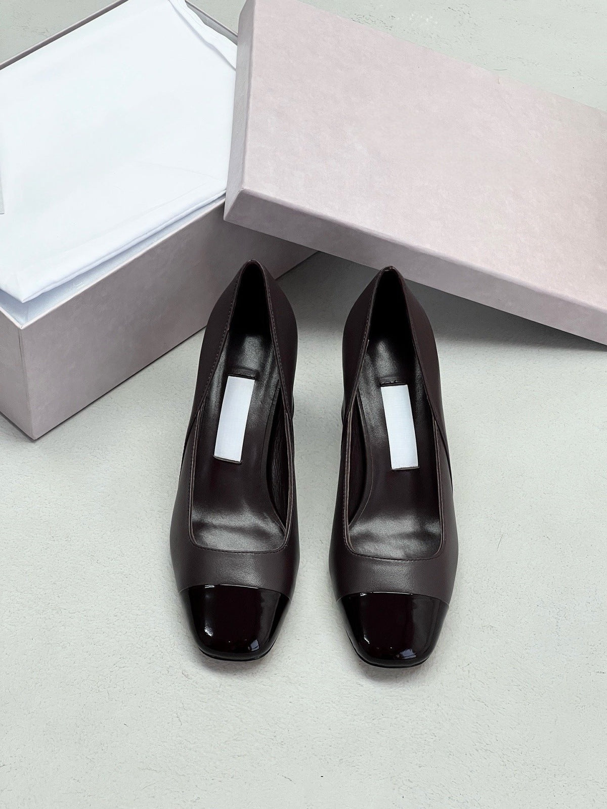 Genuine Leather Colour-Block Block-Heel Pumps – Minimalist Women’s High Heels