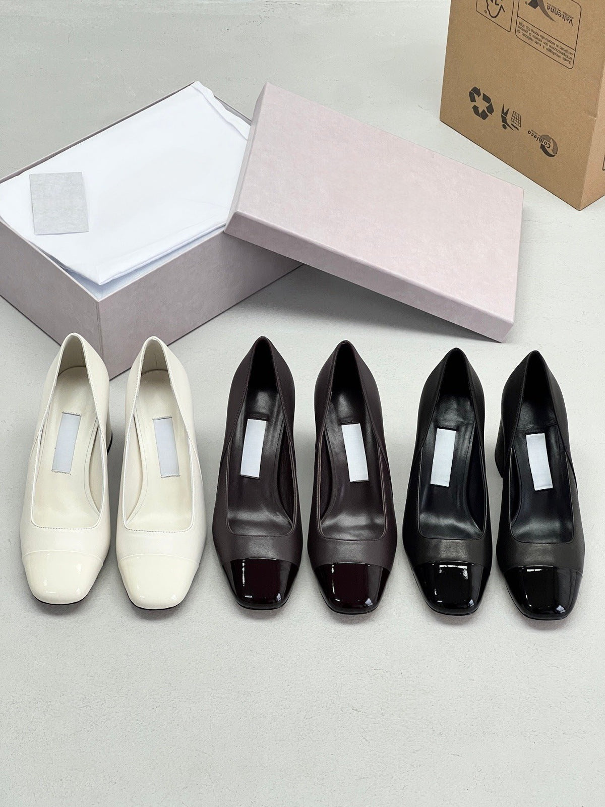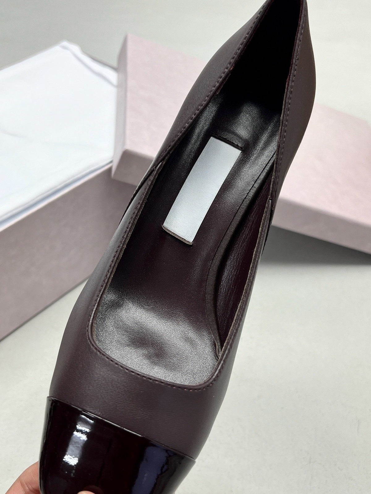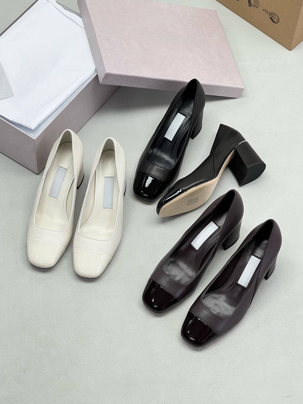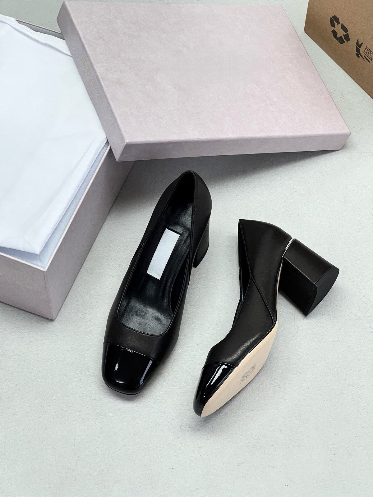 Genuine Leather Colour-Block Block-Heel Pumps – Minimalist Women’s High Heels