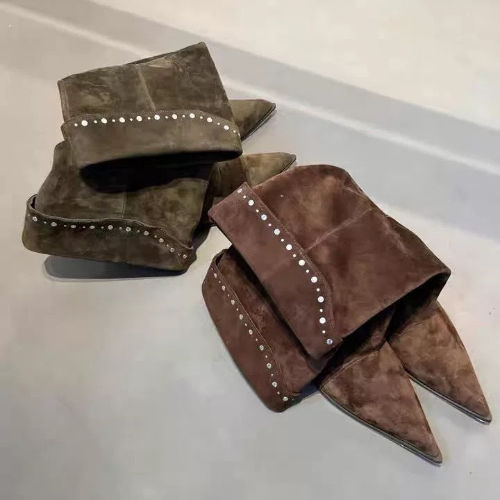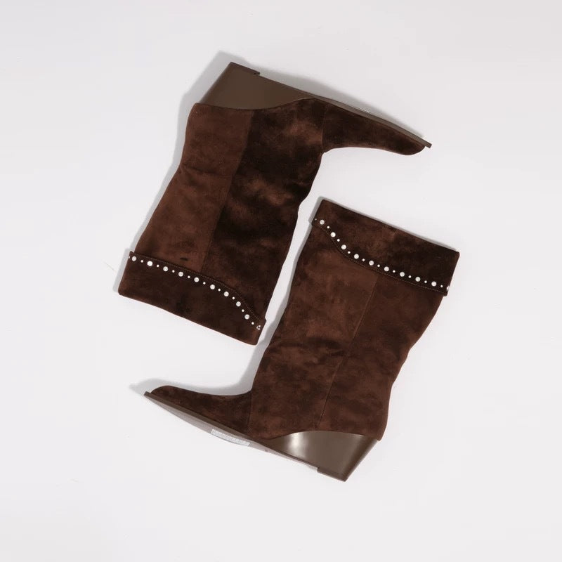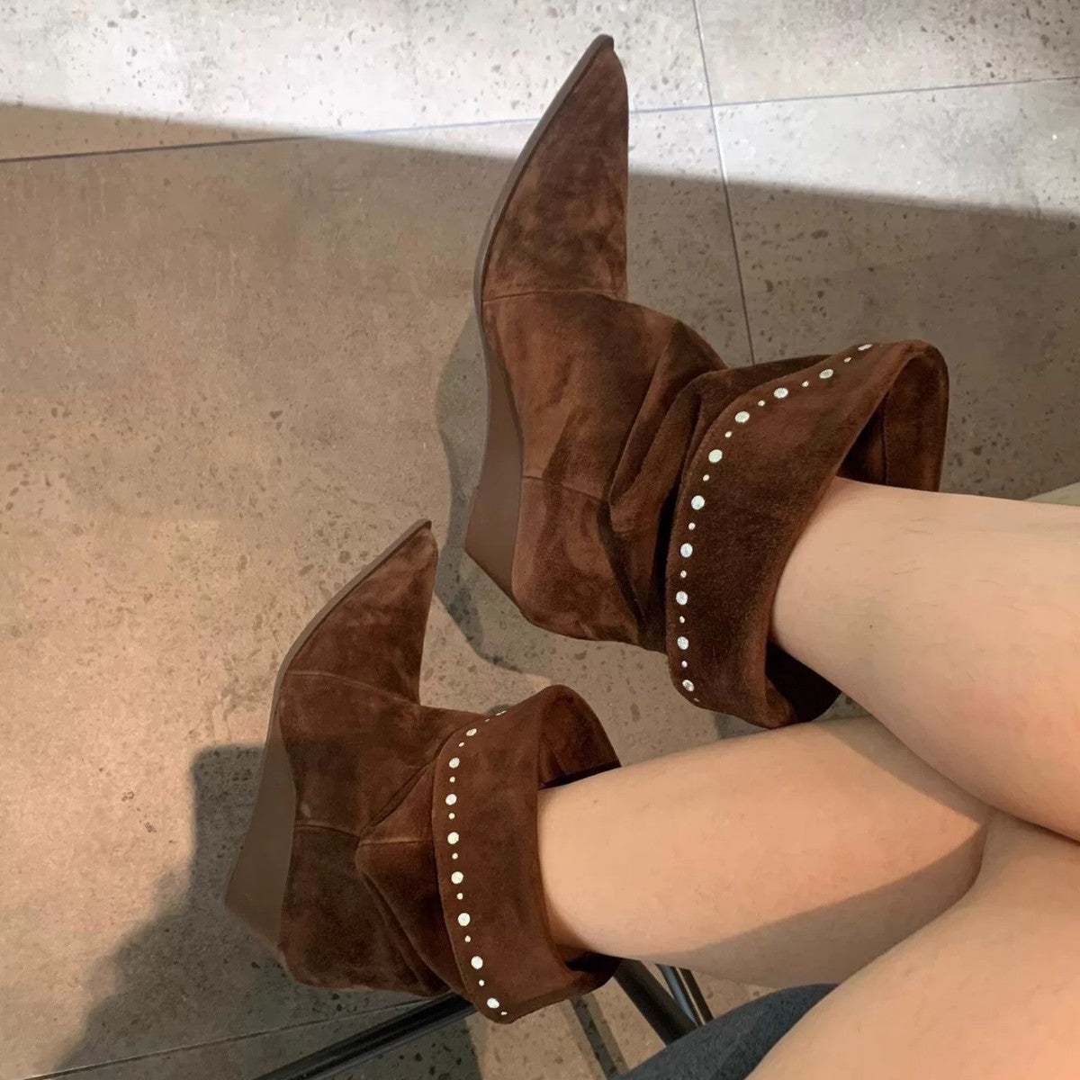 Pointed Toe Western Slouch Boots – Wedge Heel