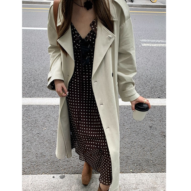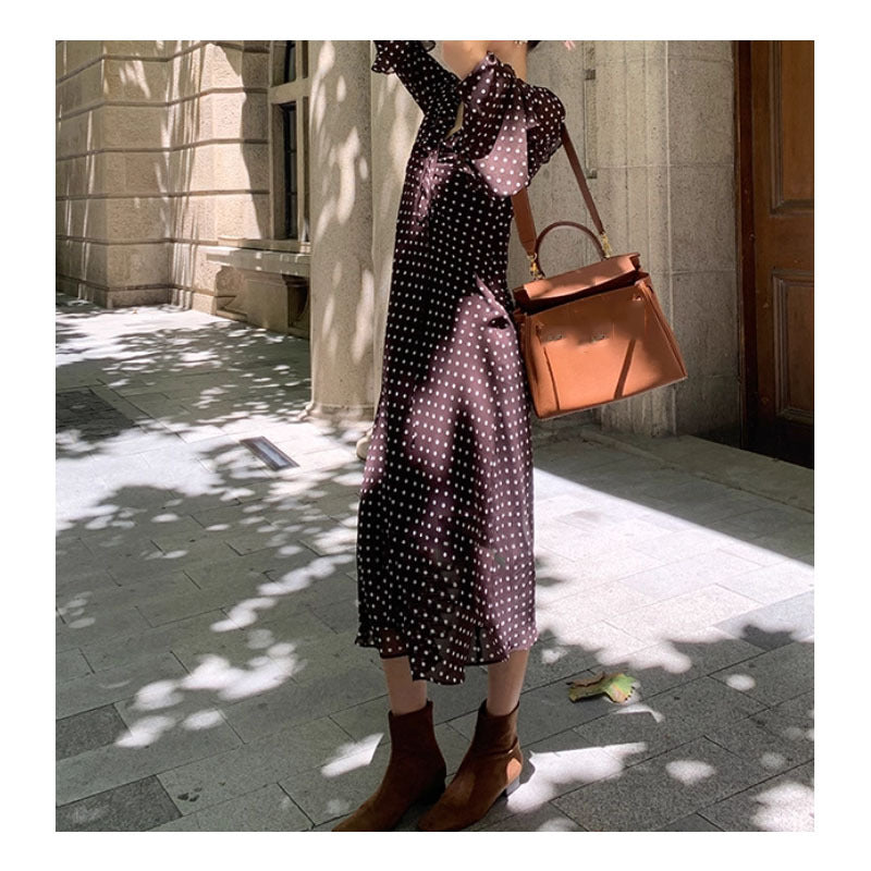 The retro-inspired polka dot pattern in coffee tones pairs effortlessly with boots or sneakers, making this piece versatile for fall styling and adaptable across wardrobes in Asia and beyond. A universal fit and classic cut make it suitable for a wide range of body types, while the elegant print and timeless lines define the Art Retro aesthetic.
