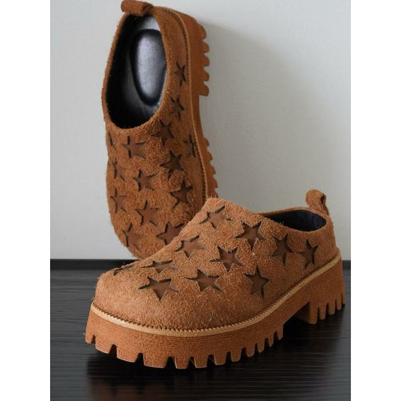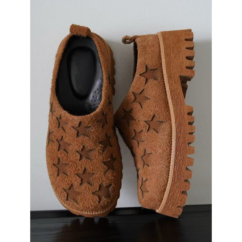 Thick-Sole Slip-On Leather Casual Shoes – High Comfort Women’s Platform Shoes