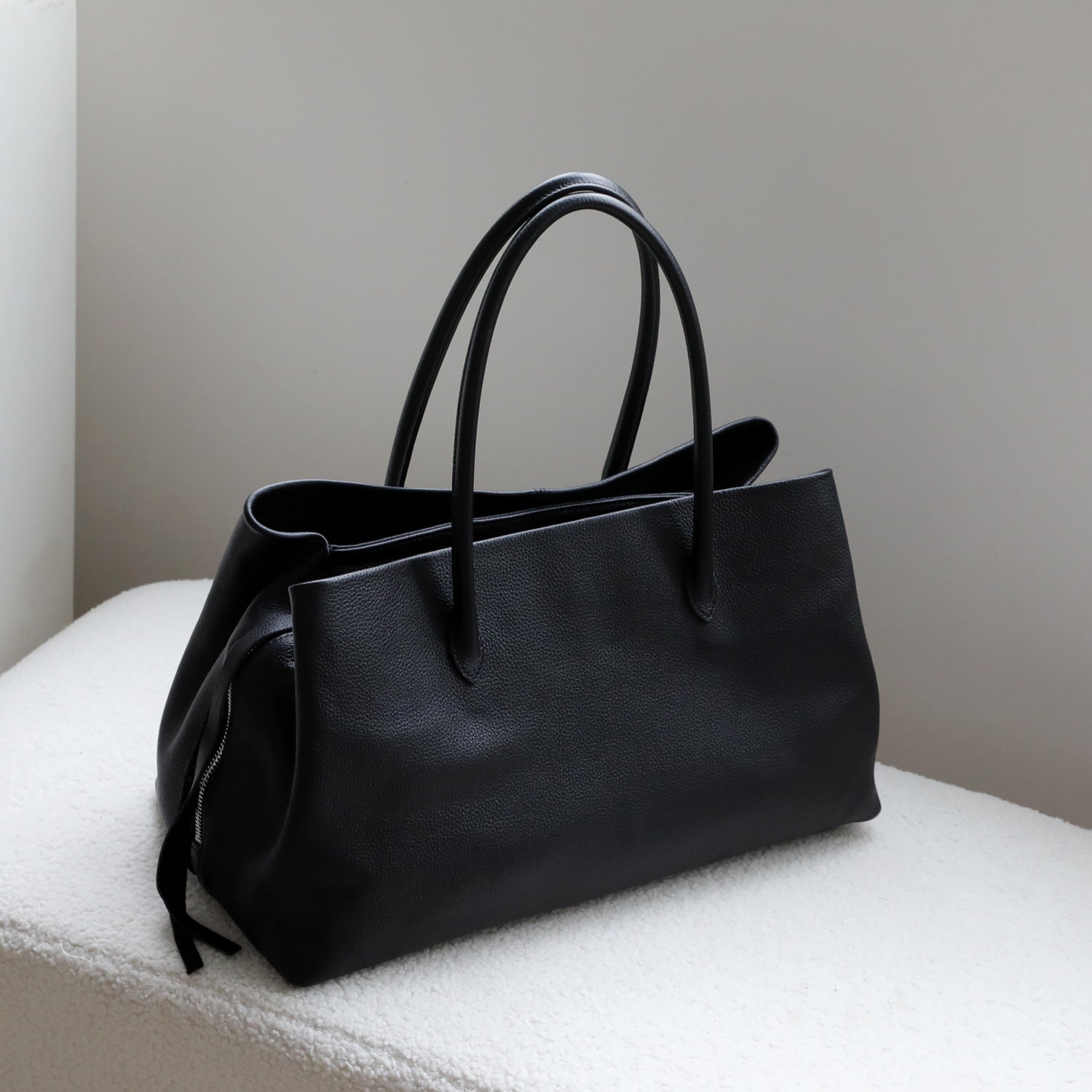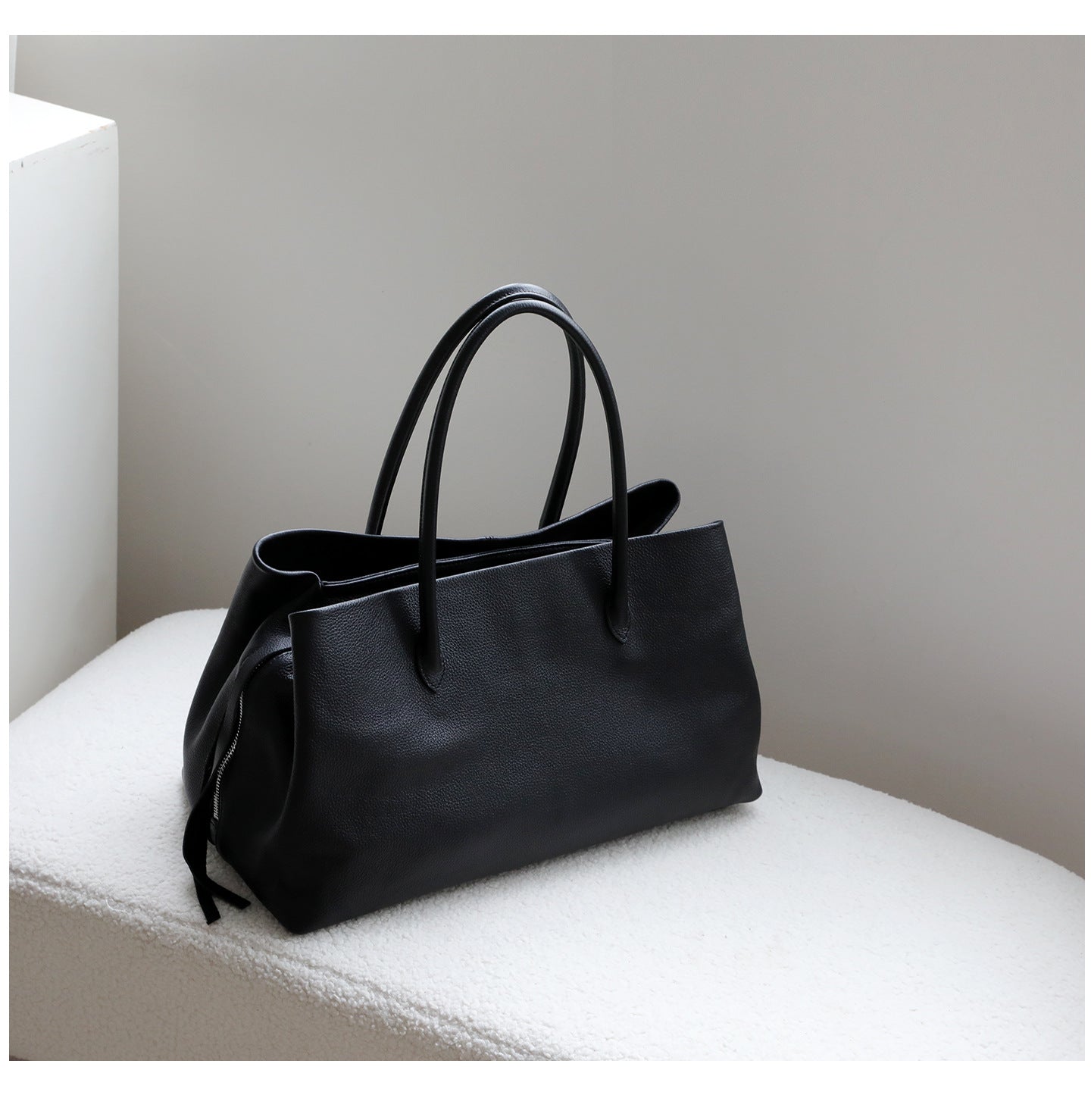 Modern elegance meets practical design in this Spring Top-Grain Cowhide Leather Handbag, a sophisticated everyday carry that balances curated style with useful organisation. Made from premium first-layer cowhide leather with a soft touch and fine stitch detailing, this medium-sized tote features a sleek horizontal silhouette and refined texture that’s perfect for city commuters, weekend errands, or daily matching with feminine and professional looks alike. The secure zipper closure gives you peace of mind, while the thoughtfully designed interior includes multiple pockets — a zippered pocket, a dedicated phone slot, and a card/document pocket — keeping your essentials organised and easily accessible. Its structured yet soft feel makes it comfortable to carry by hand, and the clean minimalist lines complement everything from tailored outfits to casual separates. Available in timeless Matte Almond and Black, this bag is an ideal staple for the modern wardrobe — understated yet elevated.