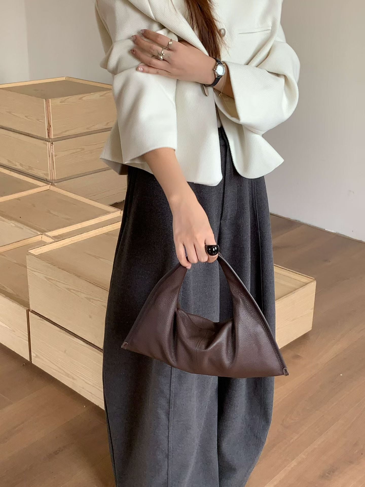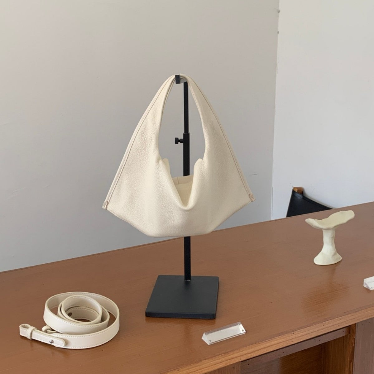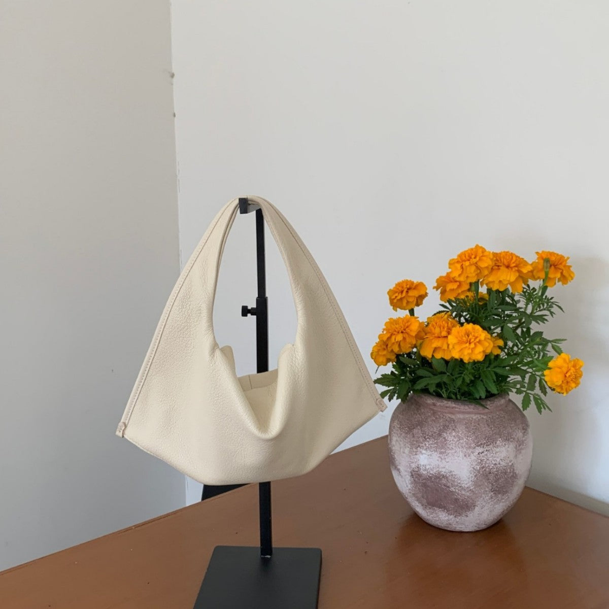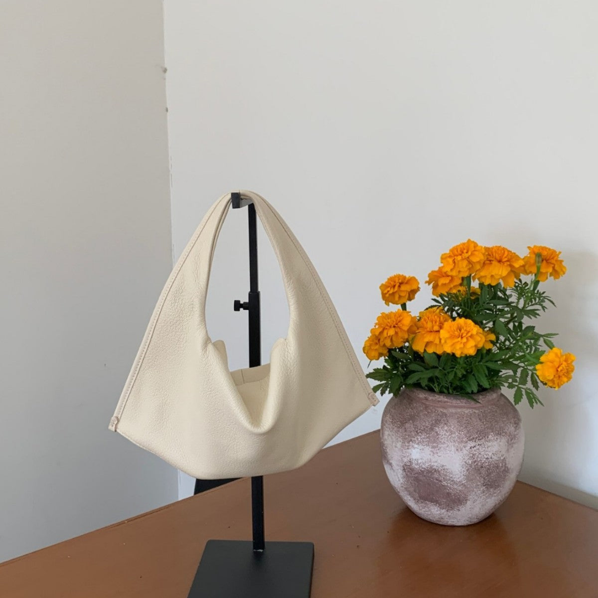 Triangle Leather Tote – Minimalist Medium Soft Shoulder & Crossbody Handbag