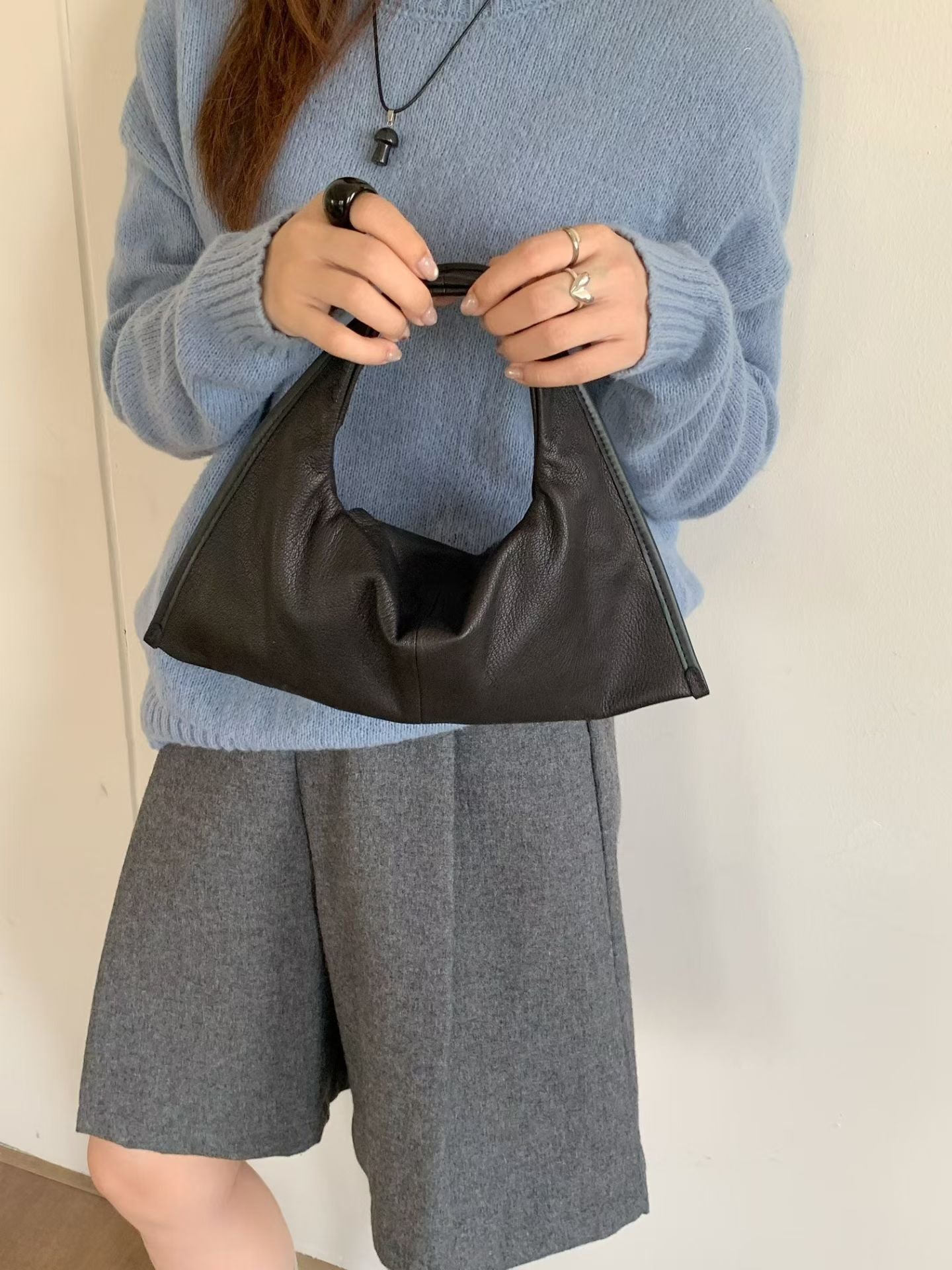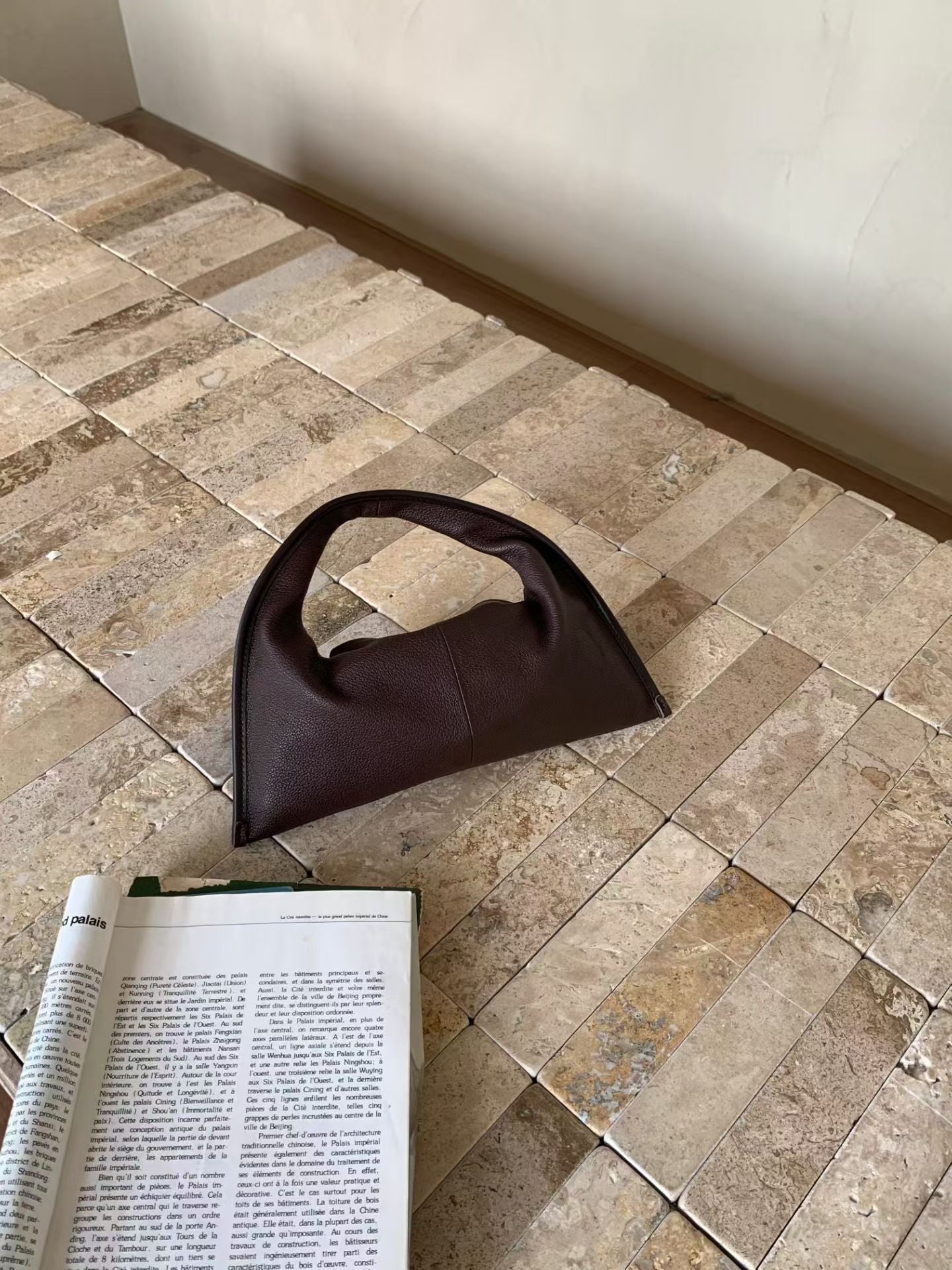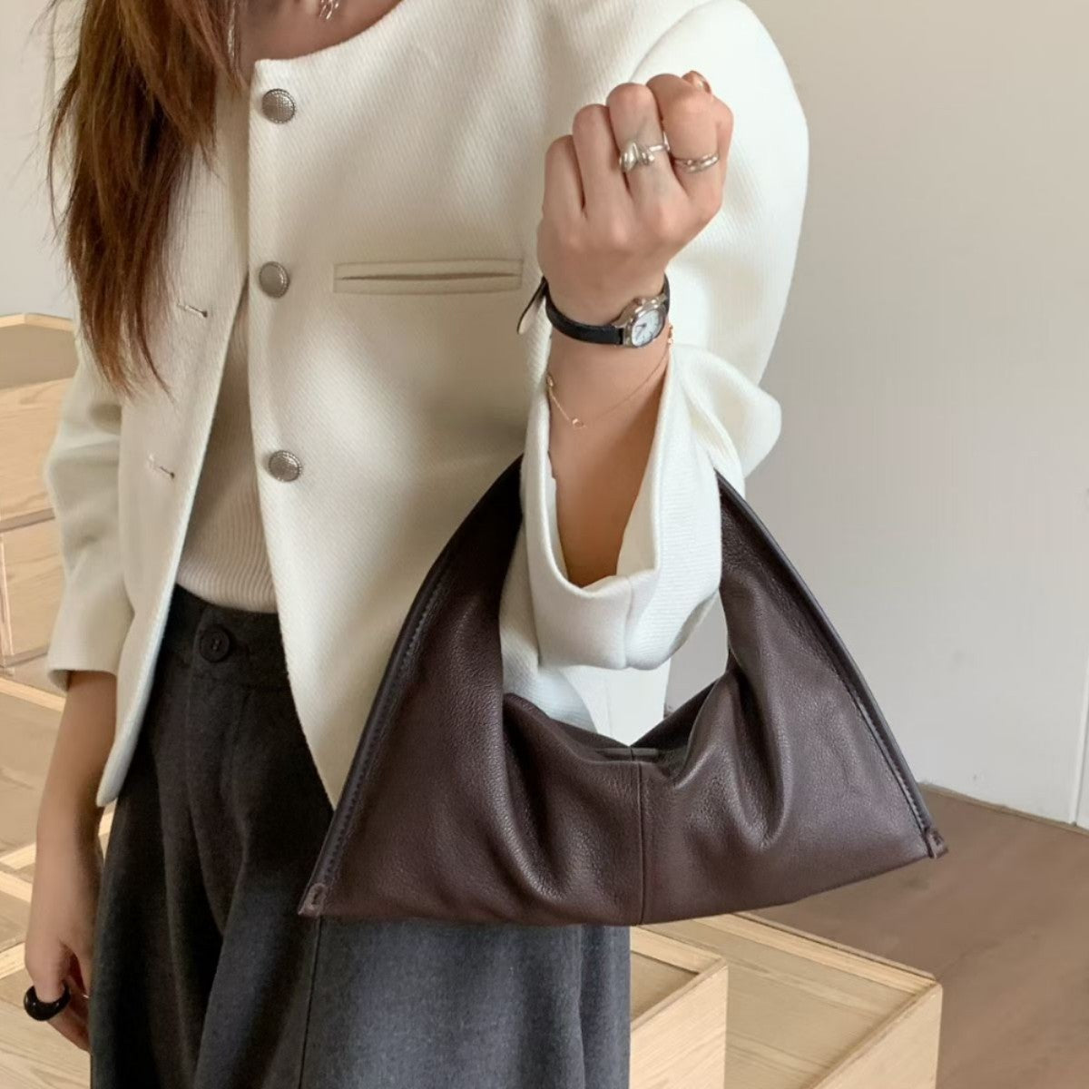 Triangle Leather Tote – Minimalist Medium Soft Shoulder & Crossbody Handbag