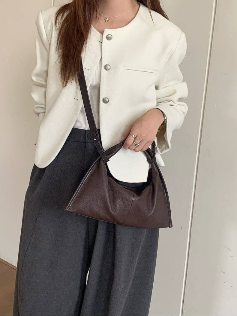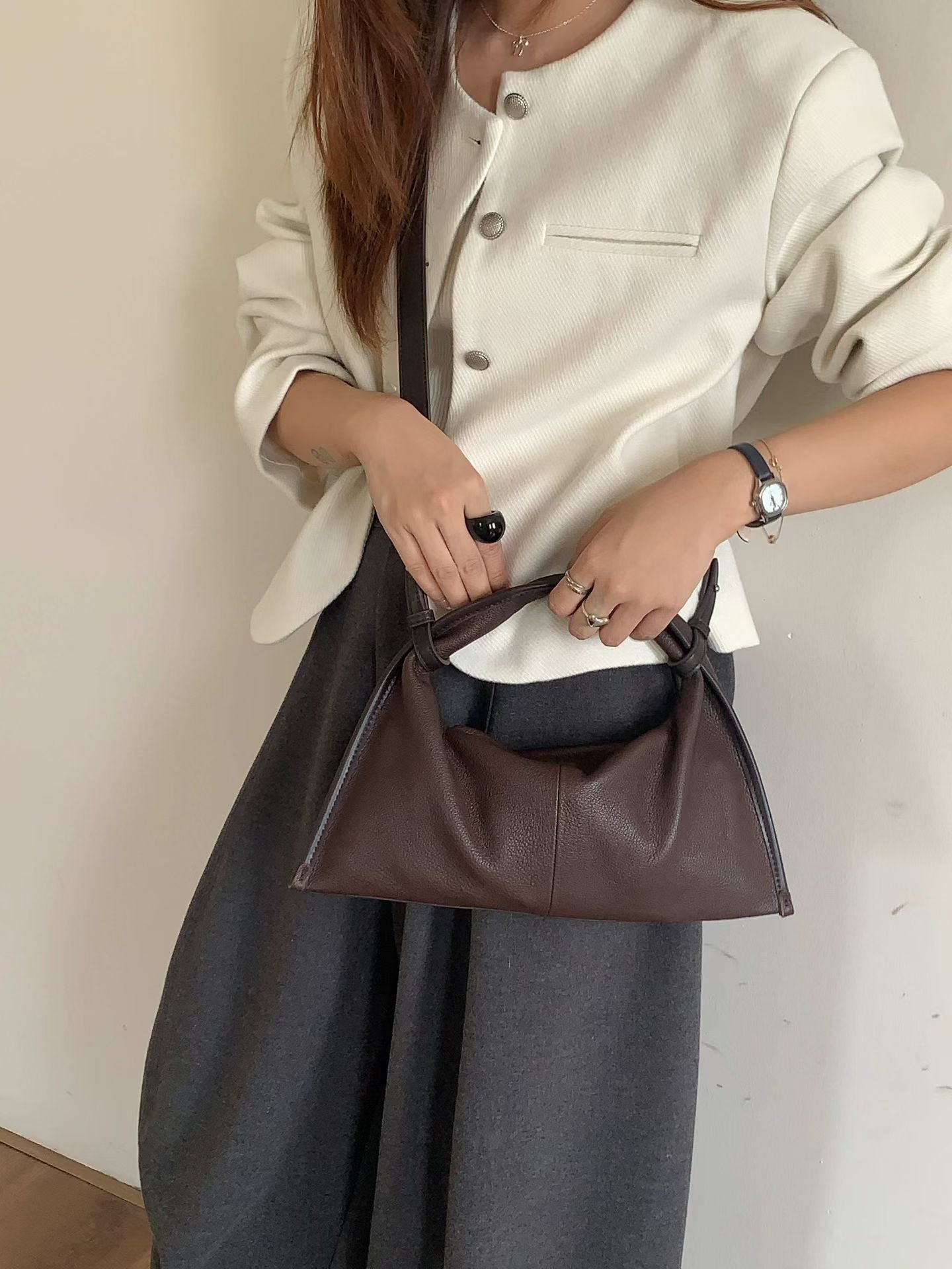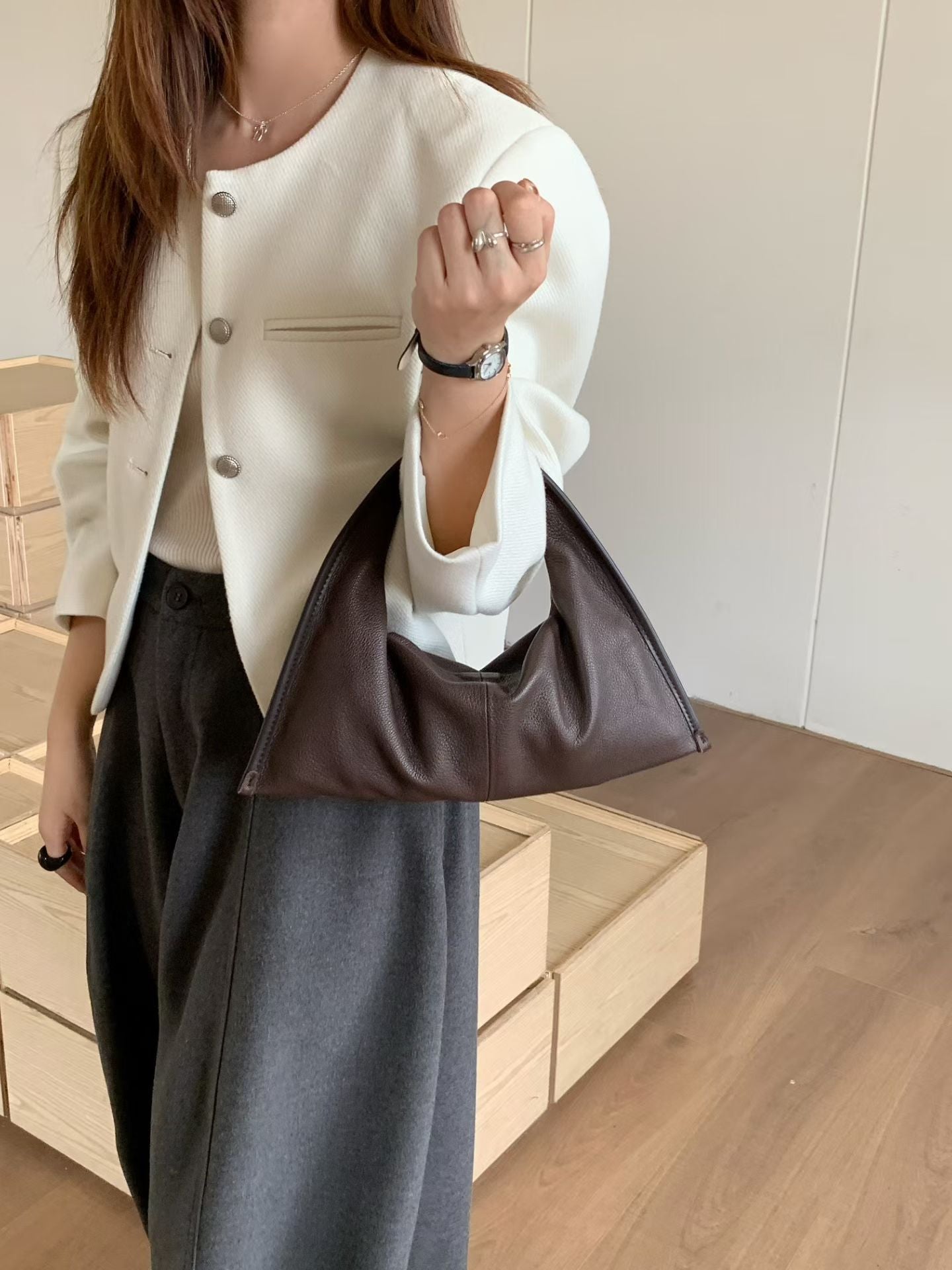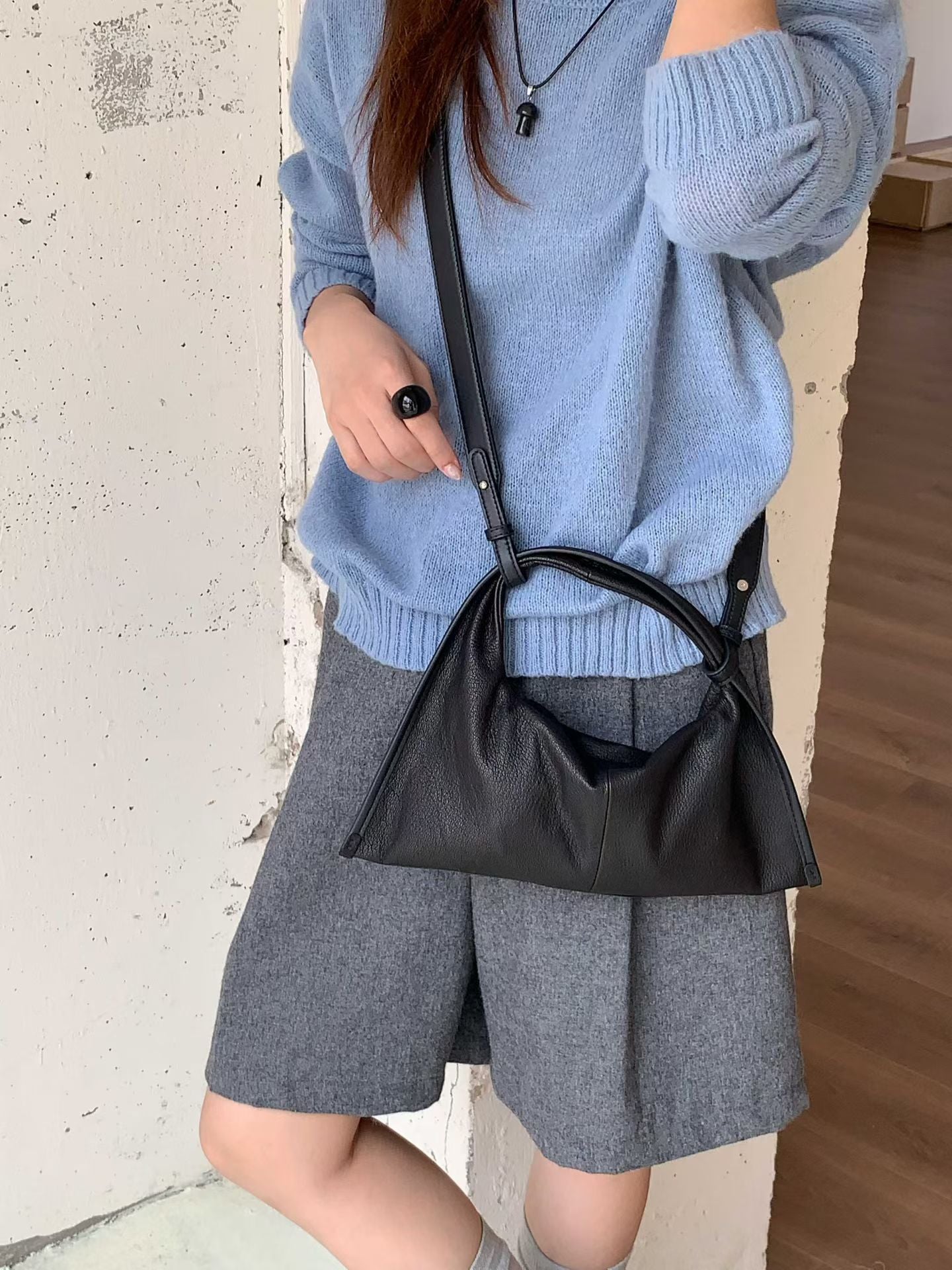 Triangle Leather Tote – Minimalist Medium Soft Shoulder & Crossbody Handbag
