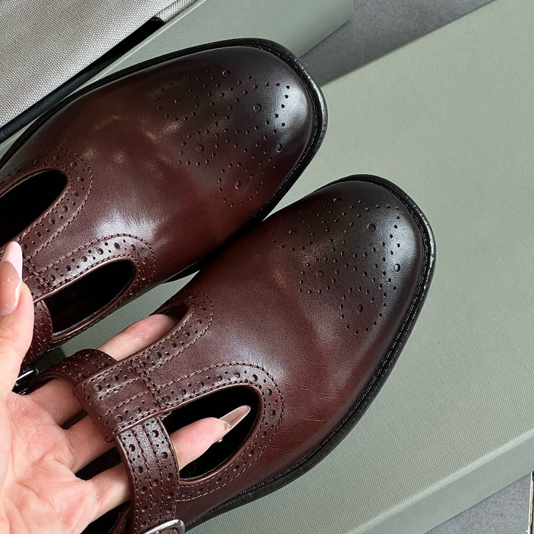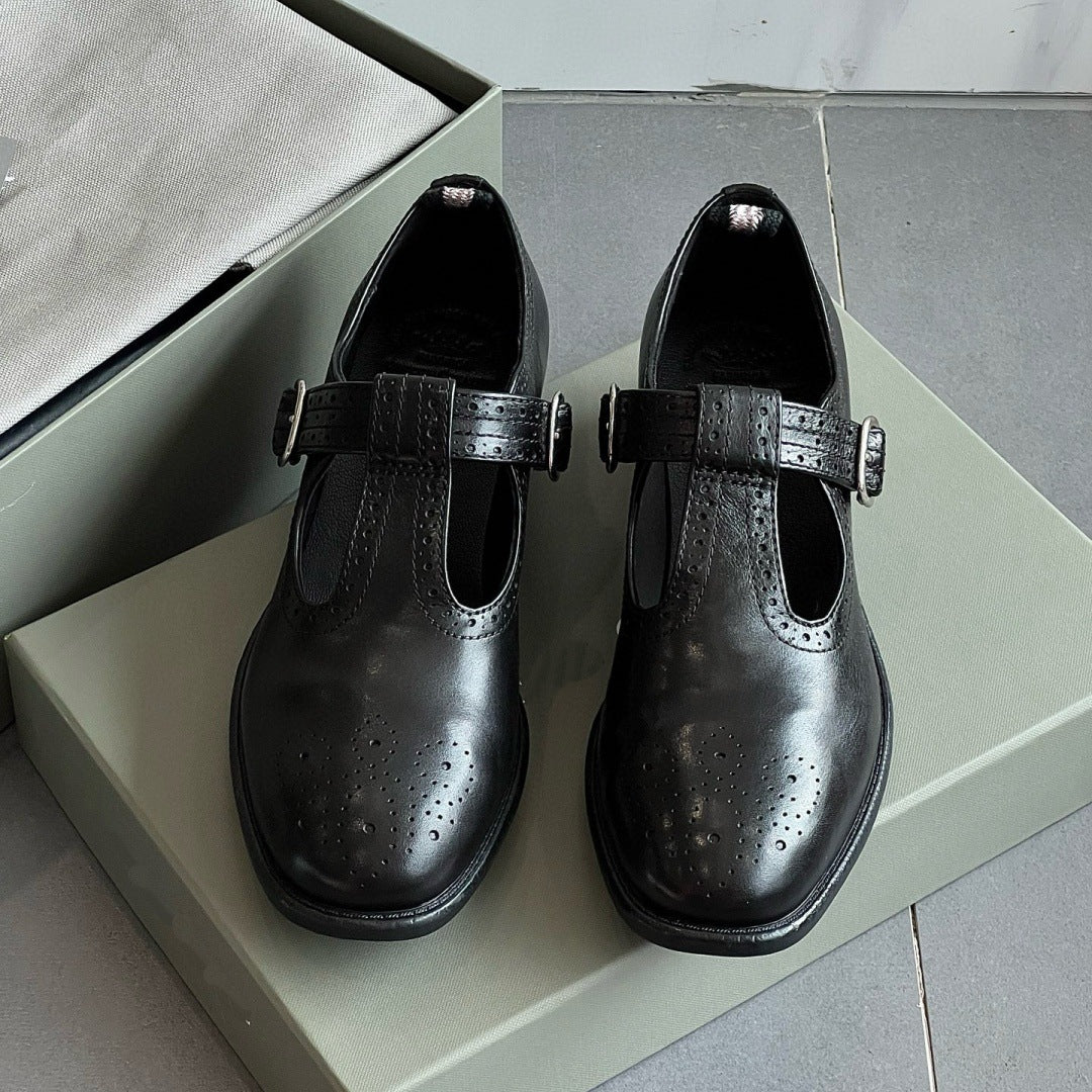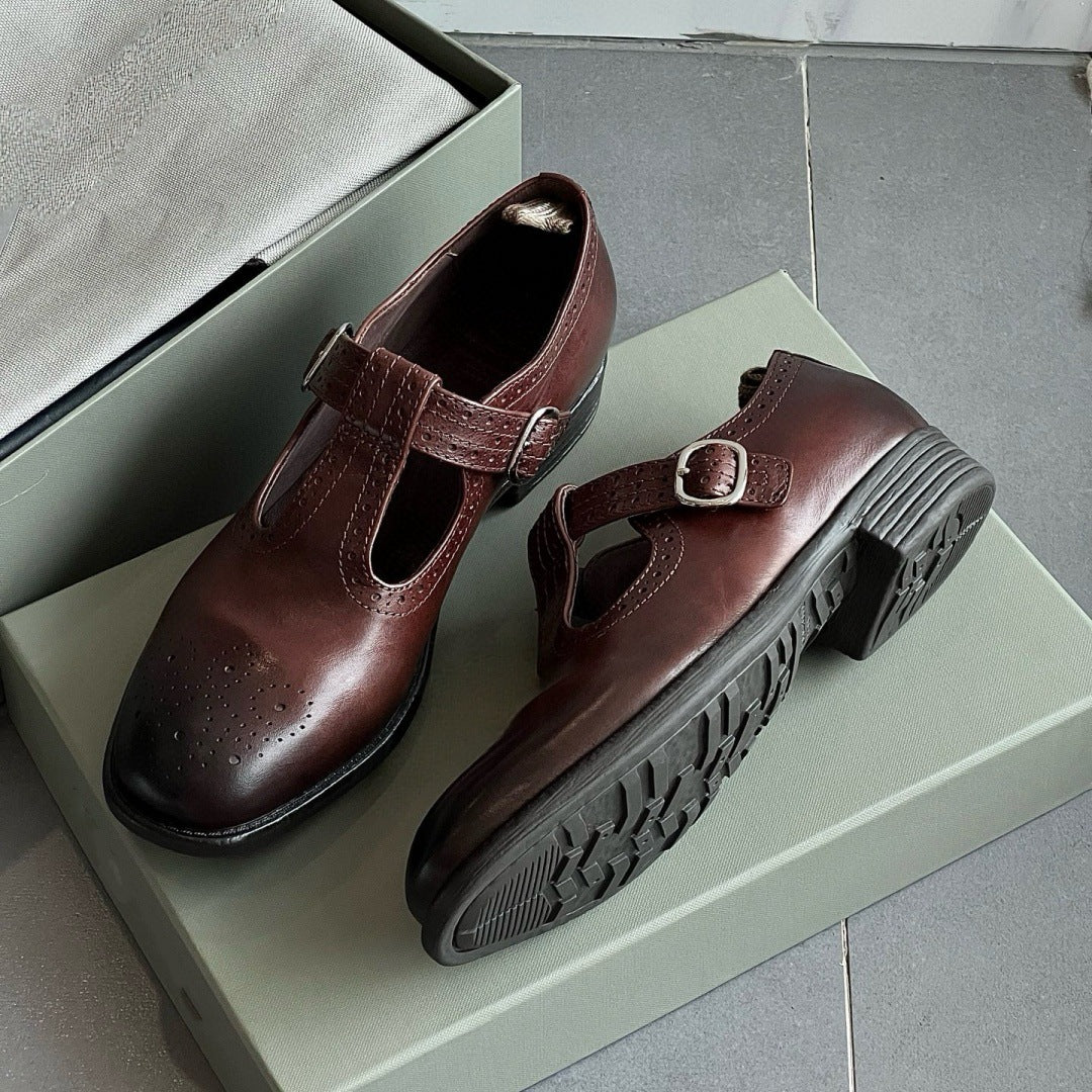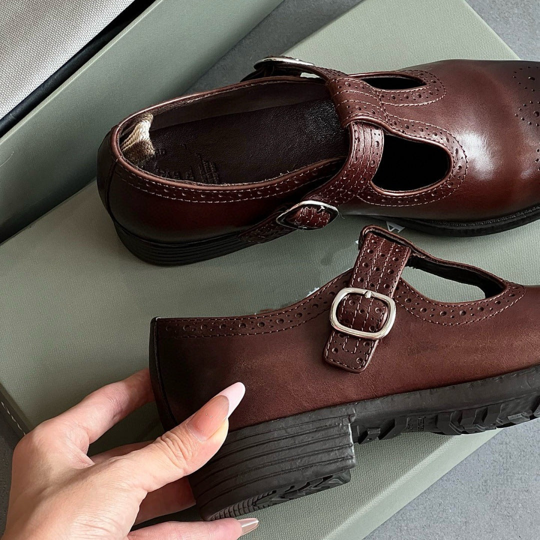 British-Style T-Strap Mary Jane High-Heel Shoes – Retro Brogue Women’s Heels