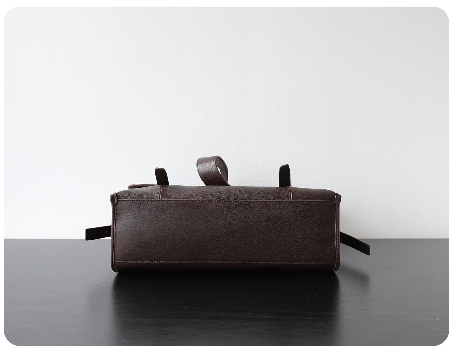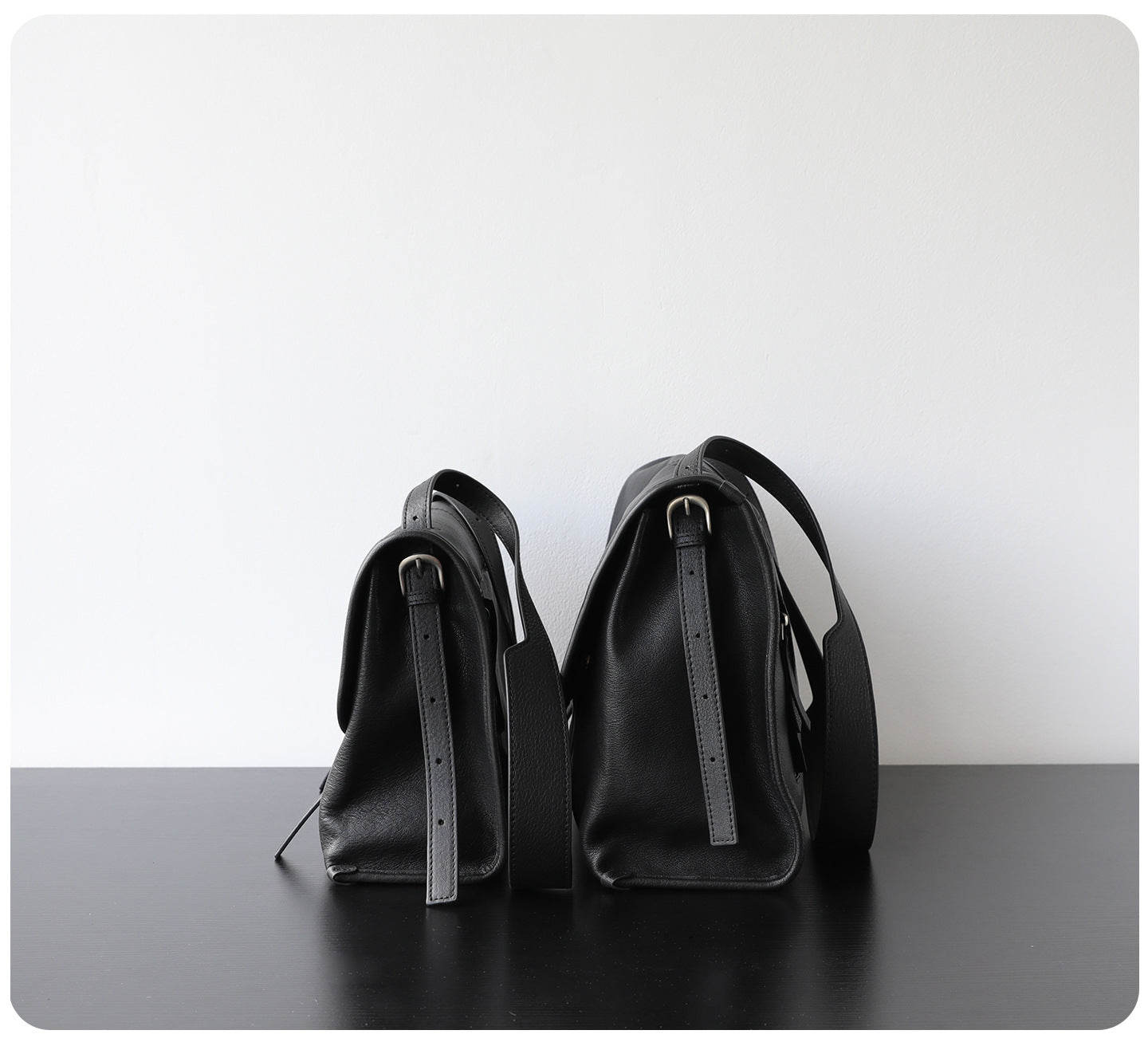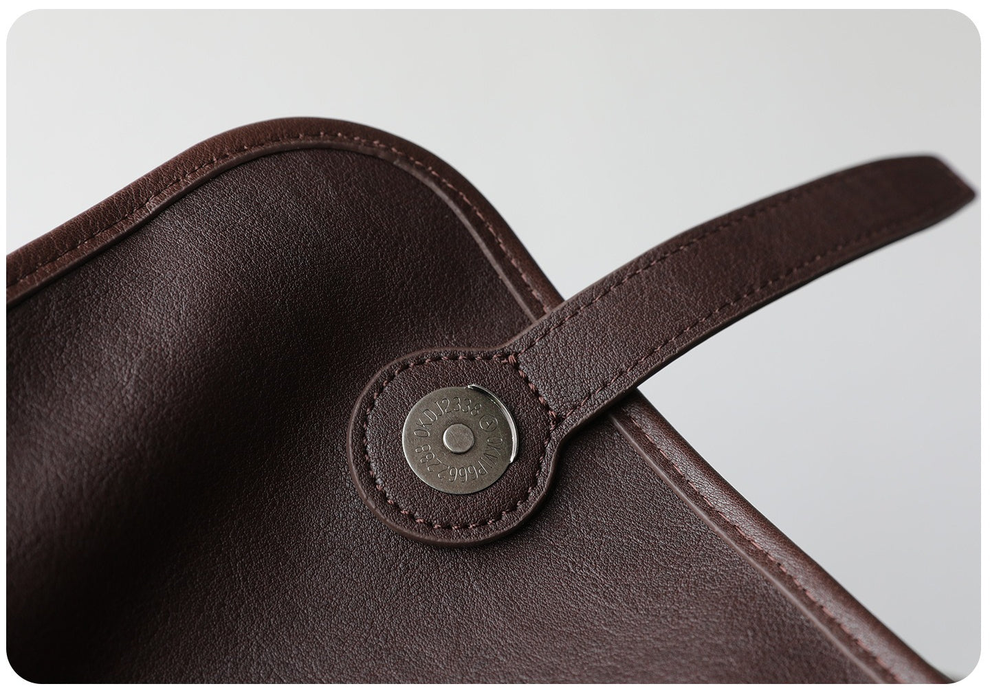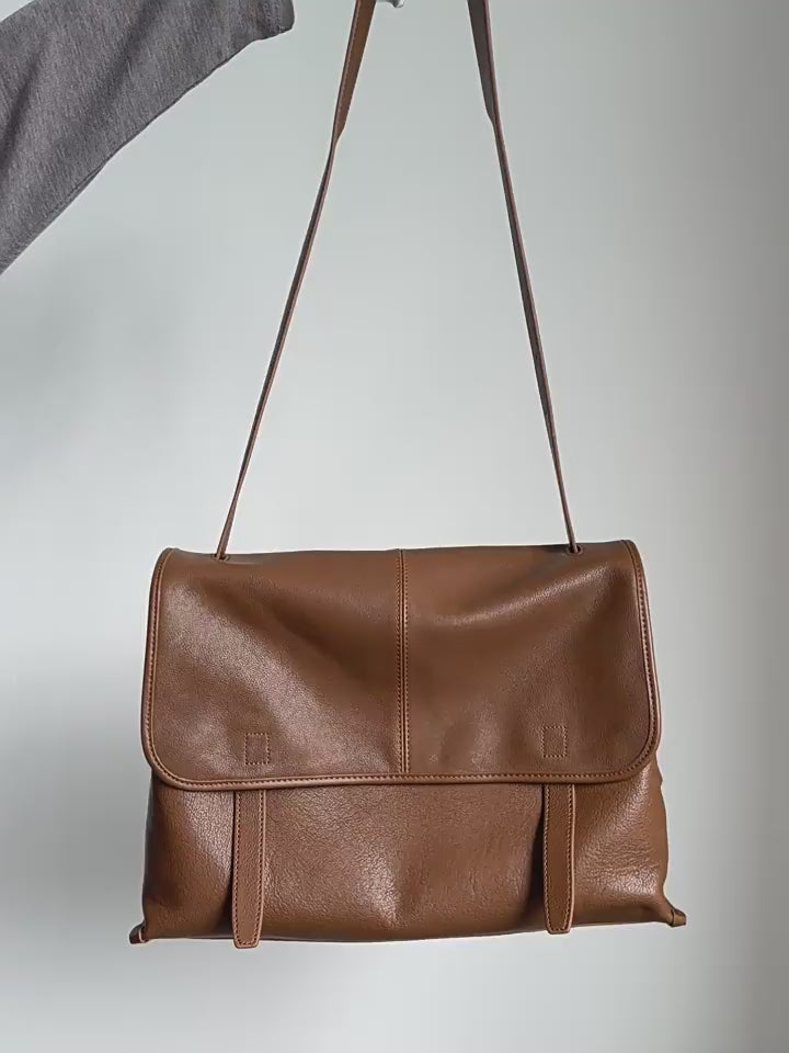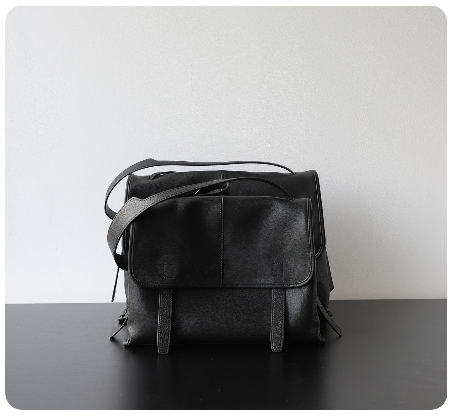 Introduce a timeless and durable companion to your everyday wardrobe with this 2025 Fall Vegetable-Tanned Cowhide Messenger Bag. Crafted from vegetable-tanned cowhide leather, this bag features a soft, relaxed feel that evolves into a rich patina with daily use — a signature quality of traditional vegetable-tanned leather prized for its durability, natural aromas, and character that deepens over time. Designed in a horizontal square messenger silhouette, this large-size bag offers generous capacity for daily essentials, commute gear, or travel necessities. It secures with a refined magnetic buckle closure and opens to an organised interior with both a zipper-concealed pocket and an ID/card slot, keeping your valuables neatly arranged. This minimalist leather piece showcases understated stitching detail and a single shoulder strap for easy, comfortable carry — perfect for daily matching, casual use, or work-to-weekend styling. Available in classic Brown, Coffee, and Black tones, it pairs beautifully with urban casual or smart everyday outfits.