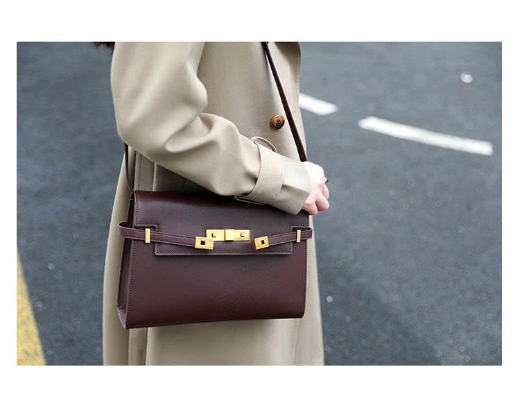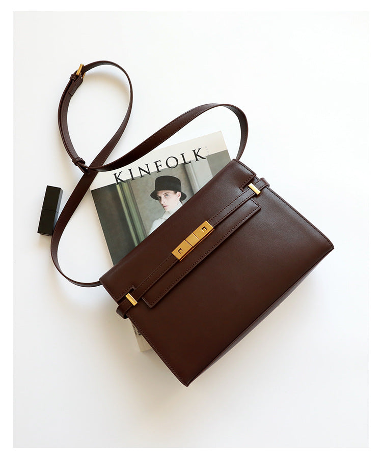 Crafted with quality genuine leather (two-layer cowhide) and featuring a classic horizontal square silhouette, this Yangshu Lin Manhattan-style shoulder bag combines timeless elegance with everyday practicality. Designed for daily casual outfits and city streetwear, it offers a refined look with a structured frame and smooth leather finish. The bag opens with a front flap closure and includes a magnetic buckle for secure yet effortless access, while inside you’ll find a zippered concealed pocket to keep essentials organised. With its medium hardness and thoughtful proportions (approx. 29 cm width × 8 cm depth × 20 cm height), it’s perfectly sized to hold daily necessities without feeling bulky. Complete with an adjustable shoulder strap, this fashion-forward bag pairs beautifully with both relaxed and polished looks, making it an ideal choice for the modern woman seeking understated style and lasting quality.