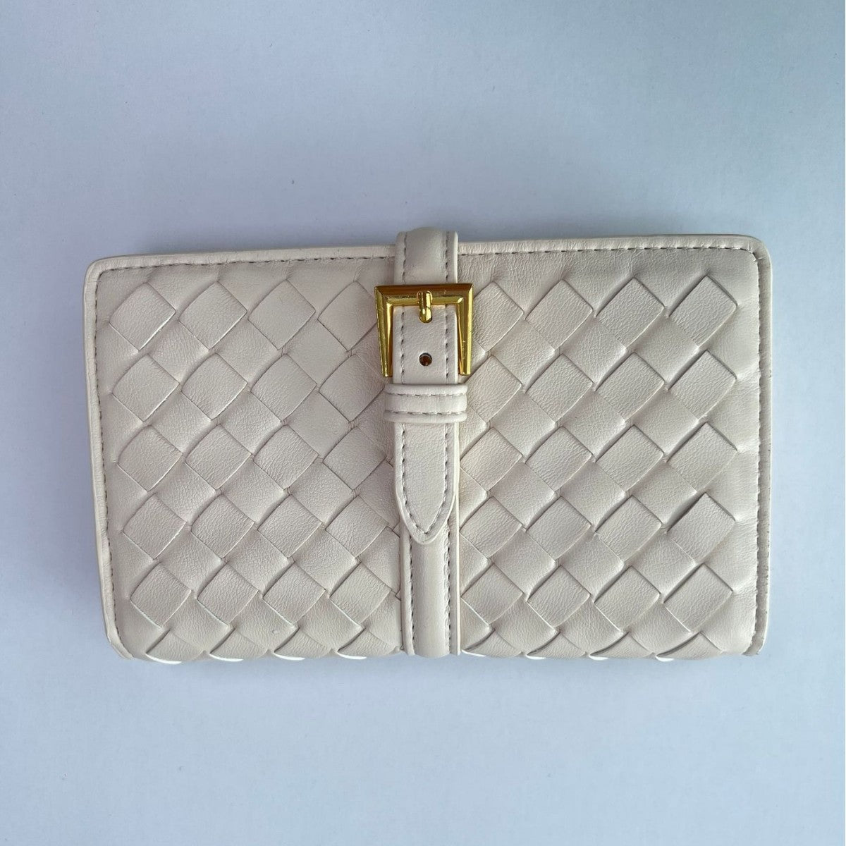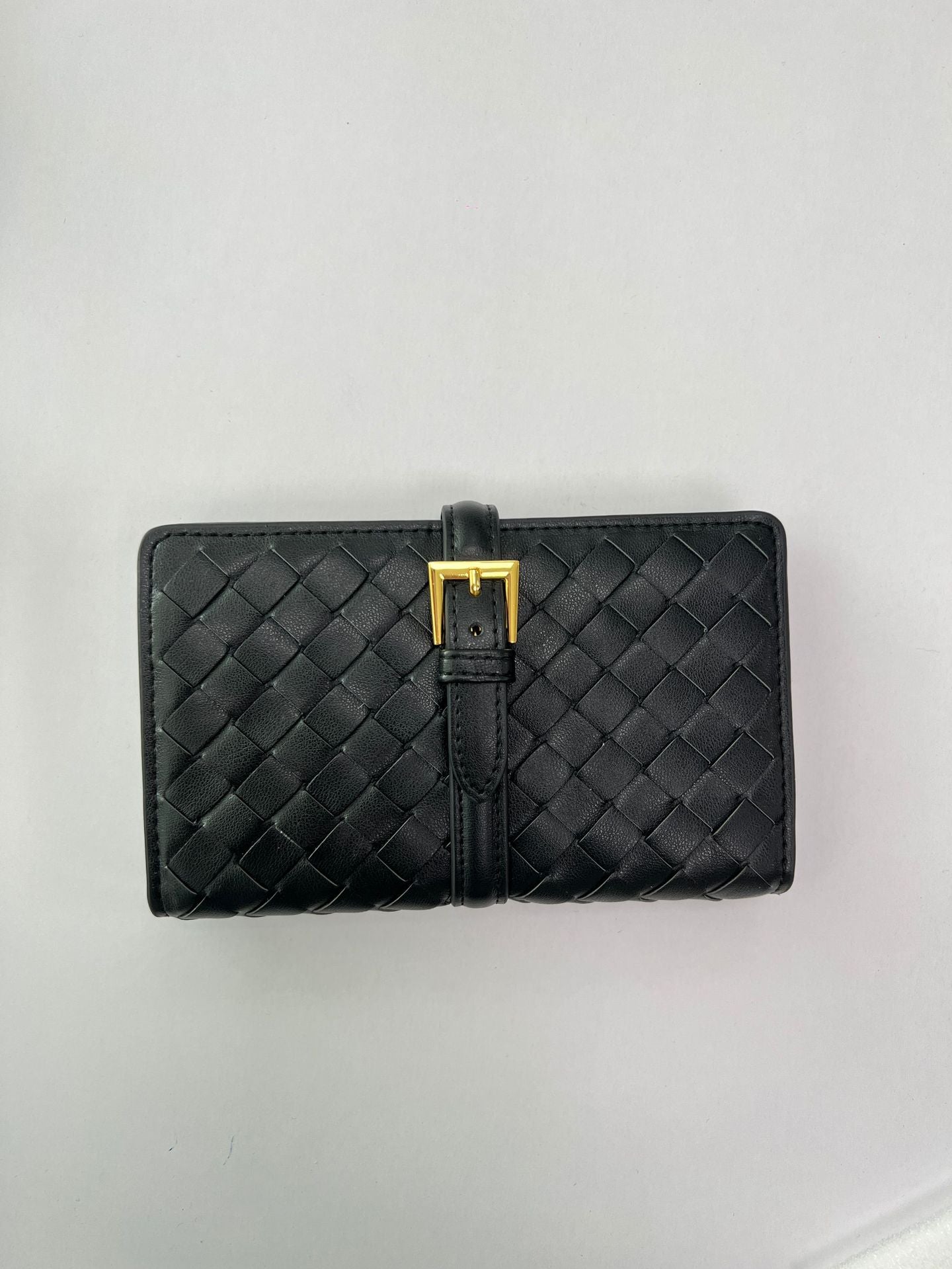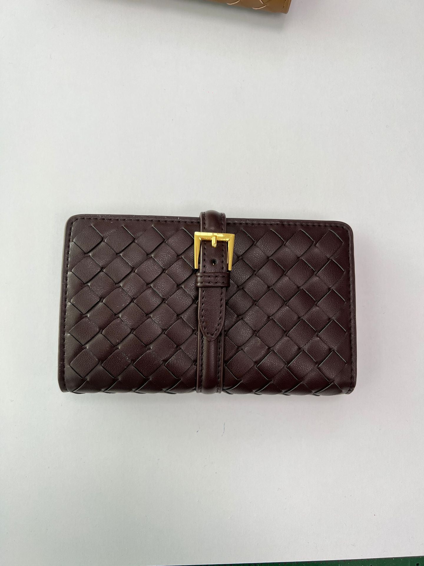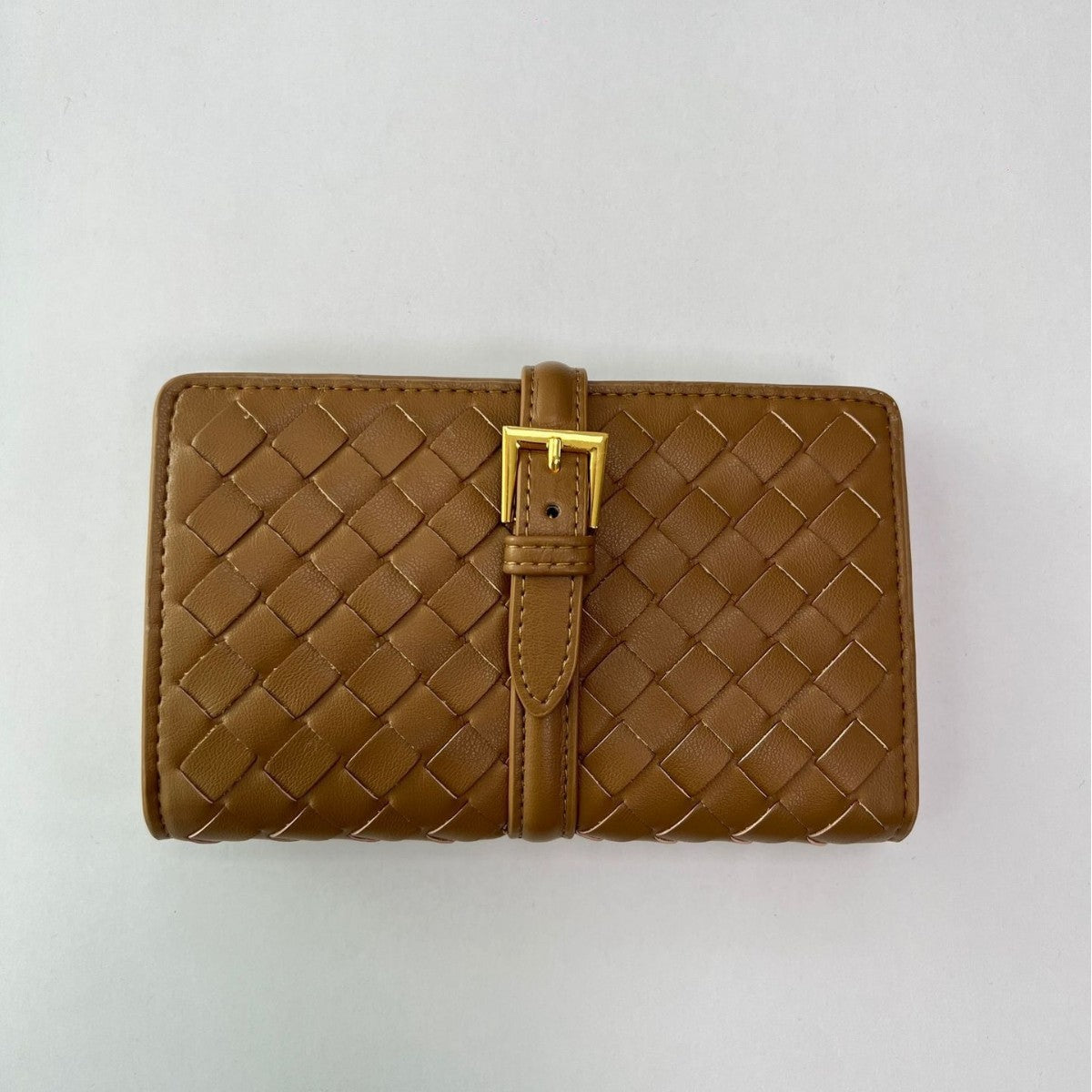 Material: Woven weave (could be leather or woven fabric) | Lining: Matching woven / textile | Closure: Foldover two-fold design