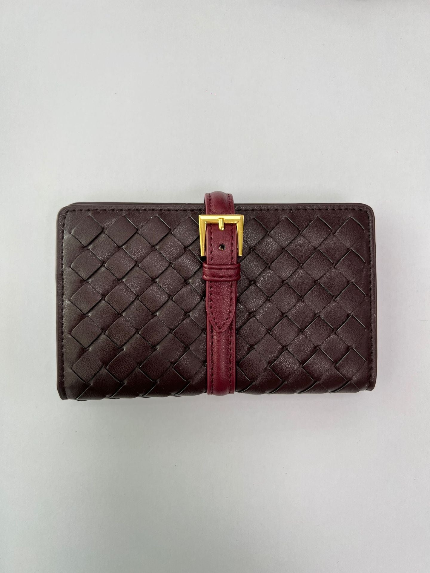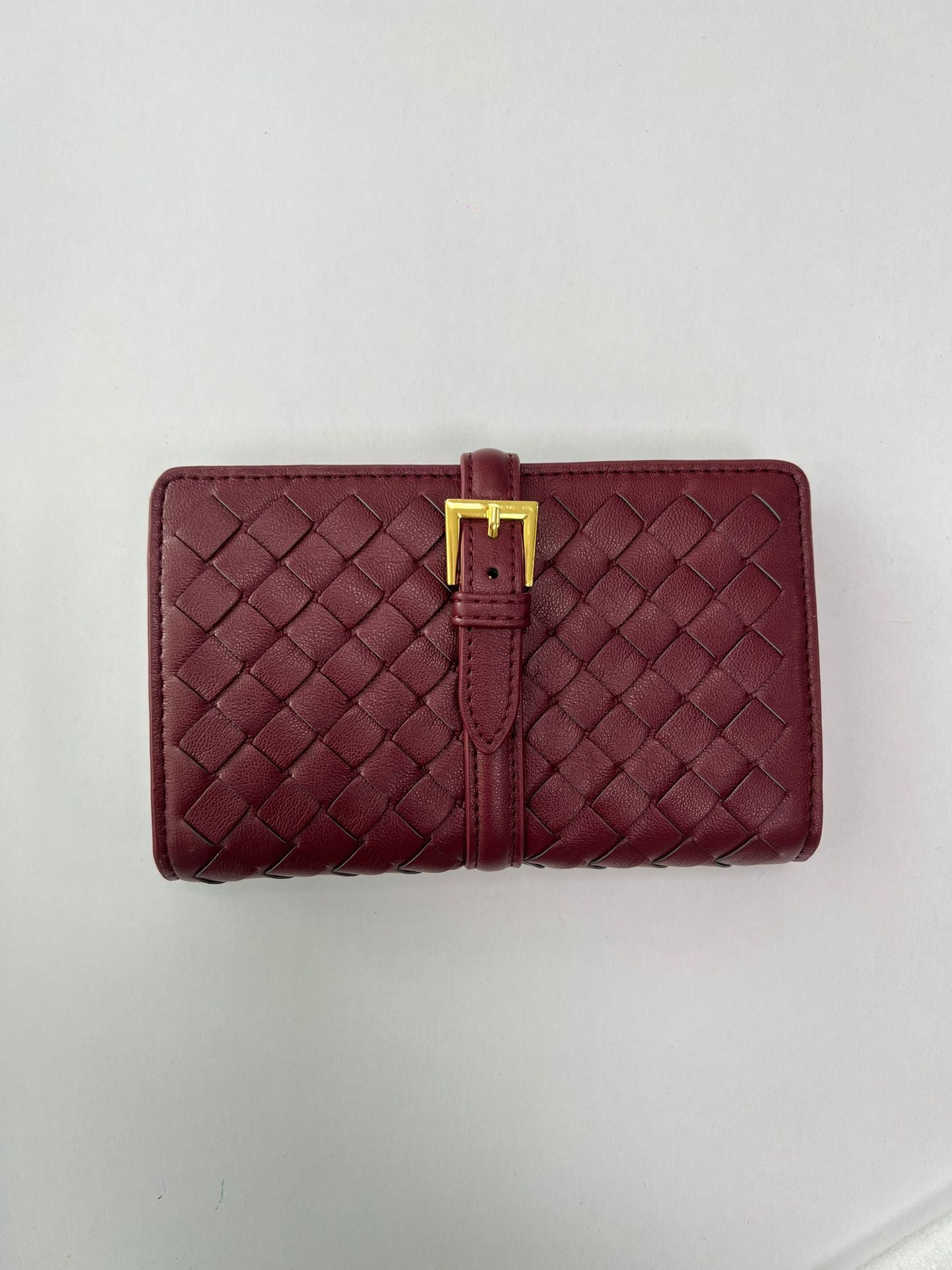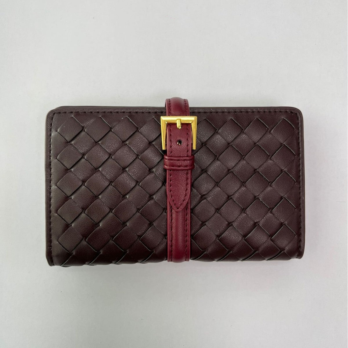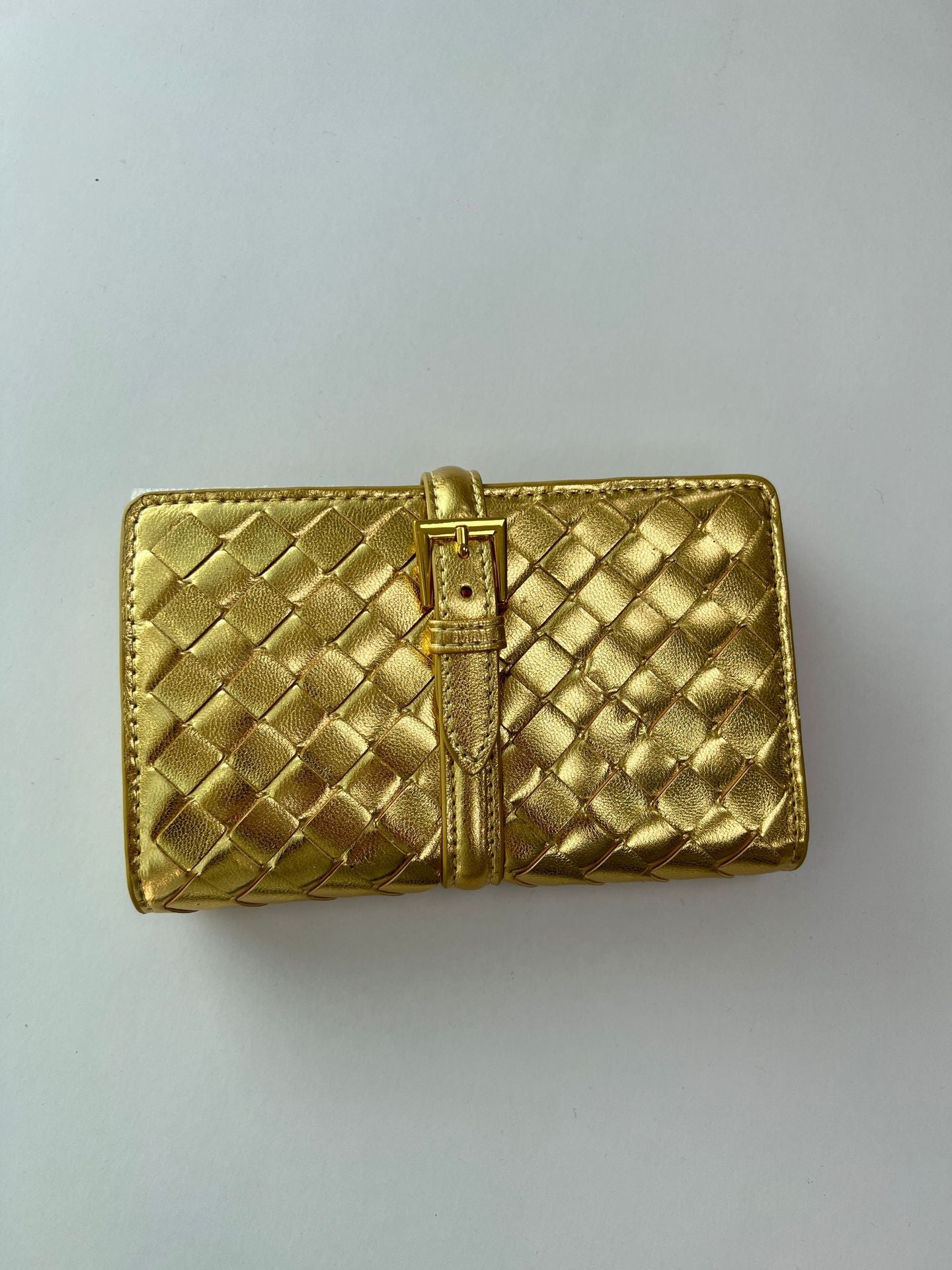 Material: Woven weave (could be leather or woven fabric) | Lining: Matching woven / textile | Closure: Foldover two-fold design