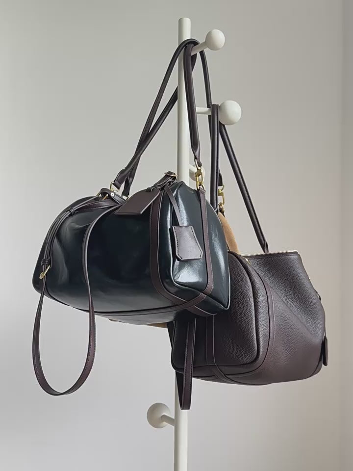 Large Genuine Cowhide Boston Pillow Bag – Spacious Leather Handbag for Women