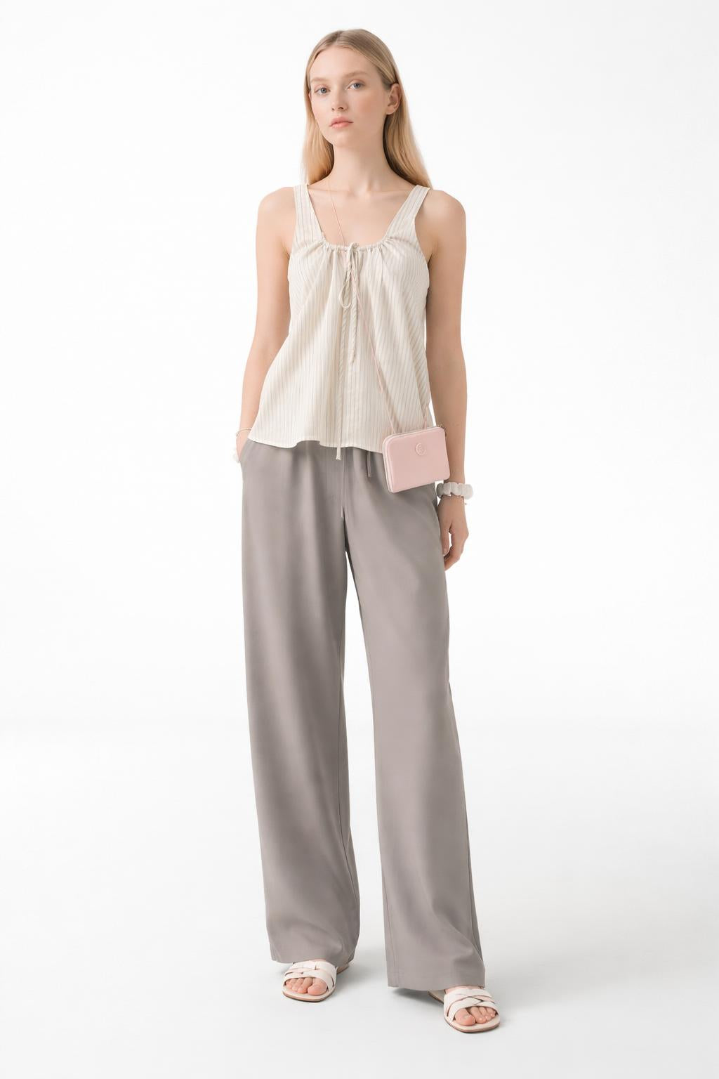 From Smoothmood’s Summer 2025 capsule, this suspender vest channels effortless Seoul-girl energy. With delicate lace trim, a flattering ruched drawstring bust, and soft self-cultivating tailoring, it’s made for layering or solo styling. Available in classic striped or plaid patterns for a subtly sexy, wearable statement.