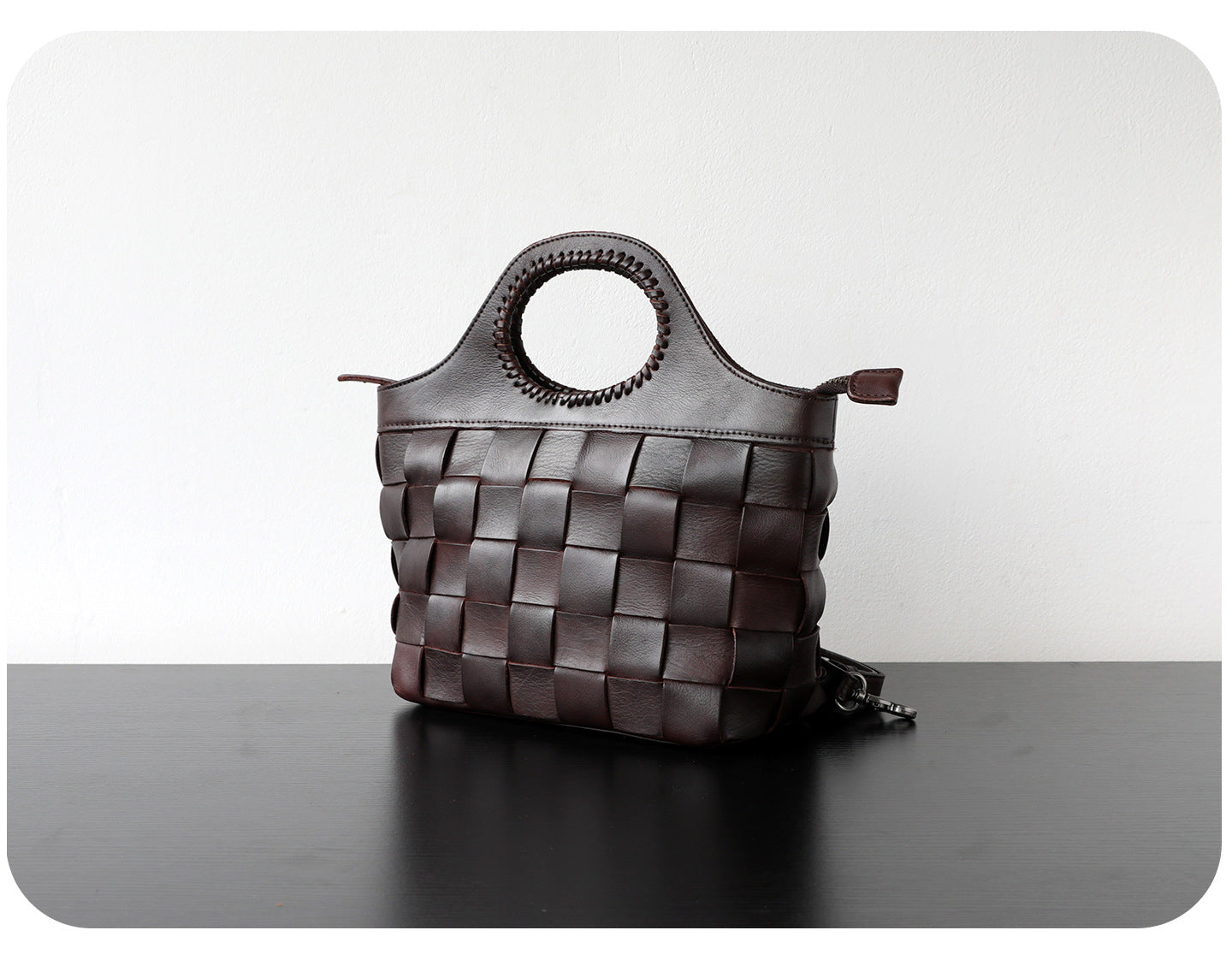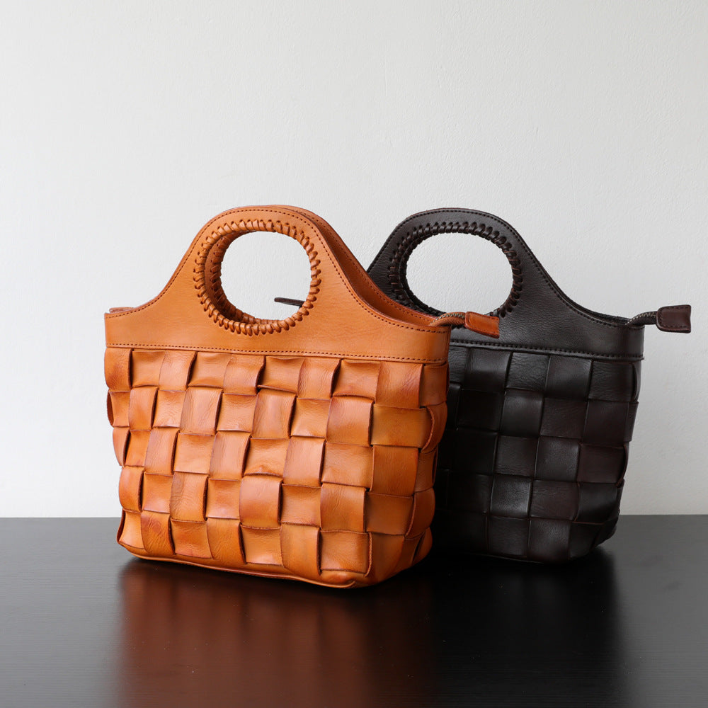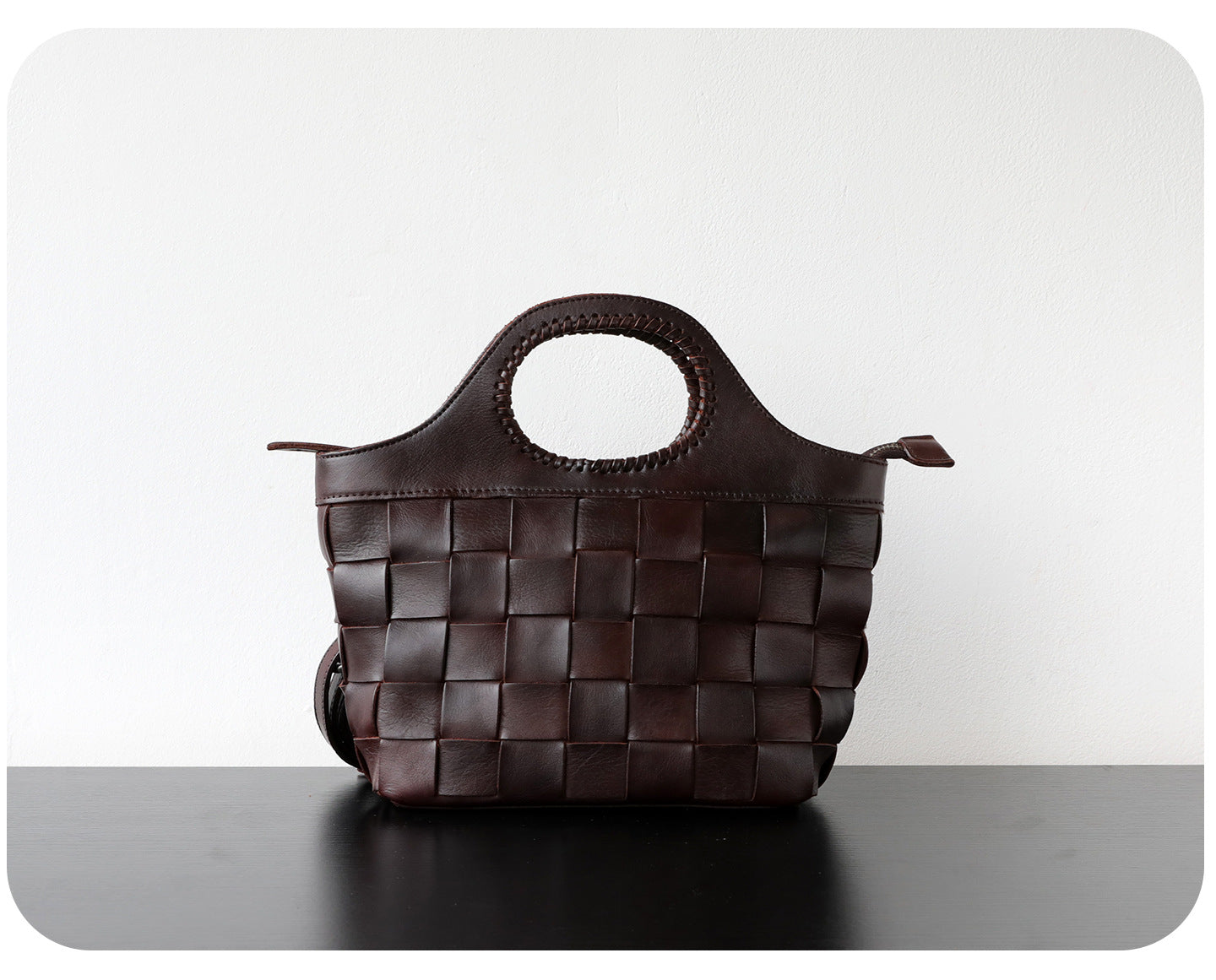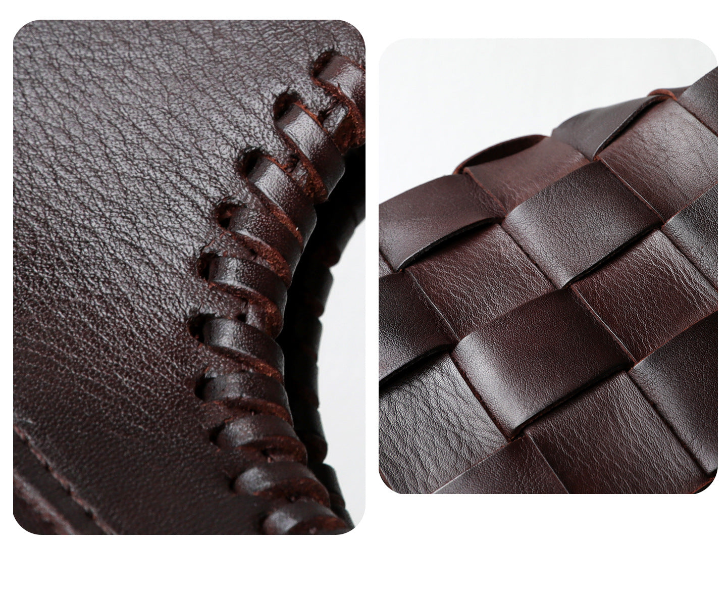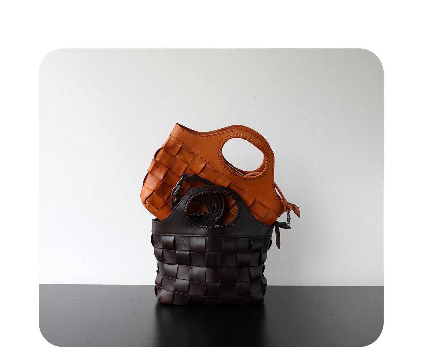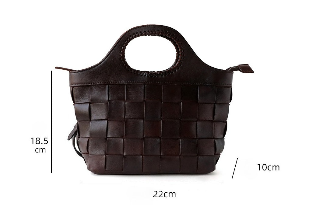 Crafted from premium first-layer cowhide and finished with intricate hand-woven detailing, this Woven Leather Basket Bag blends timeless craftsmanship with minimalist urban flair. This medium-sized tote boasts a structured horizontal silhouette with a soft yet durable feel, making it an ideal choice for everyday use. Designed for versatility, it can be worn handheld, over the shoulder, or crossbody thanks to its adjustable strap (up to 115 cm). The secure zip closure opens to a practical interior lined in soft polyester-cotton, complete with one insert pocket and one zippered compartment to keep essentials organised. Despite its compact appearance, the bag comfortably fits a phone, iPad, umbrella, power bank, and daily makeup items. Available in rich brown or coffee tones, this commuter-friendly piece is a standout addition to any wardrobe - perfect for those who appreciate understated Korean-inspired design with a touch of slow-fashion elegance.