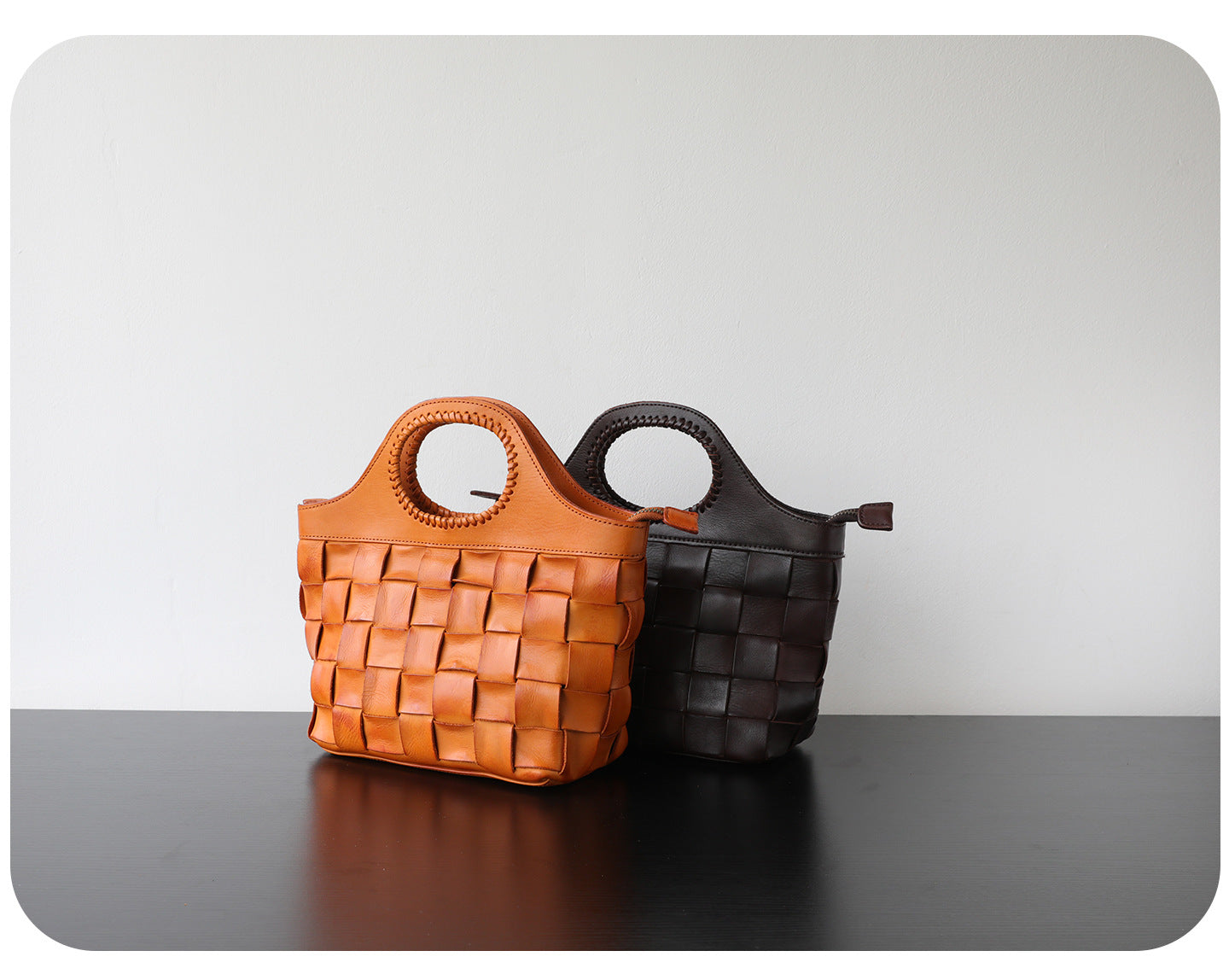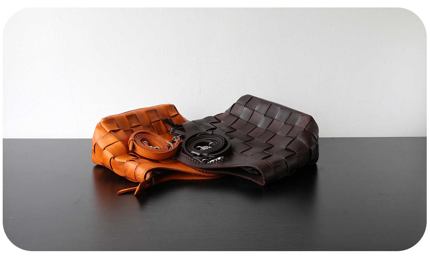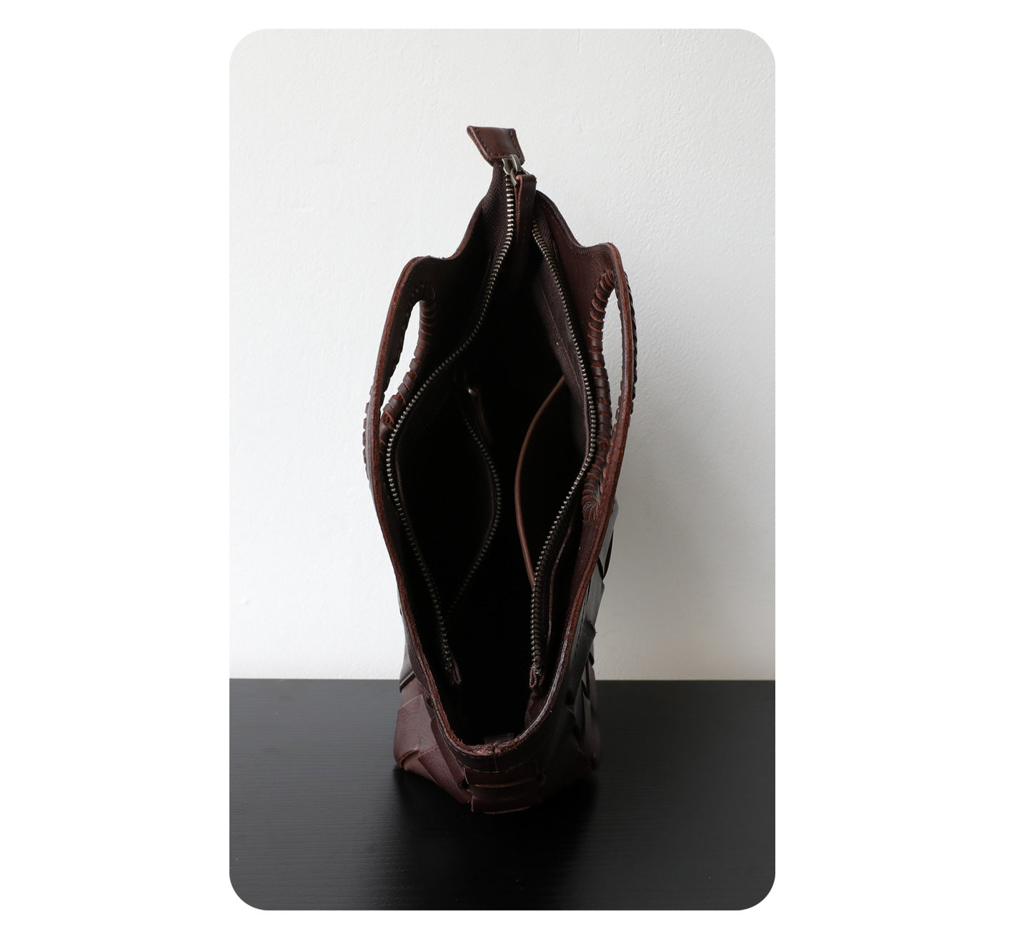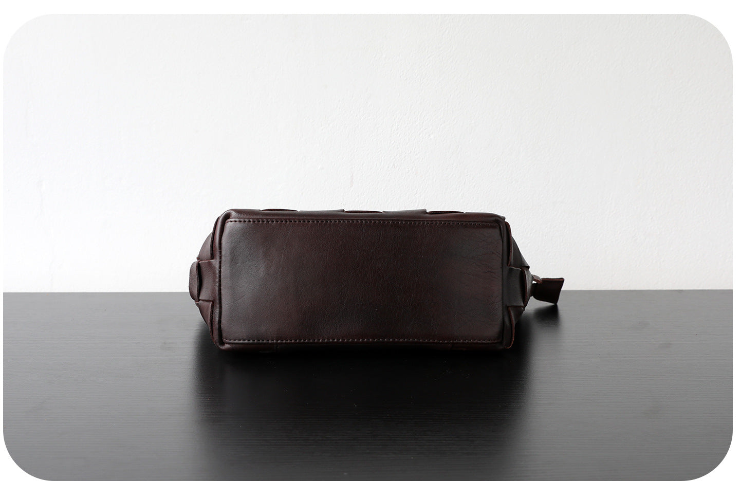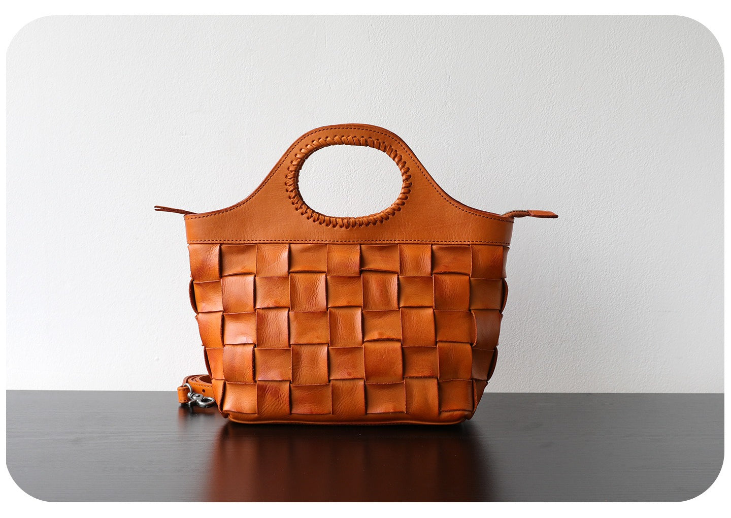 Crafted from premium first-layer cowhide and finished with intricate hand-woven detailing, this Woven Leather Basket Bag blends timeless craftsmanship with minimalist urban flair. This medium-sized tote boasts a structured horizontal silhouette with a soft yet durable feel, making it an ideal choice for everyday use. Designed for versatility, it can be worn handheld, over the shoulder, or crossbody thanks to its adjustable strap (up to 115 cm). The secure zip closure opens to a practical interior lined in soft polyester-cotton, complete with one insert pocket and one zippered compartment to keep essentials organised. Despite its compact appearance, the bag comfortably fits a phone, iPad, umbrella, power bank, and daily makeup items. Available in rich brown or coffee tones, this commuter-friendly piece is a standout addition to any wardrobe - perfect for those who appreciate understated Korean-inspired design with a touch of slow-fashion elegance.