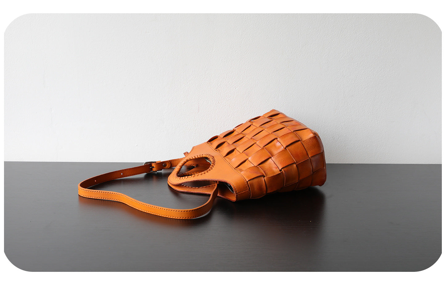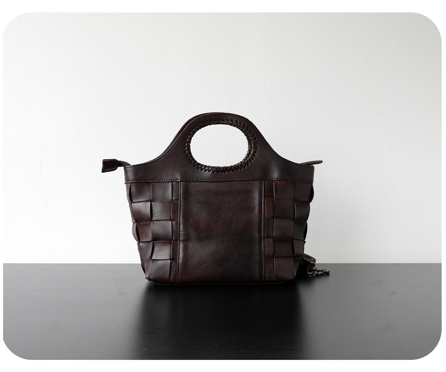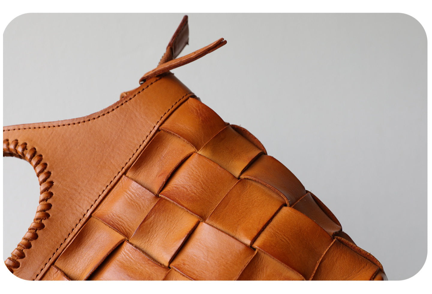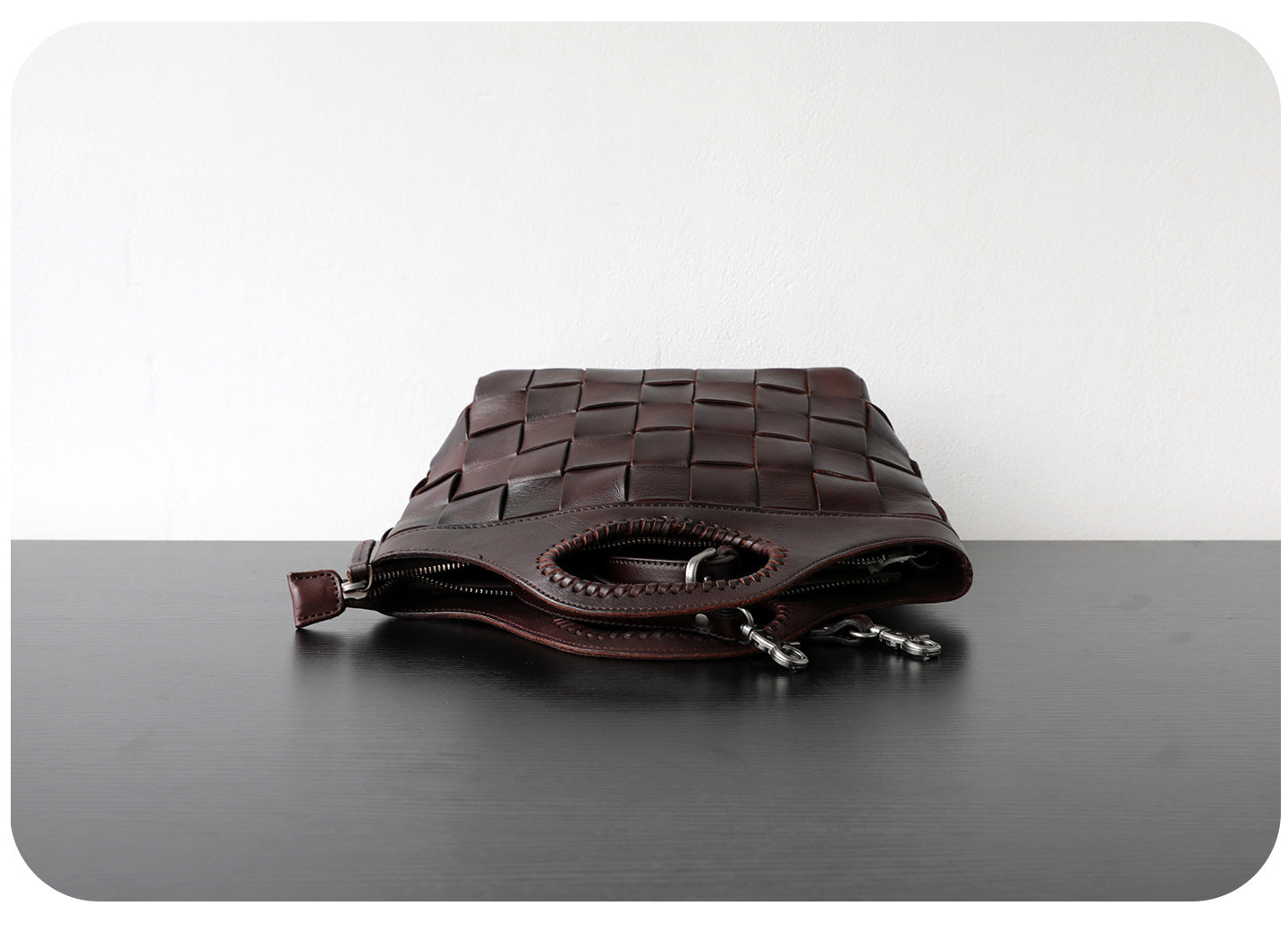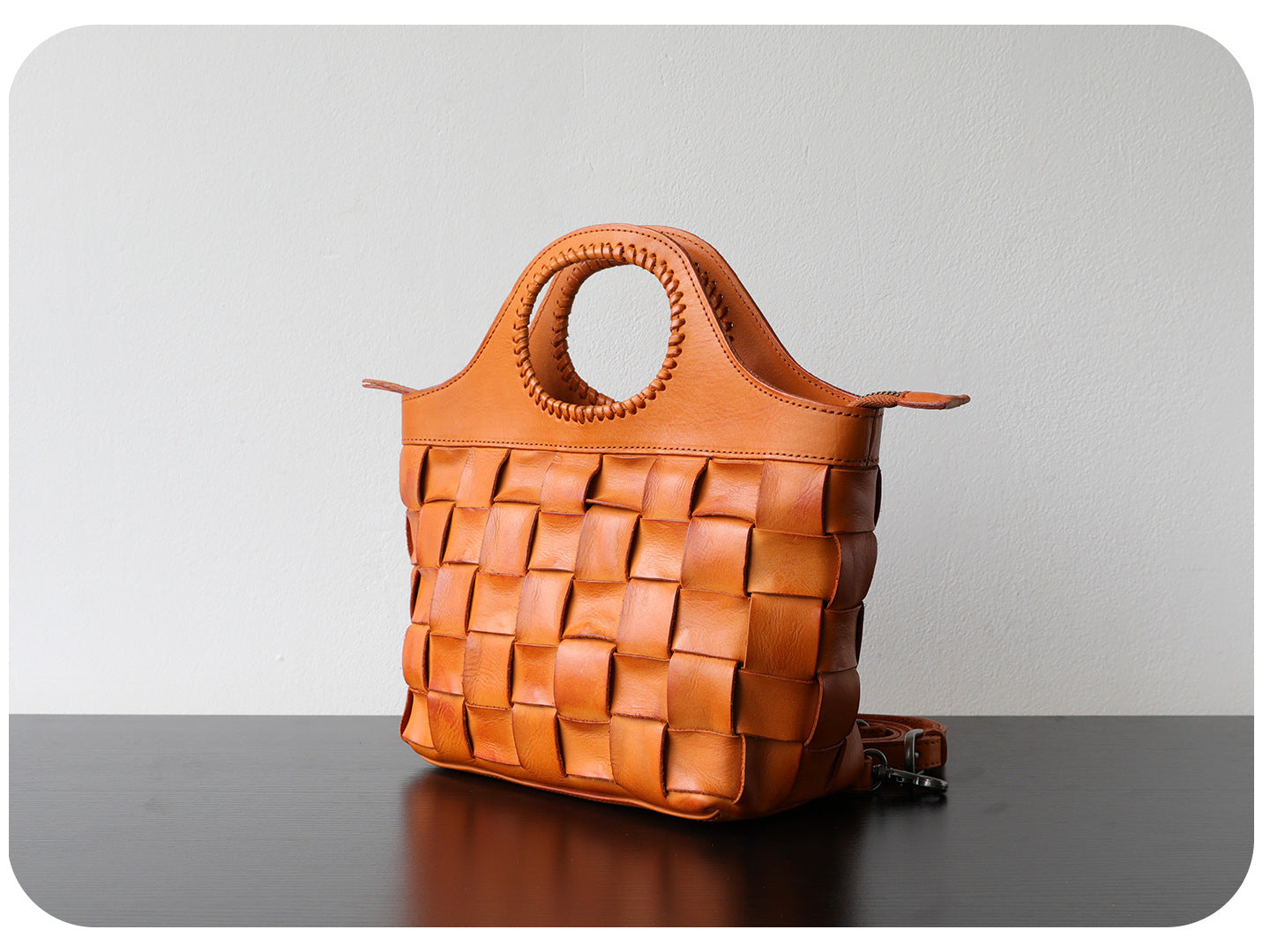 Crafted from premium first-layer cowhide and finished with intricate hand-woven detailing, this Woven Leather Basket Bag blends timeless craftsmanship with minimalist urban flair. This medium-sized tote boasts a structured horizontal silhouette with a soft yet durable feel, making it an ideal choice for everyday use. Designed for versatility, it can be worn handheld, over the shoulder, or crossbody thanks to its adjustable strap (up to 115 cm). The secure zip closure opens to a practical interior lined in soft polyester-cotton, complete with one insert pocket and one zippered compartment to keep essentials organised. Despite its compact appearance, the bag comfortably fits a phone, iPad, umbrella, power bank, and daily makeup items. Available in rich brown or coffee tones, this commuter-friendly piece is a standout addition to any wardrobe - perfect for those who appreciate understated Korean-inspired design with a touch of slow-fashion elegance.