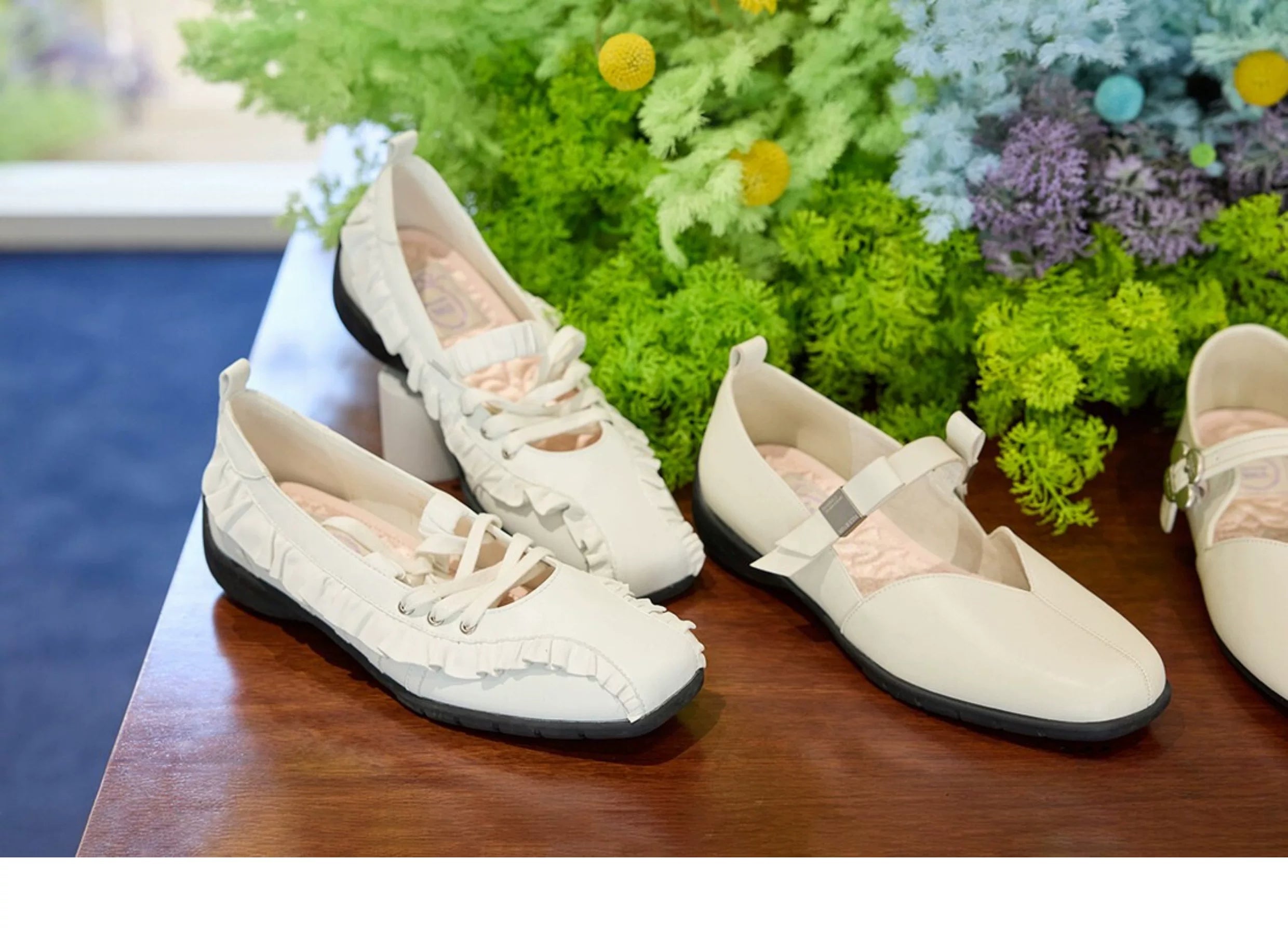 A romantic reinterpretation of the classic Mary Jane, designed in collaboration with Rockfish Weatherwear × Minjukim. Featuring a soft round toe, delicate bow detail, and subtle ribbon accents at the side, this pair blends playful femininity with everyday comfort. Finished with a low 3cm heel and cushioned insole, these shoes are designed for daily wear — perfect with skirts, socks, or relaxed denim for an effortless Korean girly aesthetic.