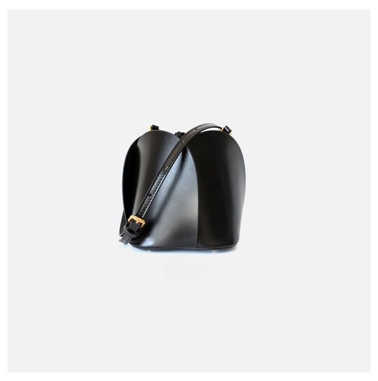 A statement piece that blends structure with softness, this Bavnet mini flower bucket bag is crafted from high-quality genuine cowhide leather. Designed for daily wear, this compact yet spacious crossbody fits your essentials and more — all wrapped in a structured, trendy silhouette with delicate floral elements.